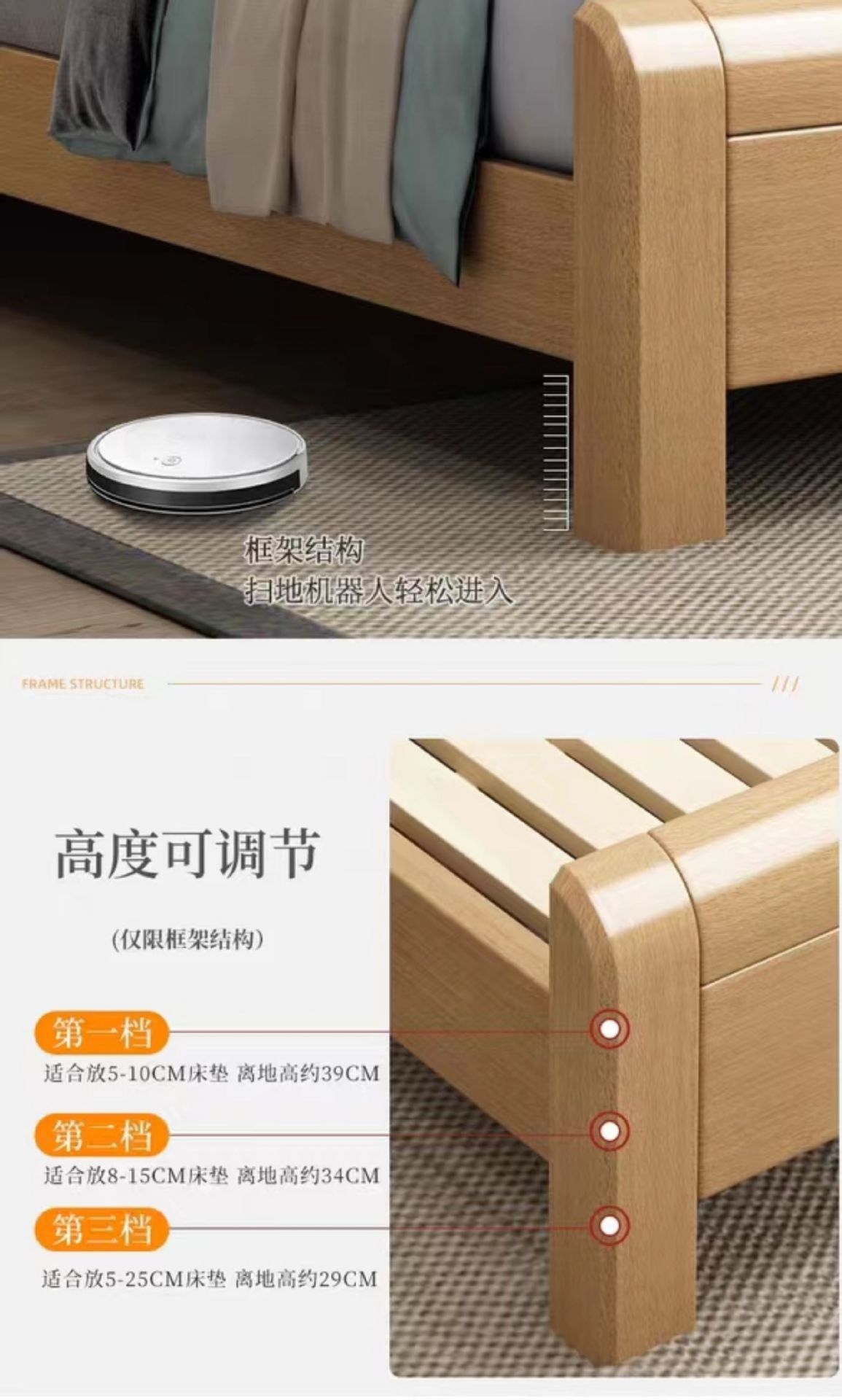 • 프레임 침대 + 풀 코코넛 팜 매트 10cm개 + 침대 옆 테이블 1개