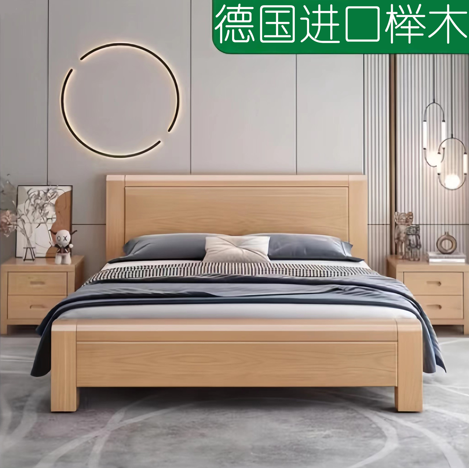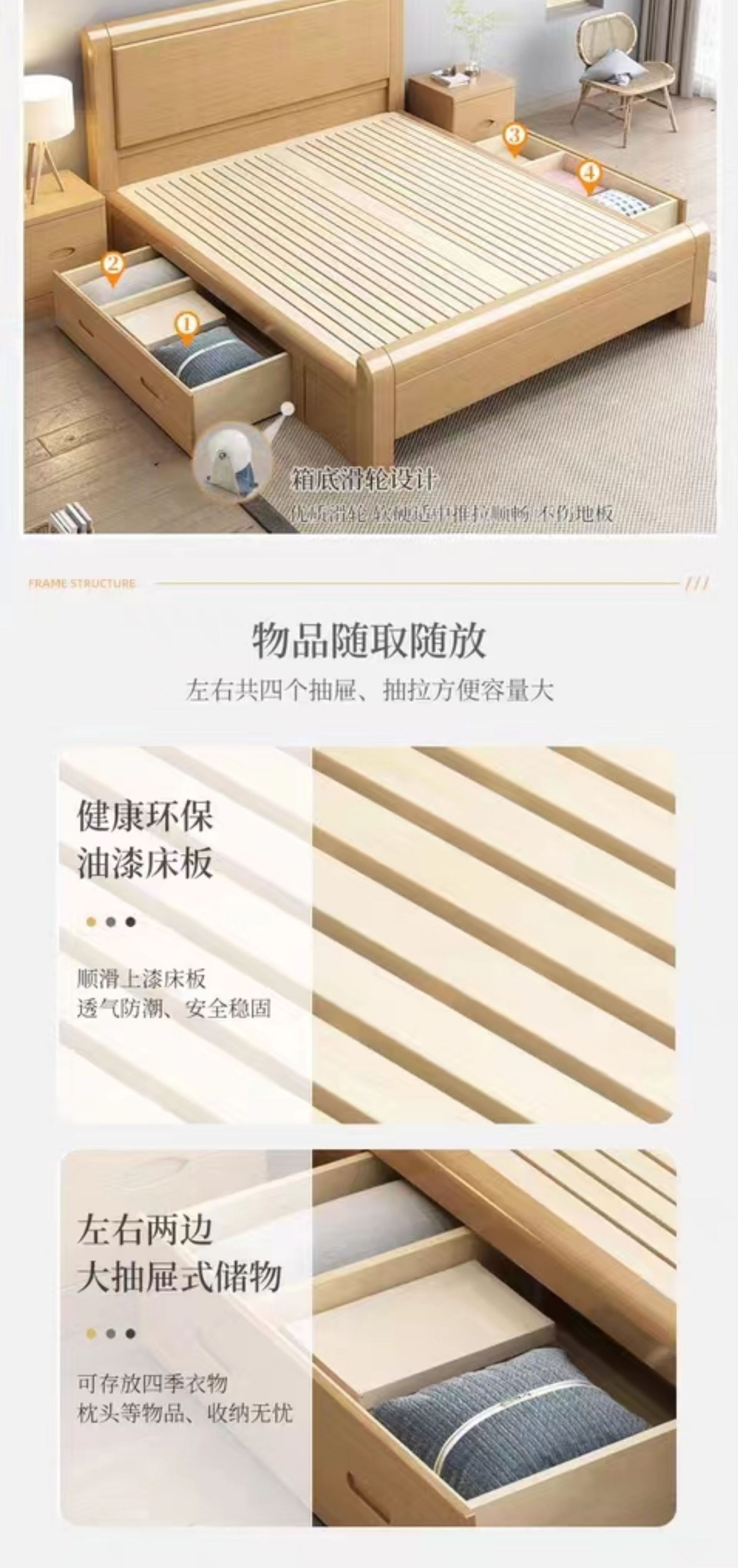 너도밤나무 원목 침대 1.8m 마스터 침실 더블 침대 로그 스타일 소형 아파트 어린이 침대 1.2m 하이박스 수납 웨딩 침대스토어 가기