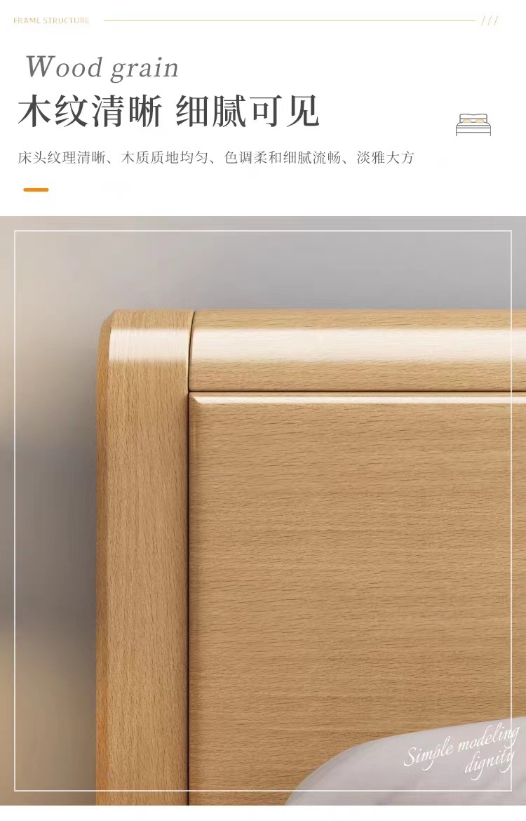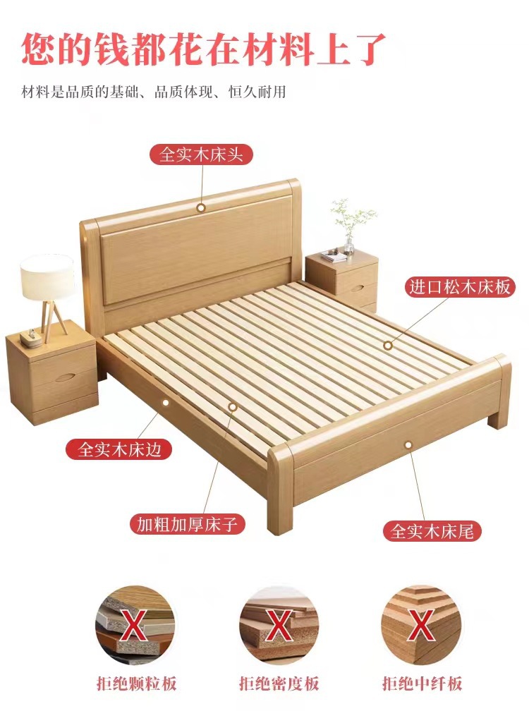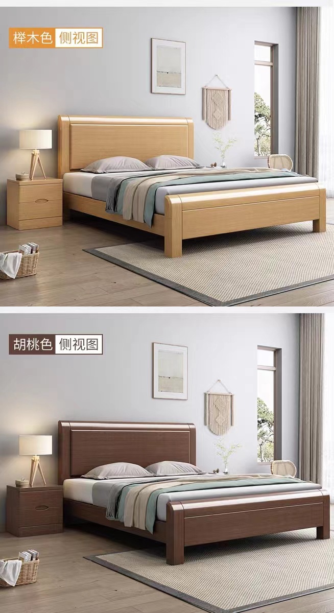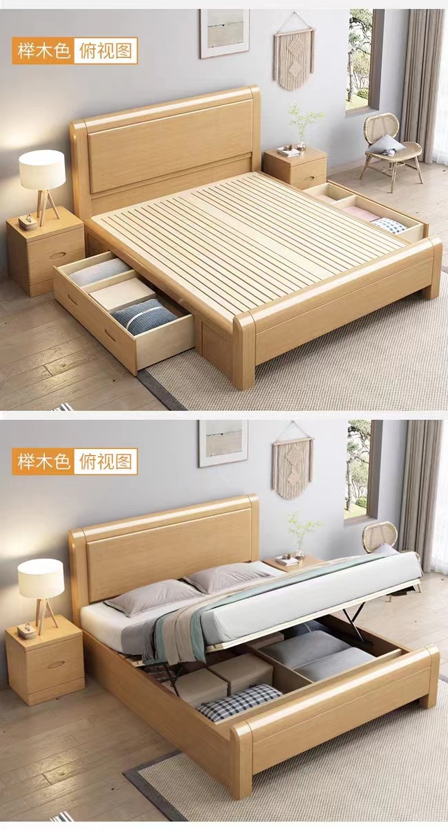 너도밤나무 원목 침대 1.8m 마스터 침실 더블 침대 로그 스타일 소형 아파트 어린이 침대 1.2m 하이박스 수납 웨딩 침대