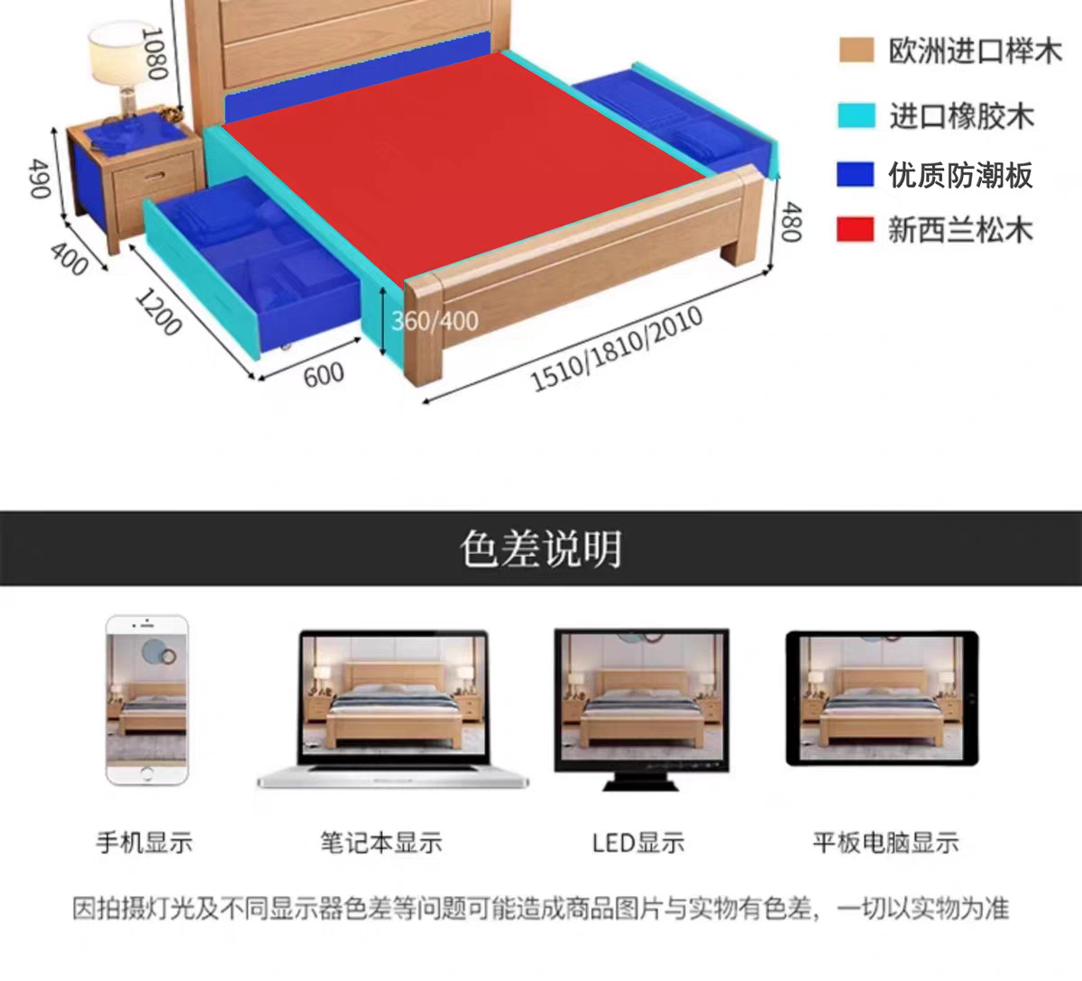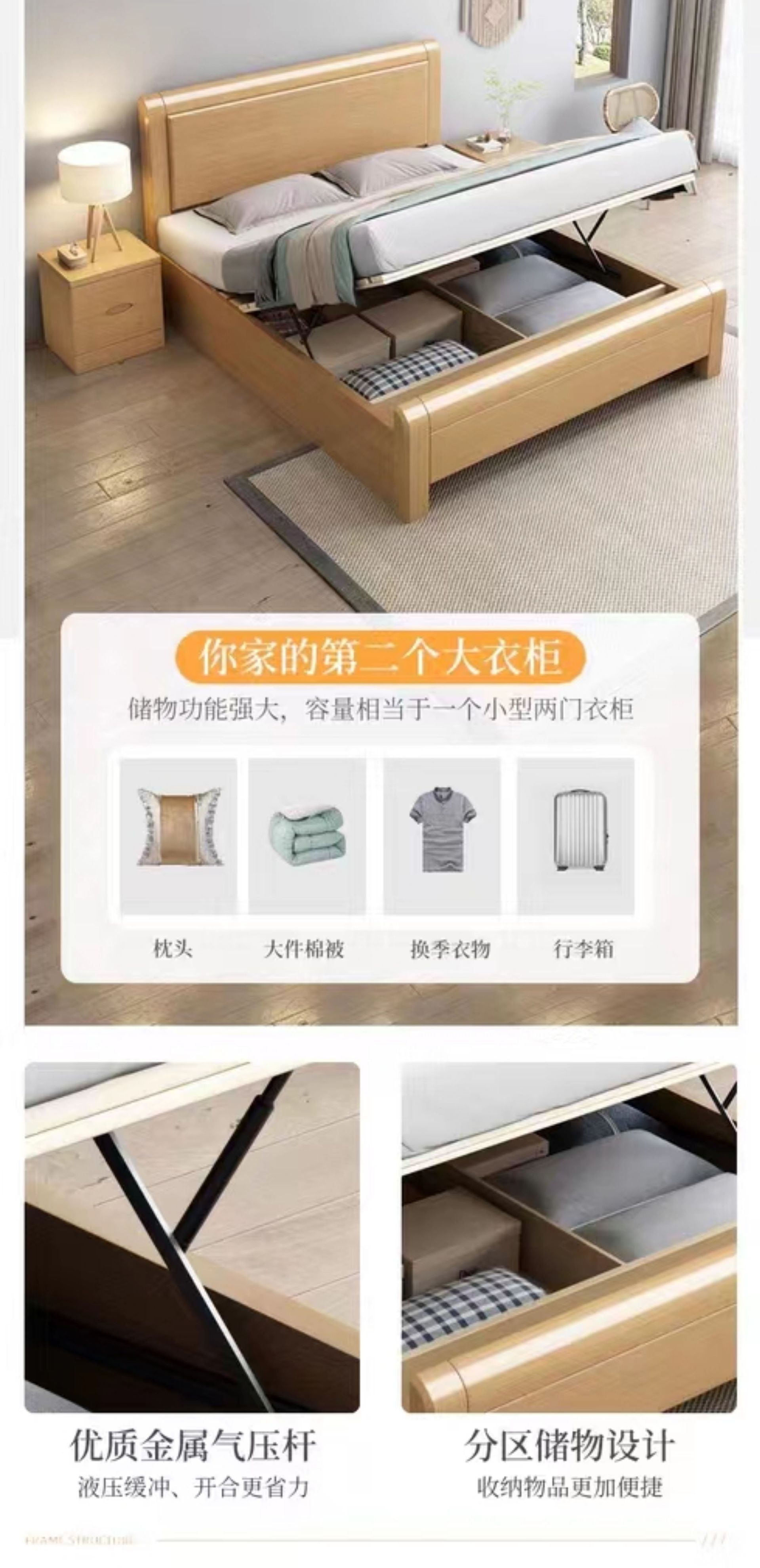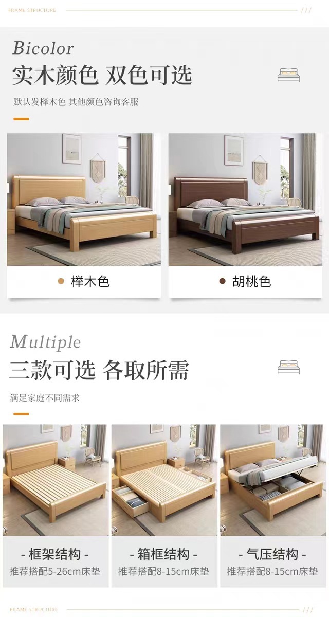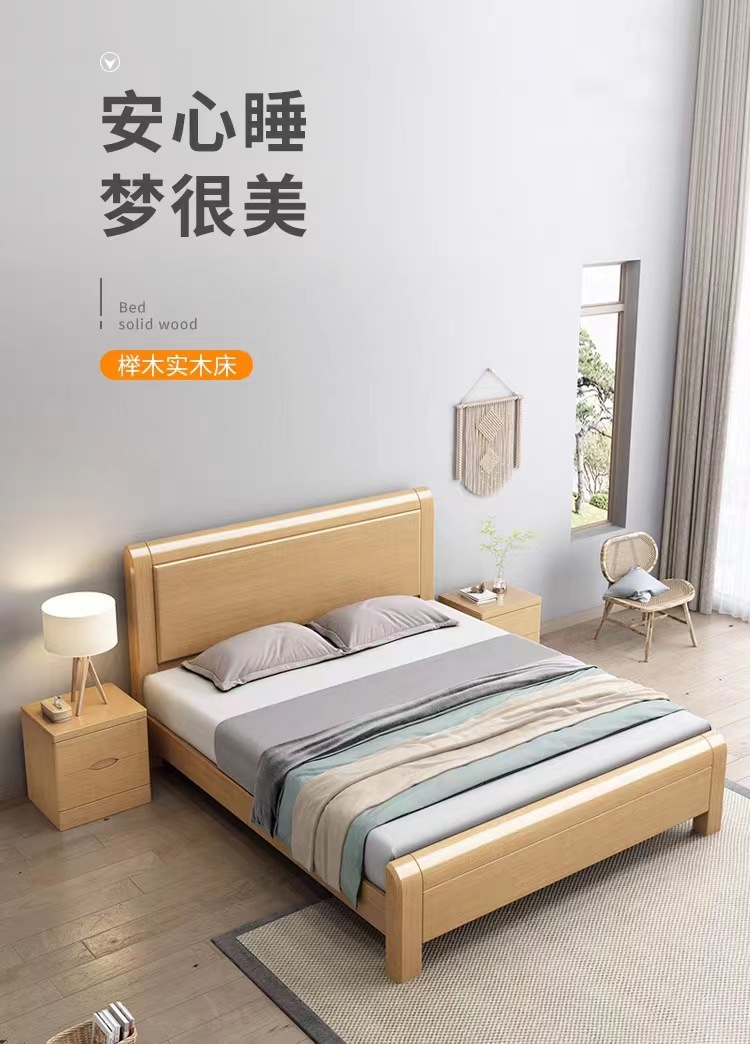 너도밤나무 원목 침대 1.8m 마스터 침실 더블 침대 로그 스타일 소형 아파트 어린이 침대 1.2m 하이박스 수납 웨딩 침대