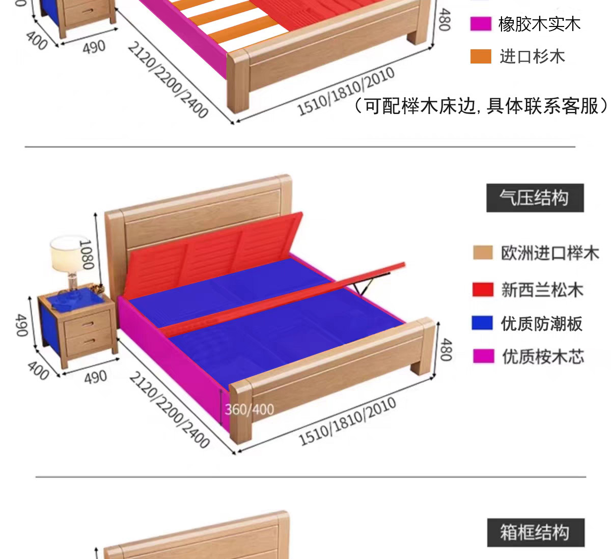 • 공기압 높은 박스 침대 + 침대 옆 테이블 1개