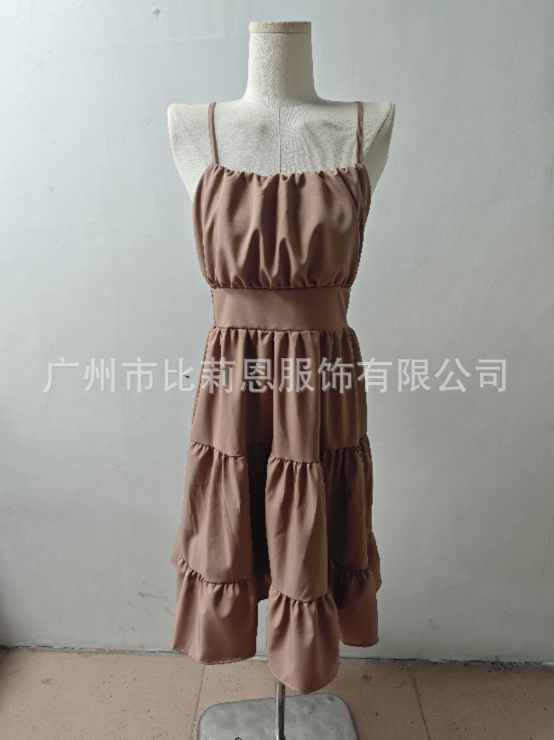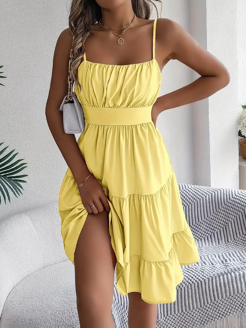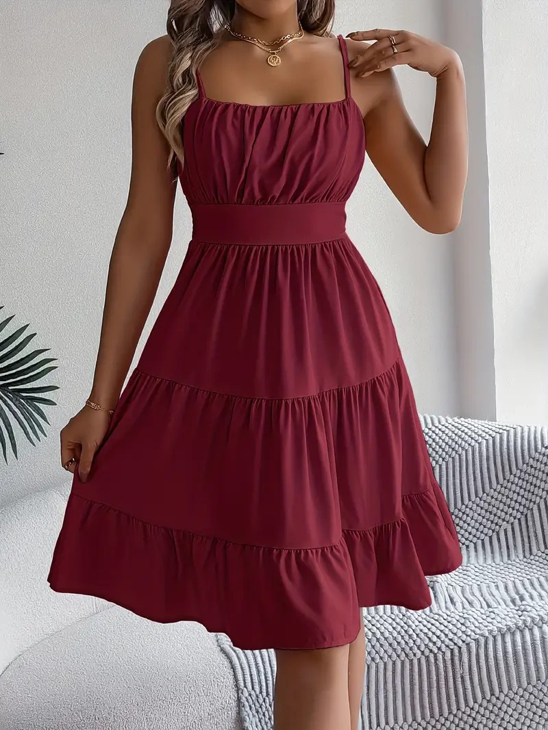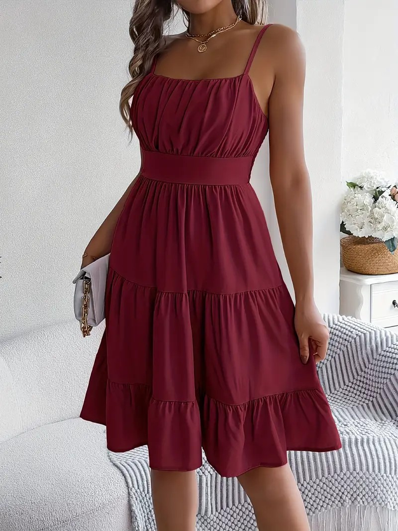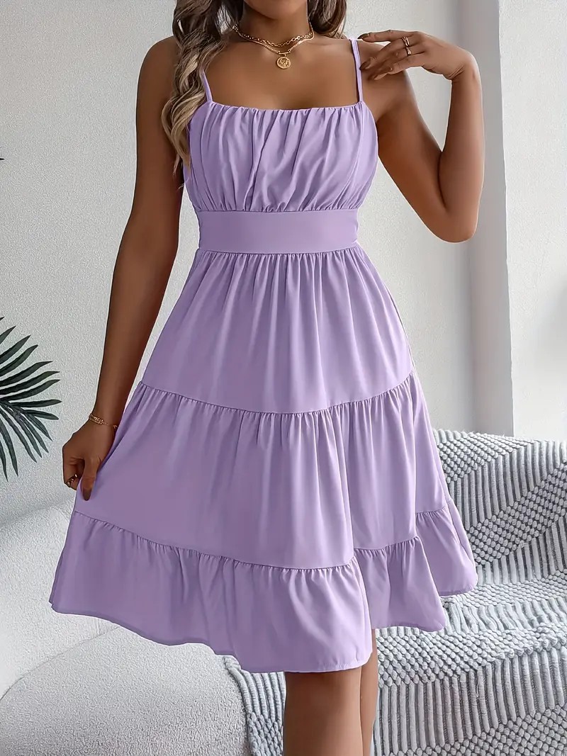 유럽과 미국의 Amazon 2025 봄 여름 신상 여성 민소매 슬링 스퀘어 넥 레이어드 플리츠 드레스스토어 가기