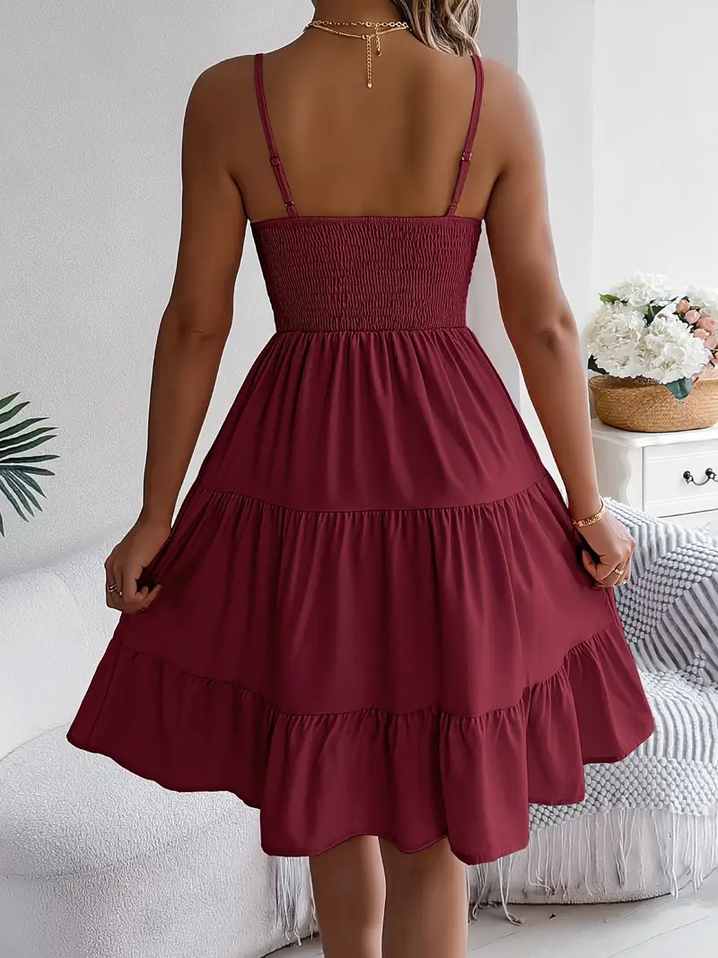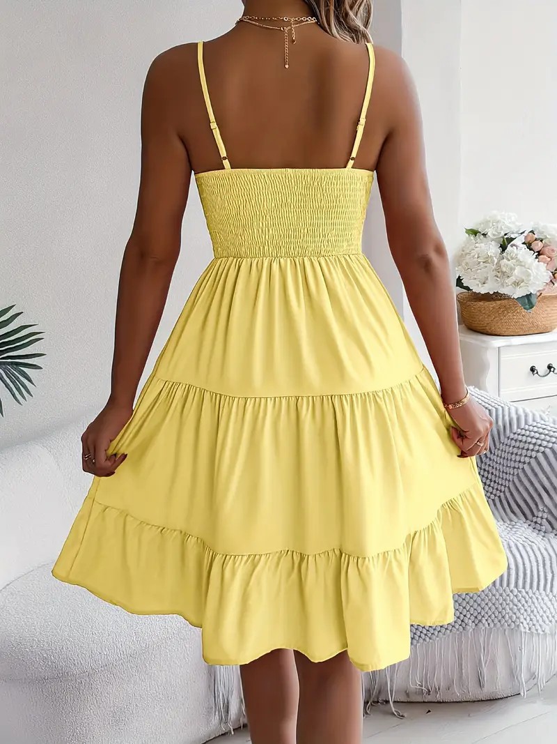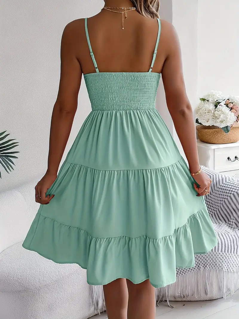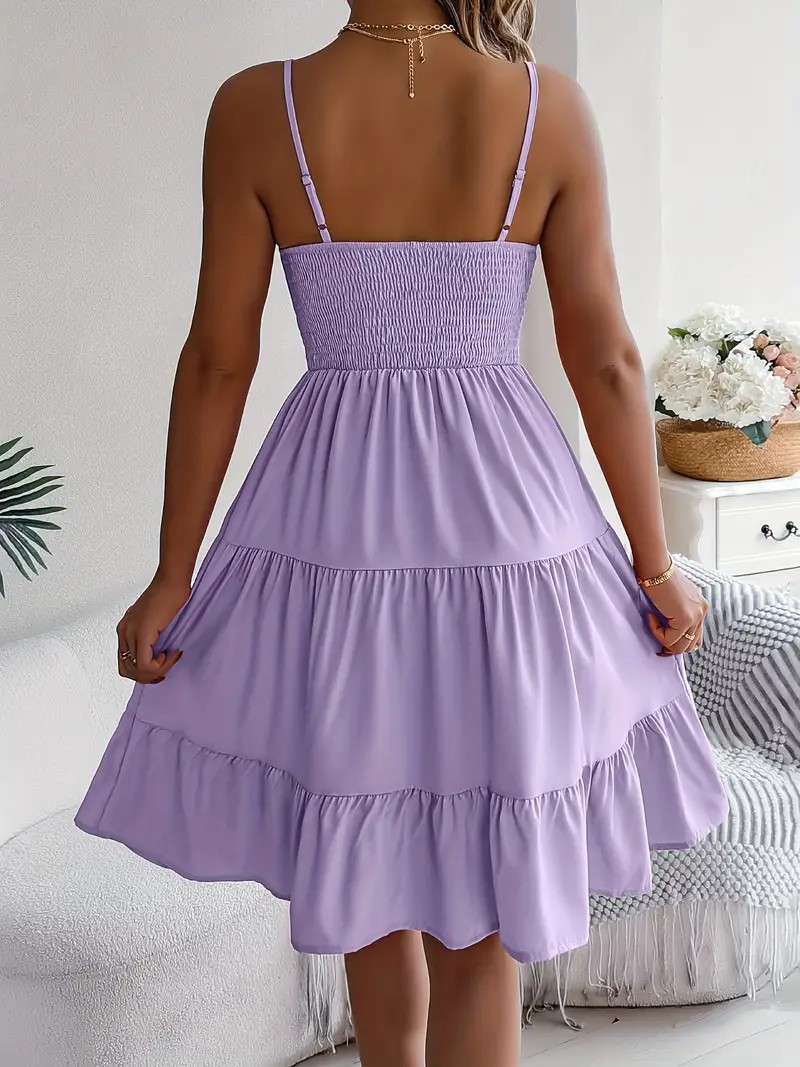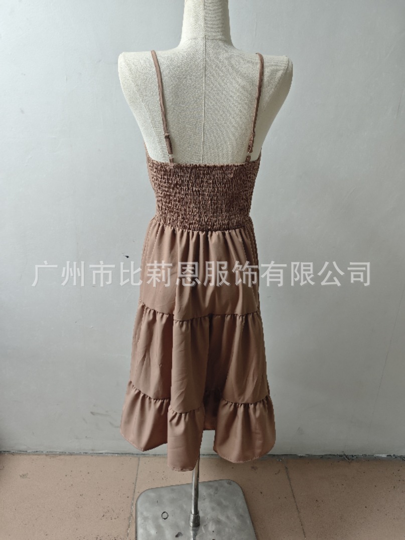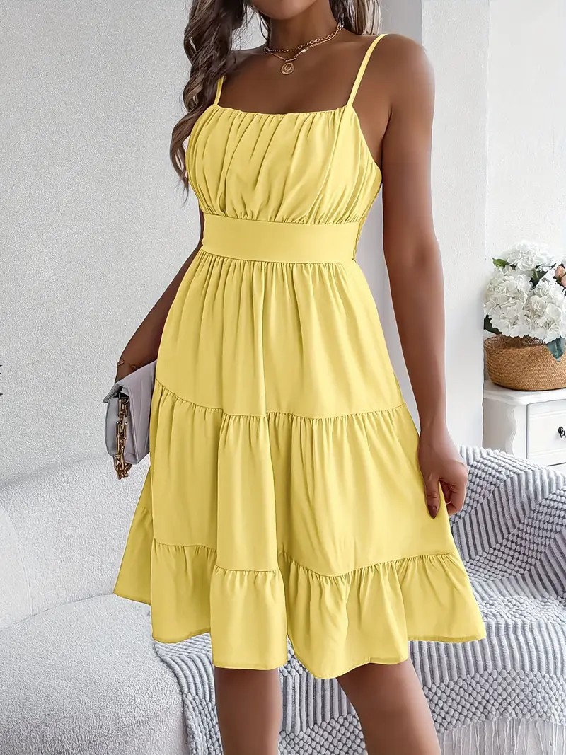 유럽과 미국의 Amazon 2025 봄 여름 신상 여성 민소매 슬링 스퀘어 넥 레이어드 플리츠 드레스스토어 가기