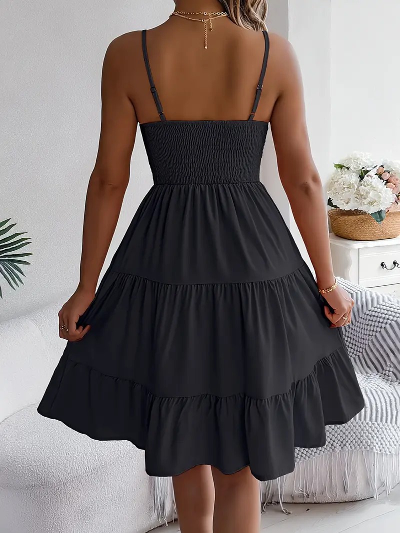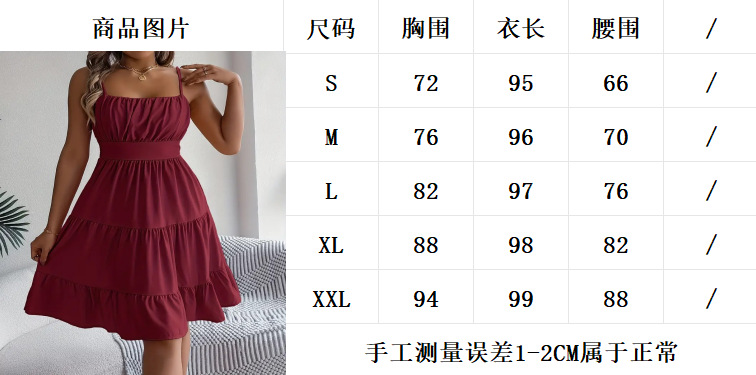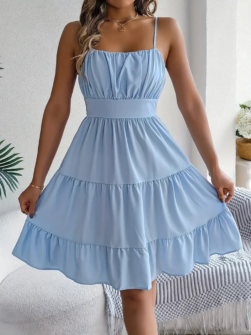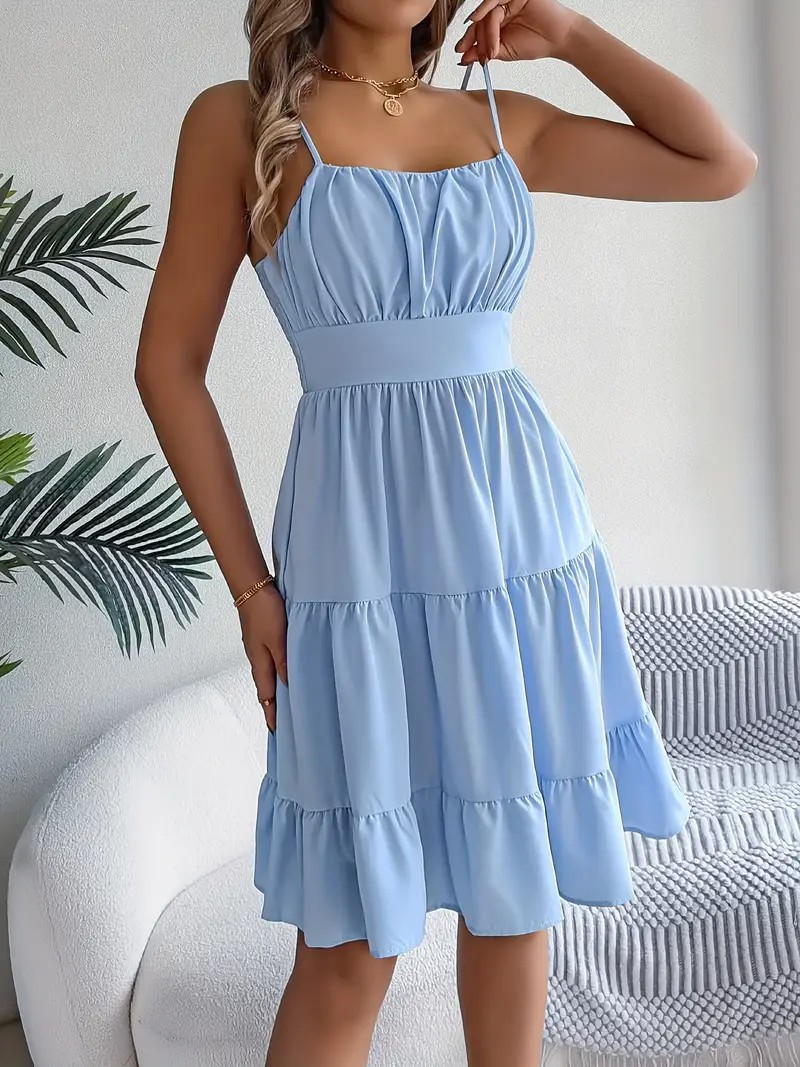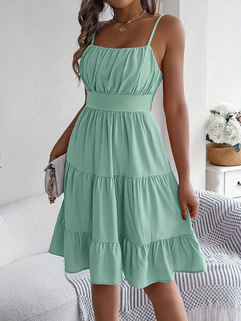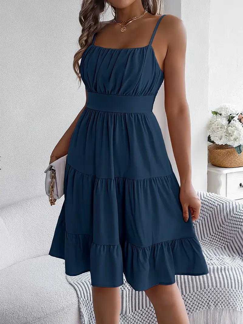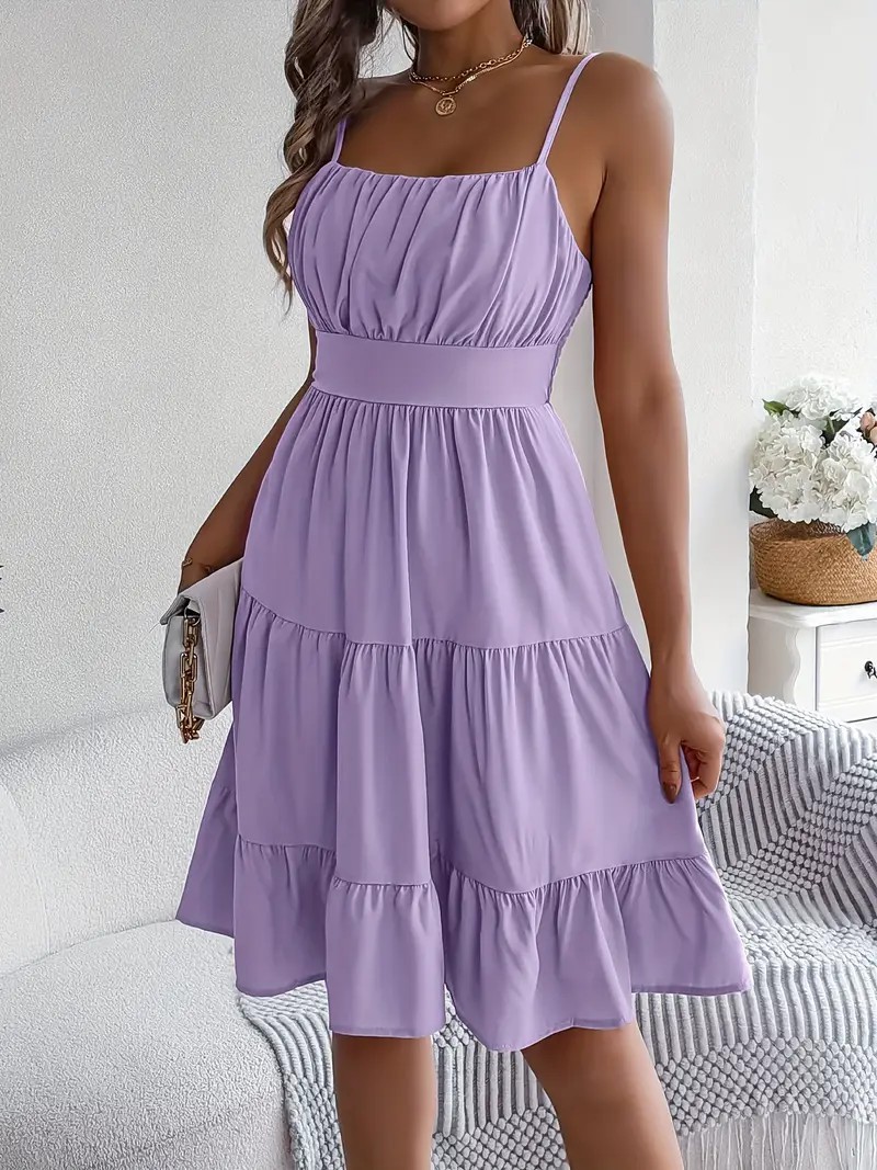 유럽과 미국의 Amazon 2025 봄 여름 신상 여성 민소매 슬링 스퀘어 넥 레이어드 플리츠 드레스