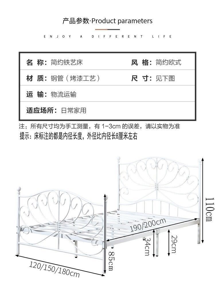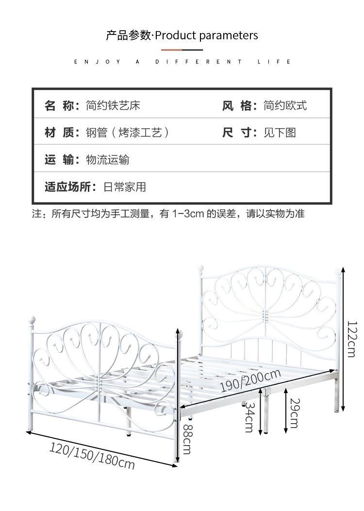 북유럽 스타일 인터넷 연예인 철제 침대 현대 간단한 공주 침대 두꺼운 철 침대 싱글 더블 침대 1.5 철 프레임 침대