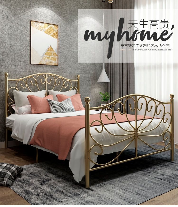 북유럽 스타일 인터넷 연예인 철제 침대 현대 간단한 공주 침대 두꺼운 철 침대 싱글 더블 침대 1.5 철 프레임 침대스토어 가기