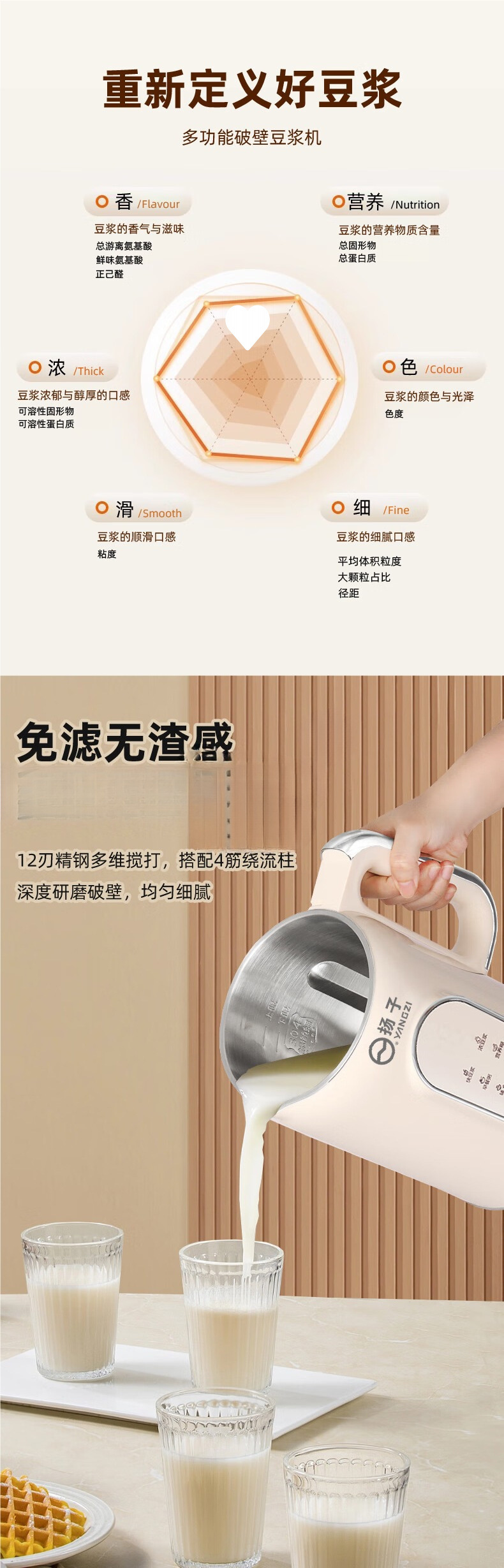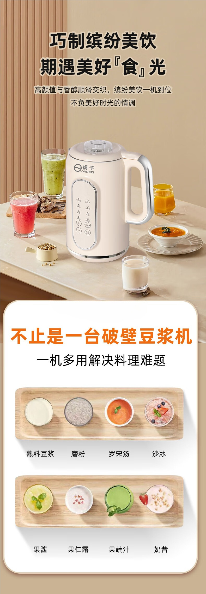 • 음성 모델 1700ML Yangzi 벽 파괴 기계 대용량 + 지능형 예약 - 10년 보증