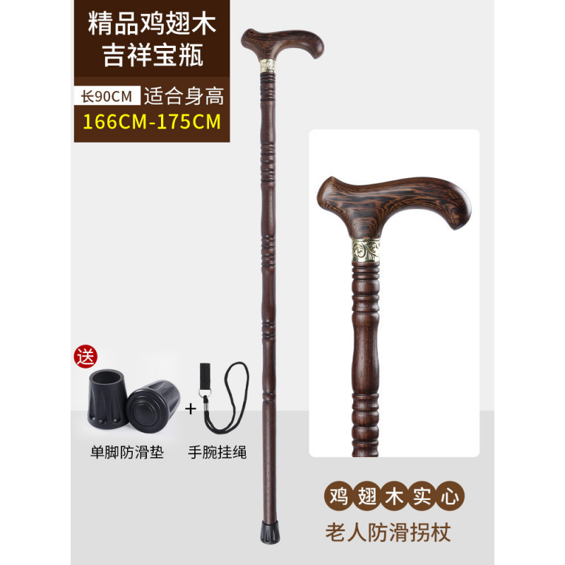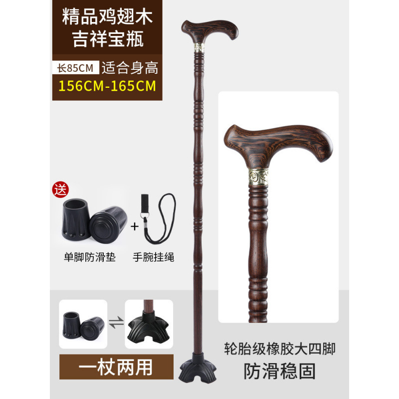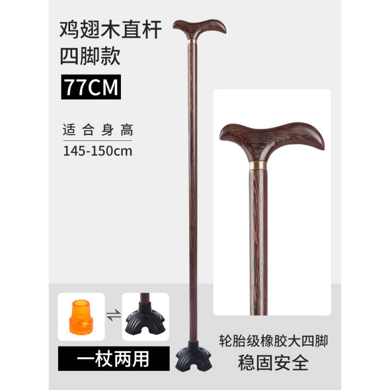 노인용 지팡이, 미끄럼 방지, 경량 원목, 노인용 추락 방지 지팡이, 4발 보조 지팡이, 여성용 나무 지팡이
