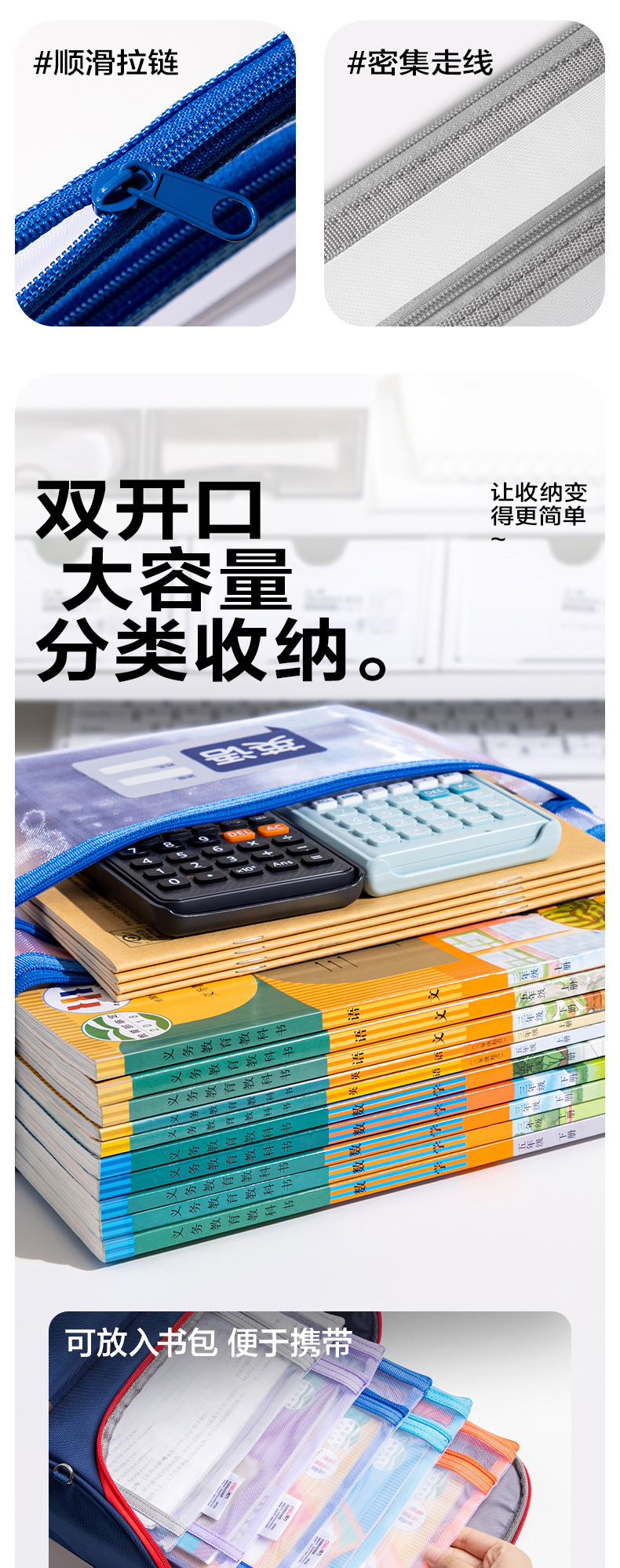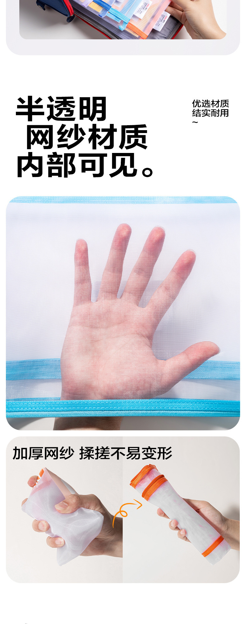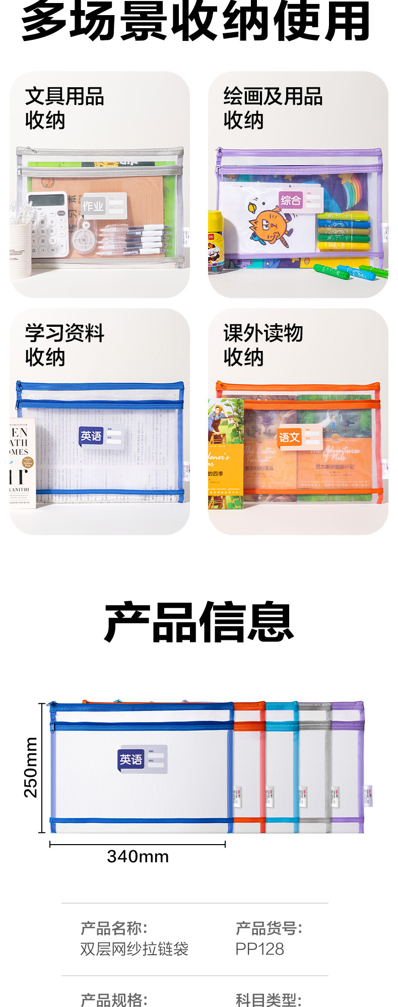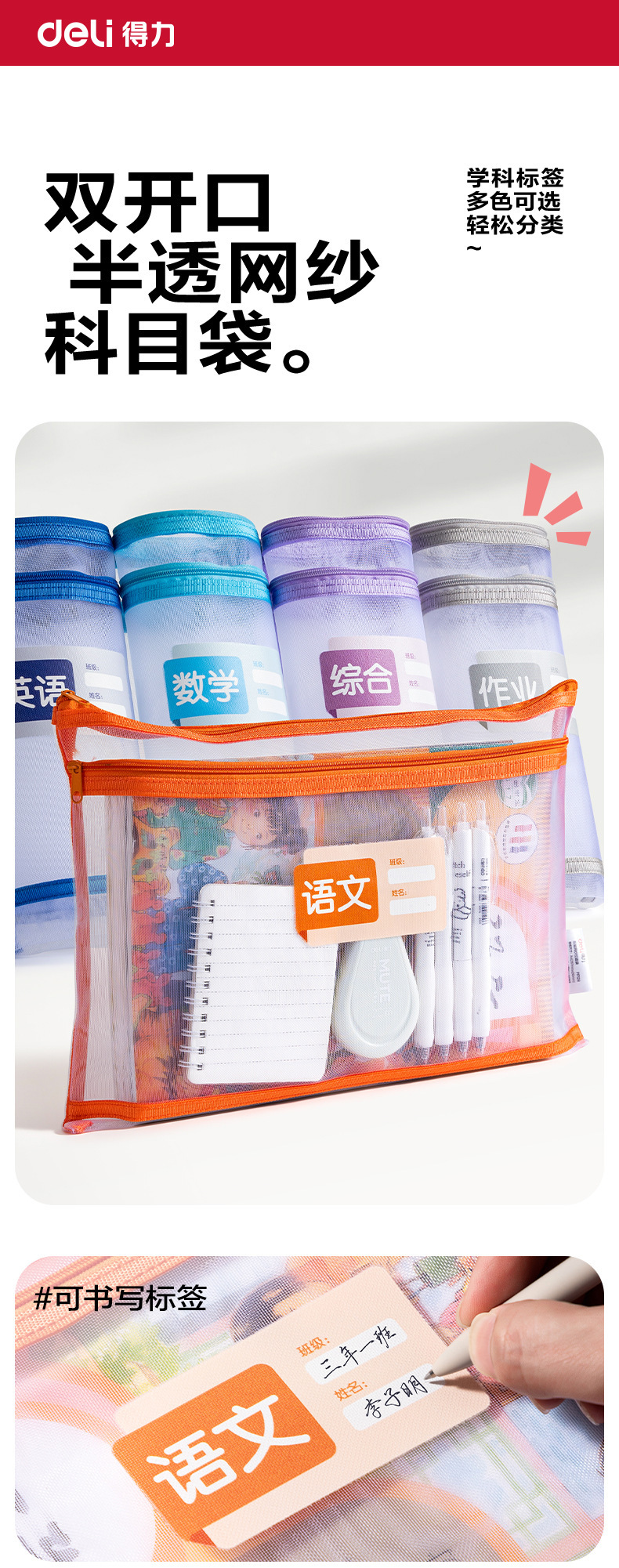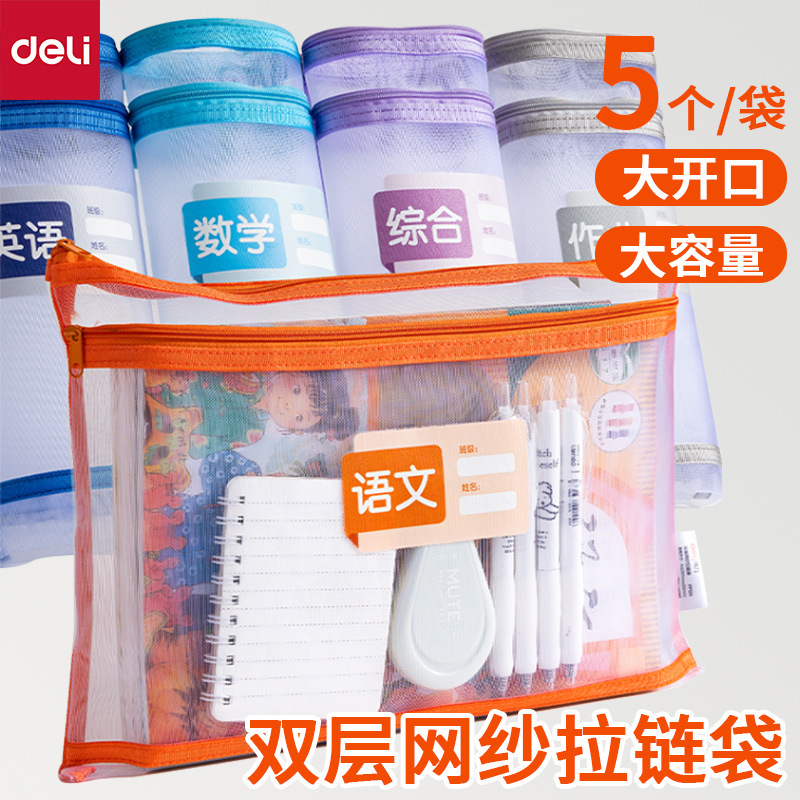 델리 PP128 학생용 손잡이가 없는 이중층 메쉬 지퍼백, 투명 시험지 가방, 메쉬 수납 가방, 파일 가방스토어 가기