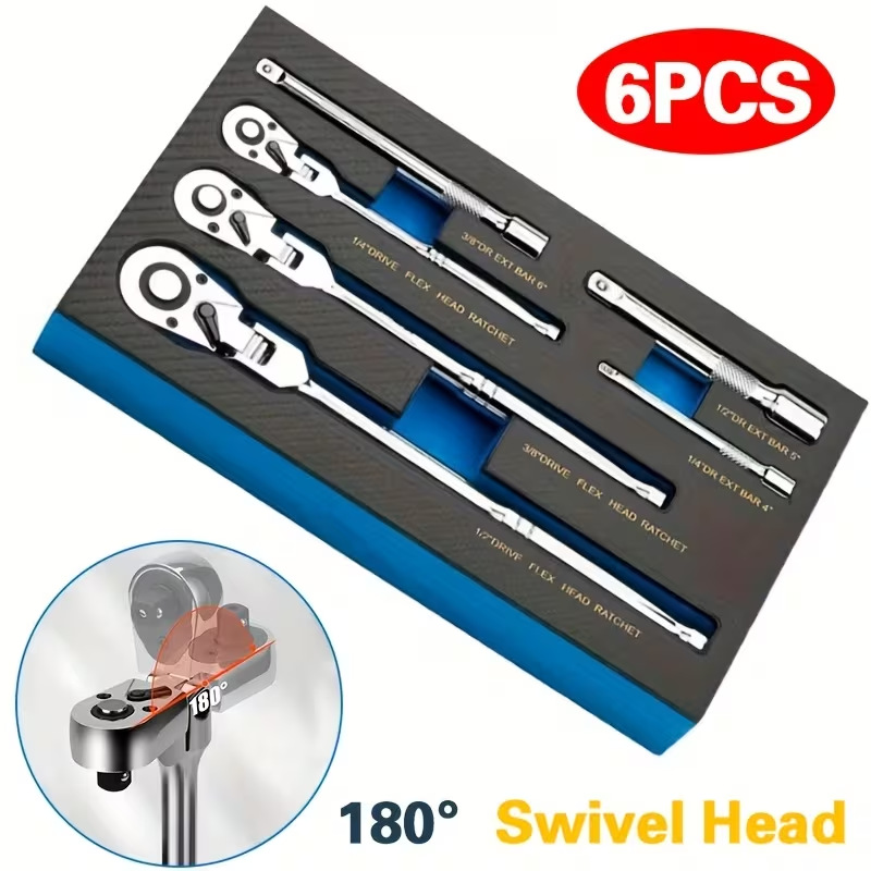 72개의 치아가 있는 각도 조절식 래칫 렌치 6개 세트, 일체형 단조 로커 렌치 공장 직접 판매스토어 가기