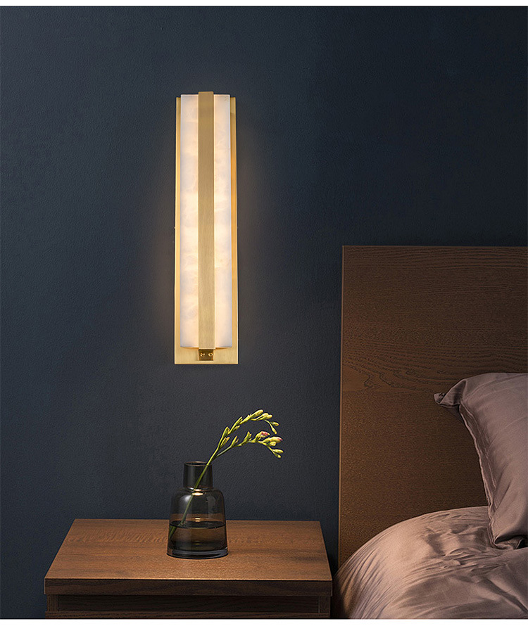 천연 대리석 새로운 중국 스타일 거울 헤드 라이트 현대적인 조명 럭셔리 침실 거실 배경 벽 램프 전체 구리 통로 입구 벽 램프스토어 가기