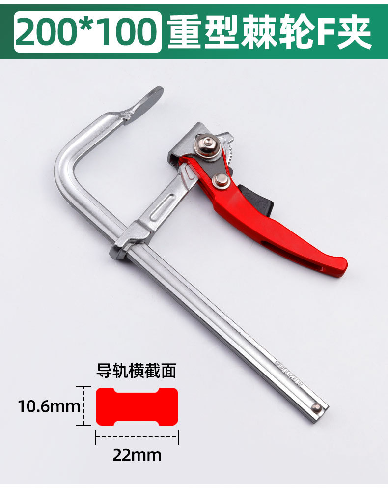 • 1726, 래칫 F 클램프 200*100 (10.6*22), 16개/건, 1.5kg