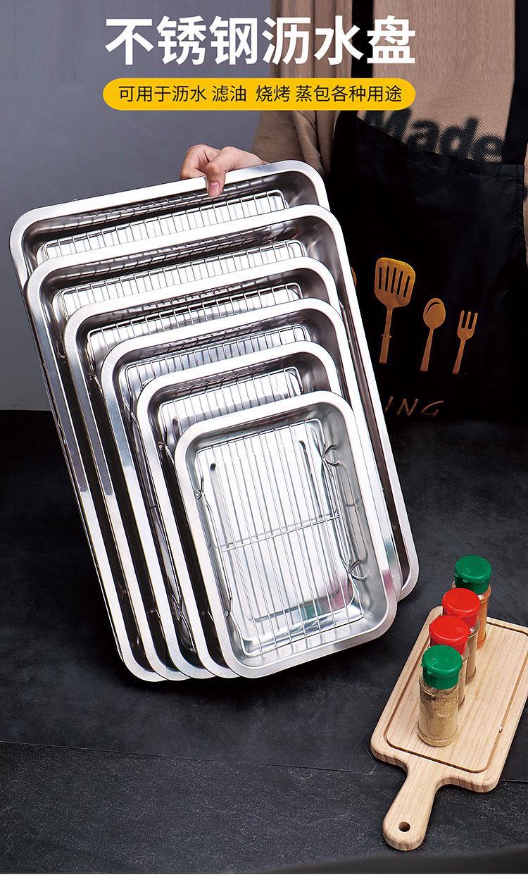 메쉬 사각 접시가 있는 상업용 스테인레스 스틸 오일 제어 랙 트레이 물 필터 오일 필터 트레이 델리 디스플레이 트레이 바베큐 스프링클러 트레이스토어 가기