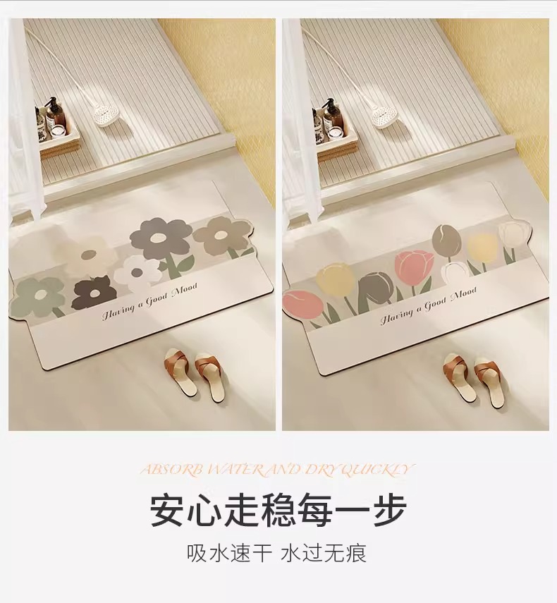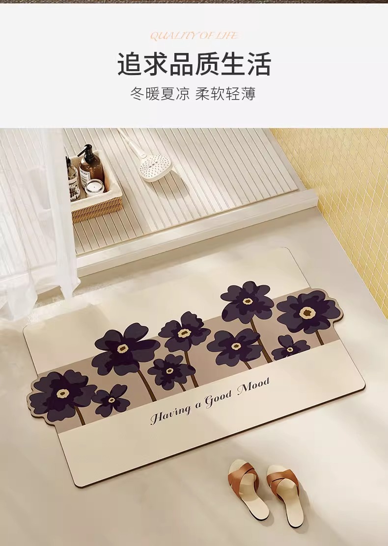 작은 신선한 규조토 진흙 바닥 매트, 흡수성 및 속건성, 가정용 욕실 출입구 욕실 발 매트, 내마모성 및 미끄럼 방지 매트스토어 가기