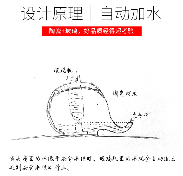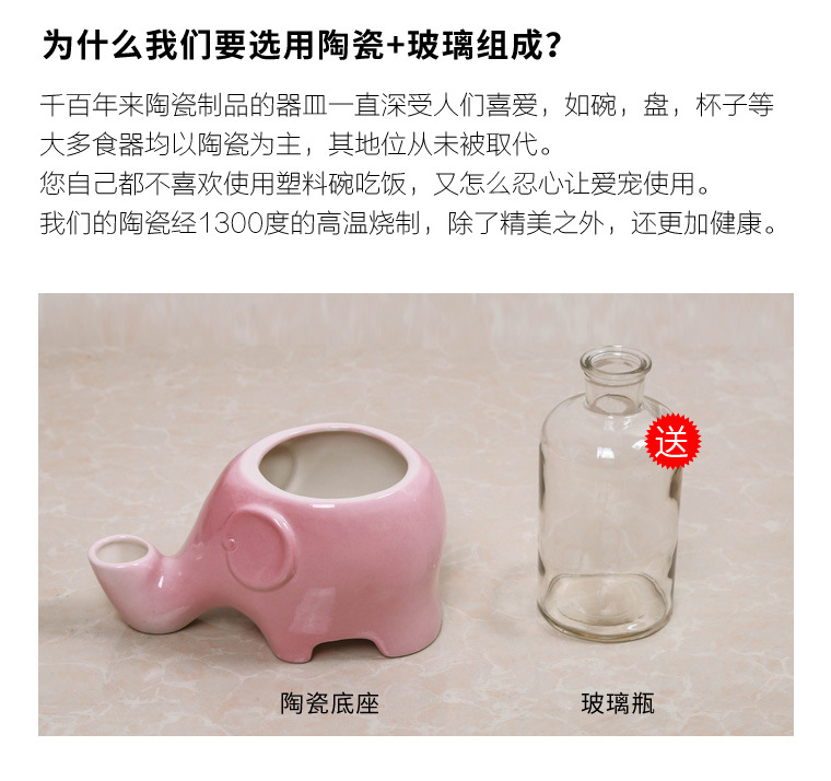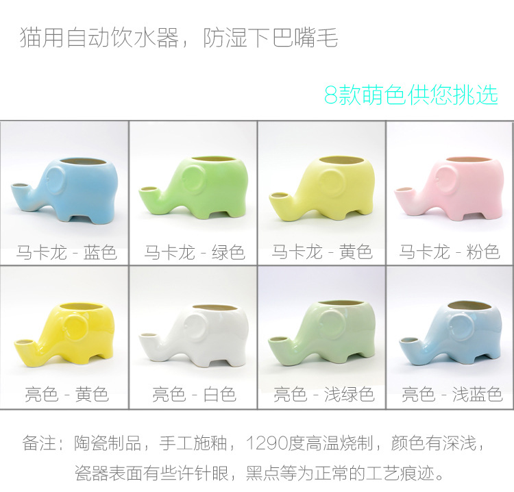 귀여운 코끼리 세라믹 환경 친화적인 방습 턱 입털 고양이 자동 식수대 플랫 페이스 고양이 물그릇 식수대