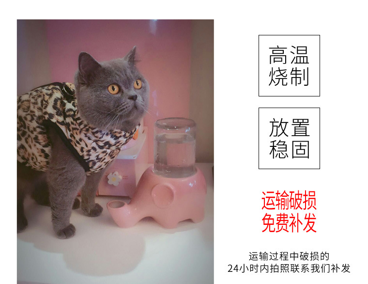 귀여운 코끼리 세라믹 환경 친화적인 방습 턱 입털 고양이 자동 식수대 플랫 페이스 고양이 물그릇 식수대스토어 가기