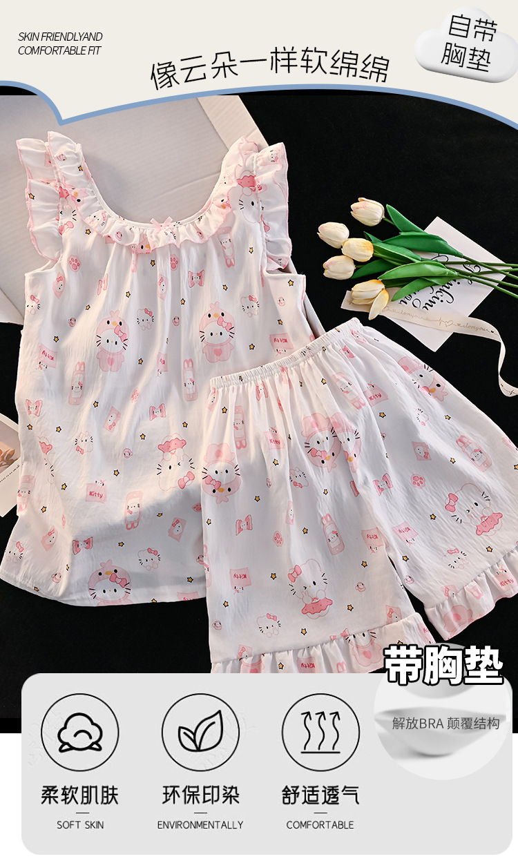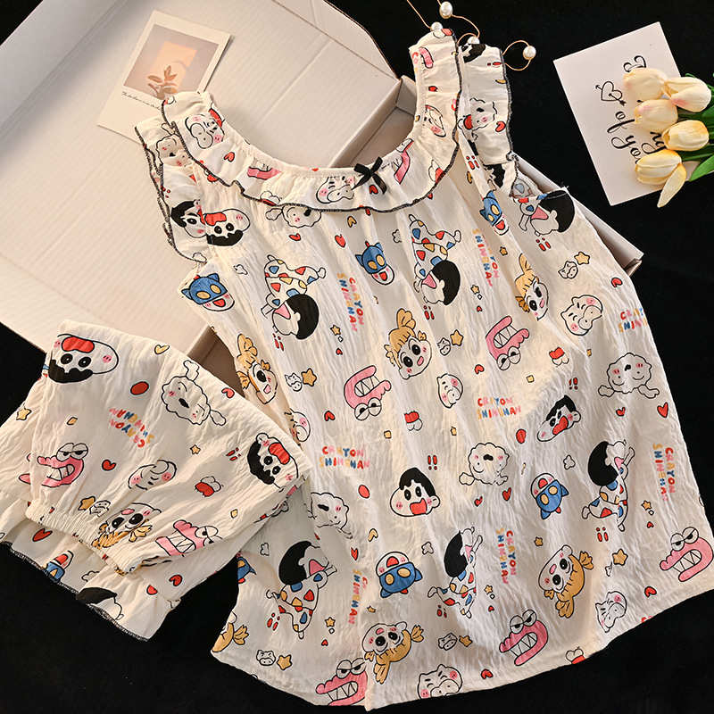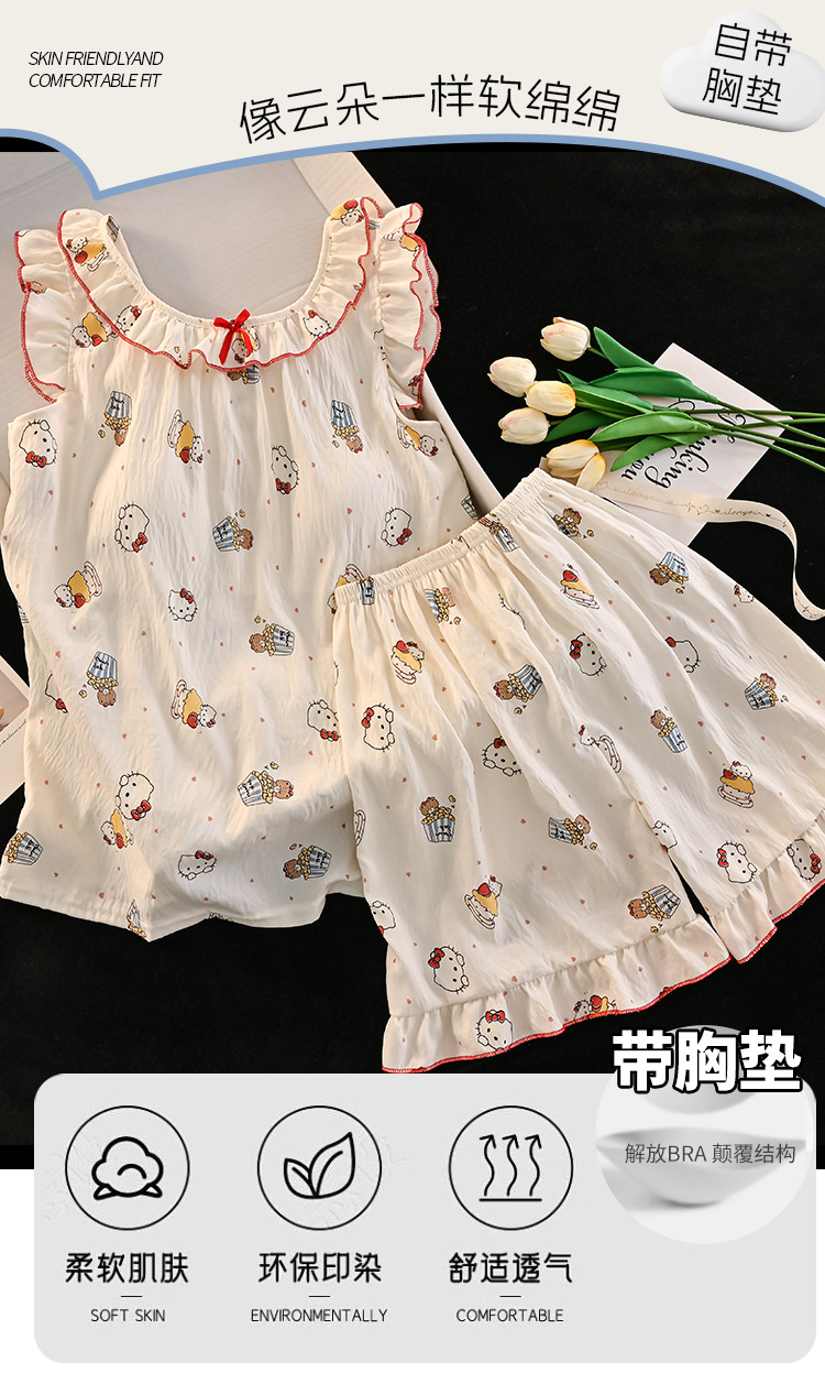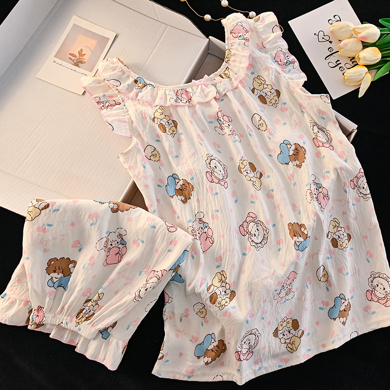 여자 구름 면화 조끼 잠옷 여름 어린이 얇은 민소매 반바지 공주 스타일 여자 중대형 어린이 가정 의류스토어 가기