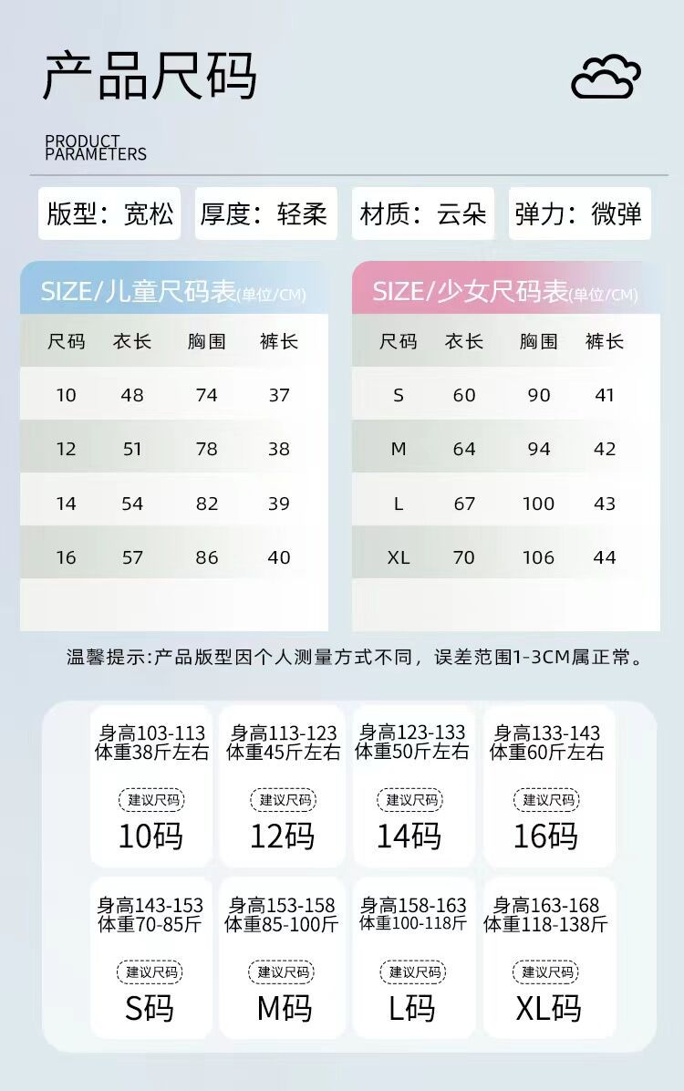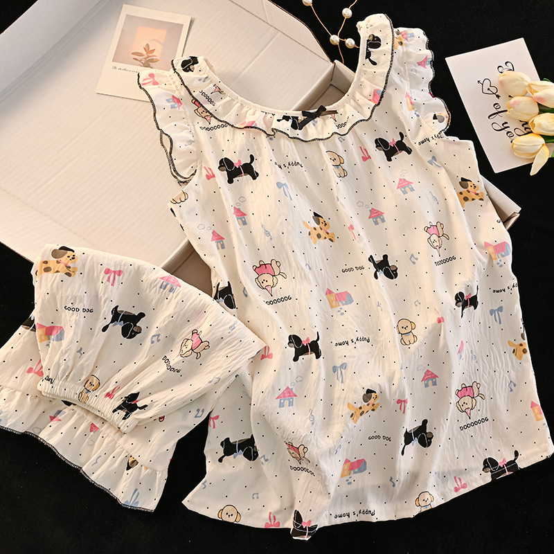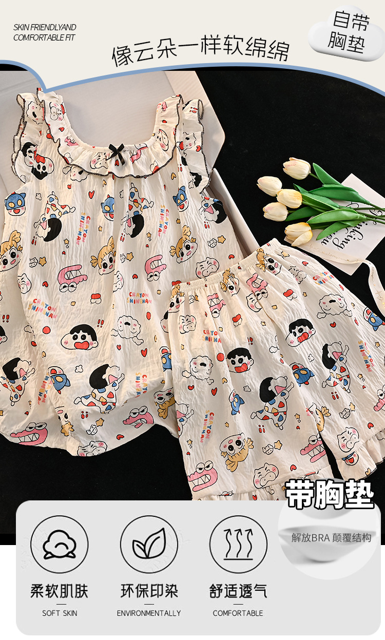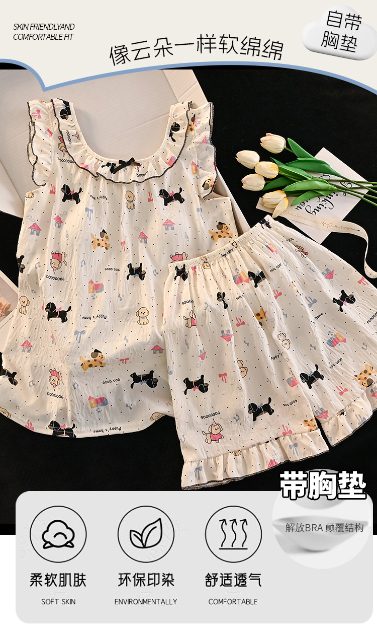 여자 구름 면화 조끼 잠옷 여름 어린이 얇은 민소매 반바지 공주 스타일 여자 중대형 어린이 가정 의류스토어 가기