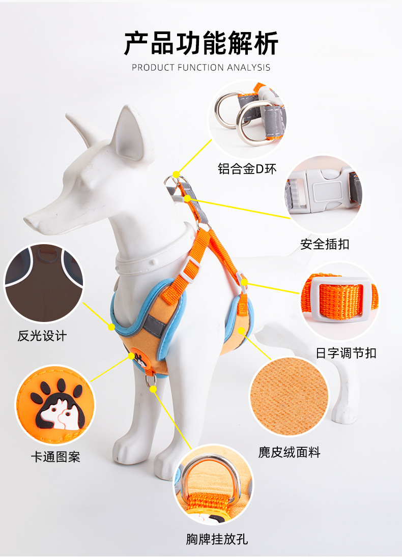 국경을 넘나드는 인기 애완동물 용품, 개 가슴끈, 일자형 조절, 개 산책용 로프, 방폭형 견인 로프
