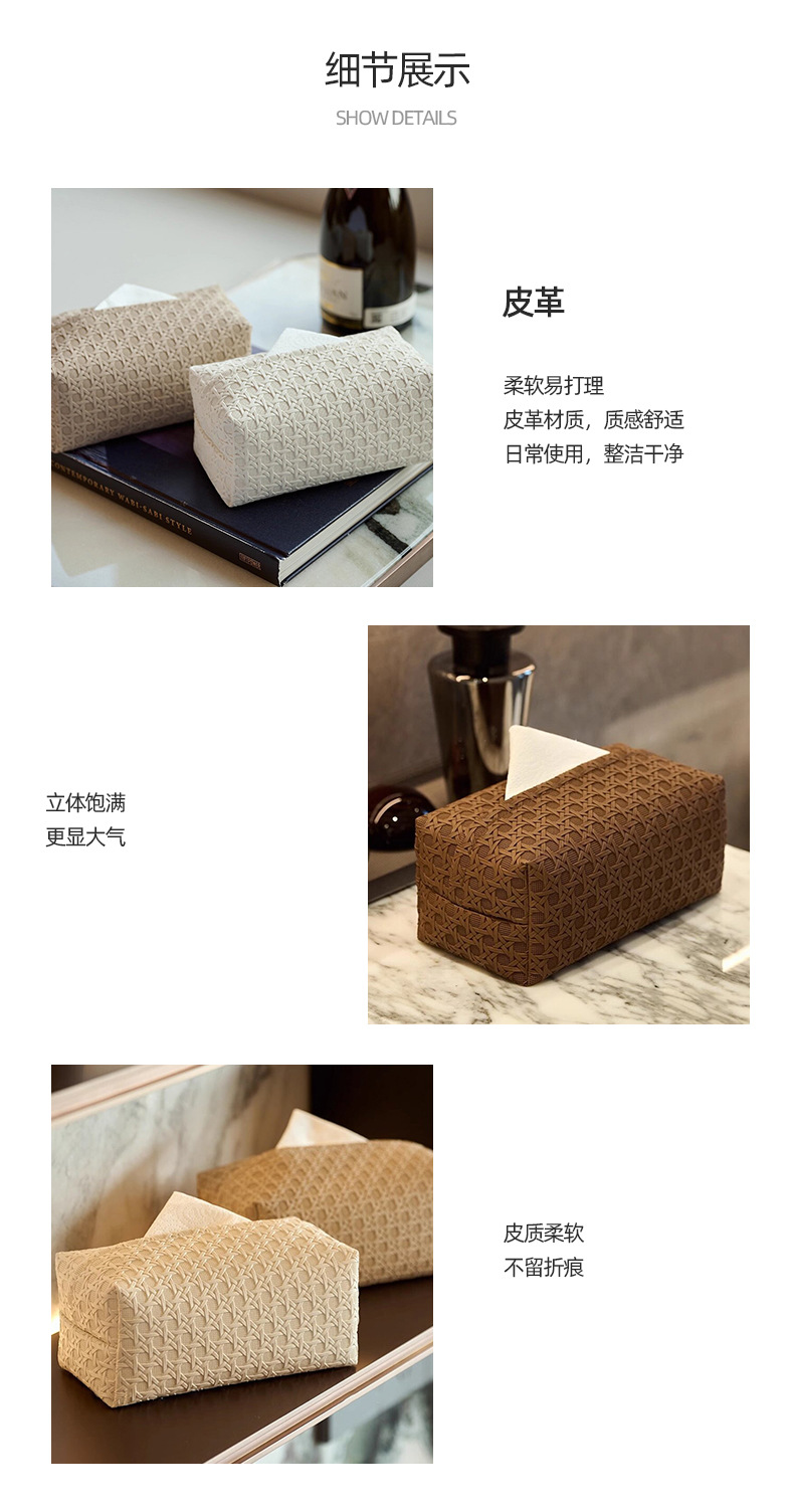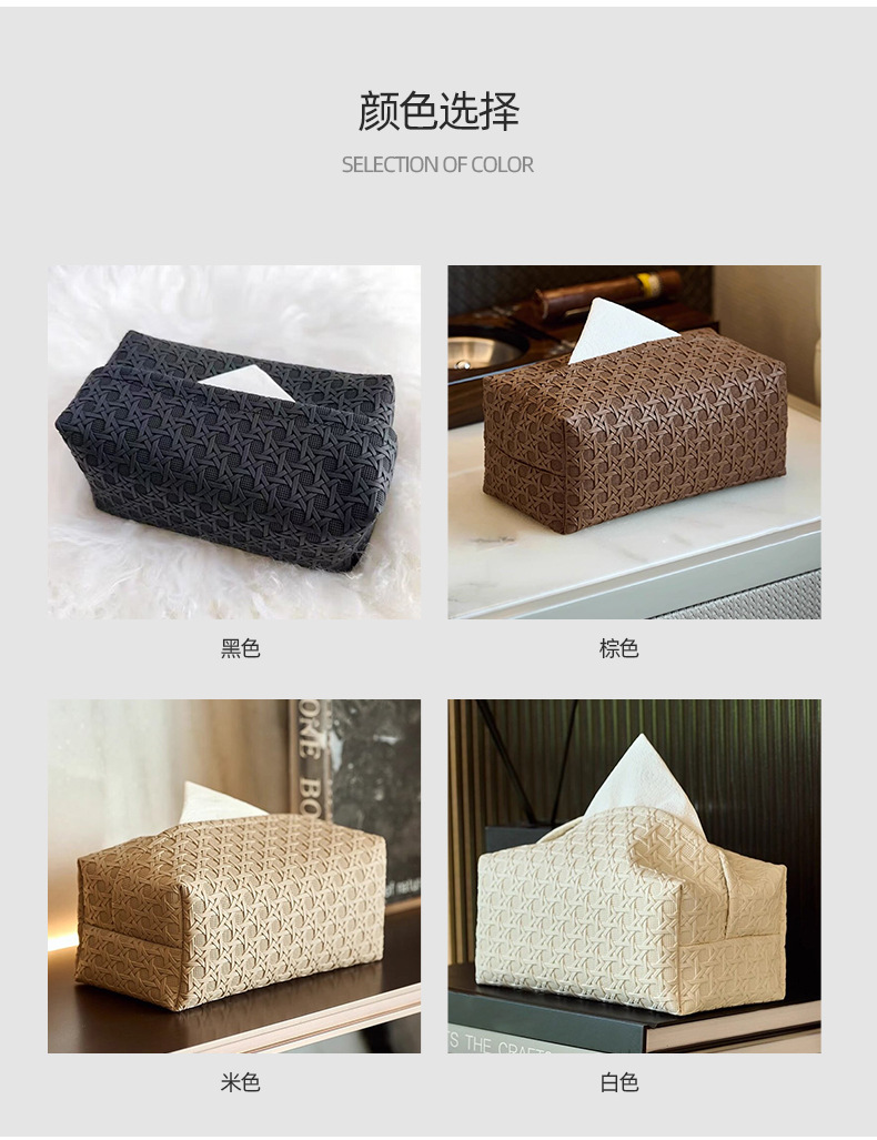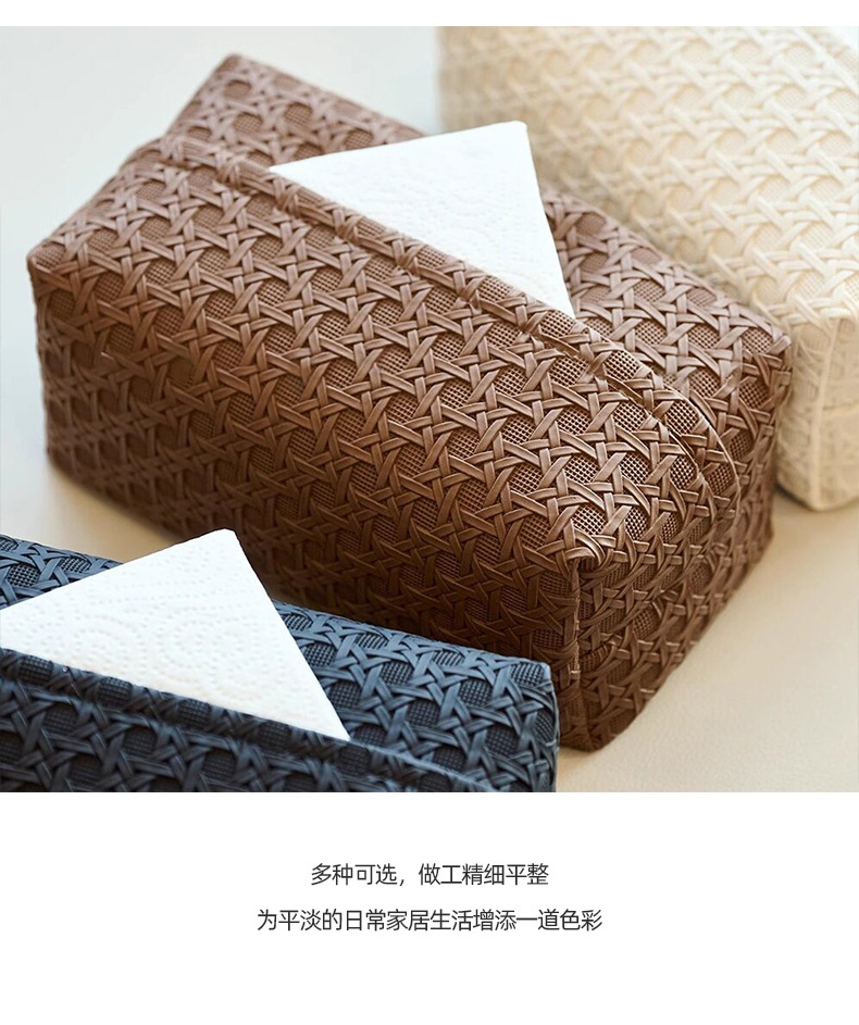 엄선된 새로운 심플한 등나무 무늬 가죽 티슈 박스, 티 테이블, 가벼운 럭셔리 장식, 침실, 거실 장식품, 가죽 티슈스토어 가기