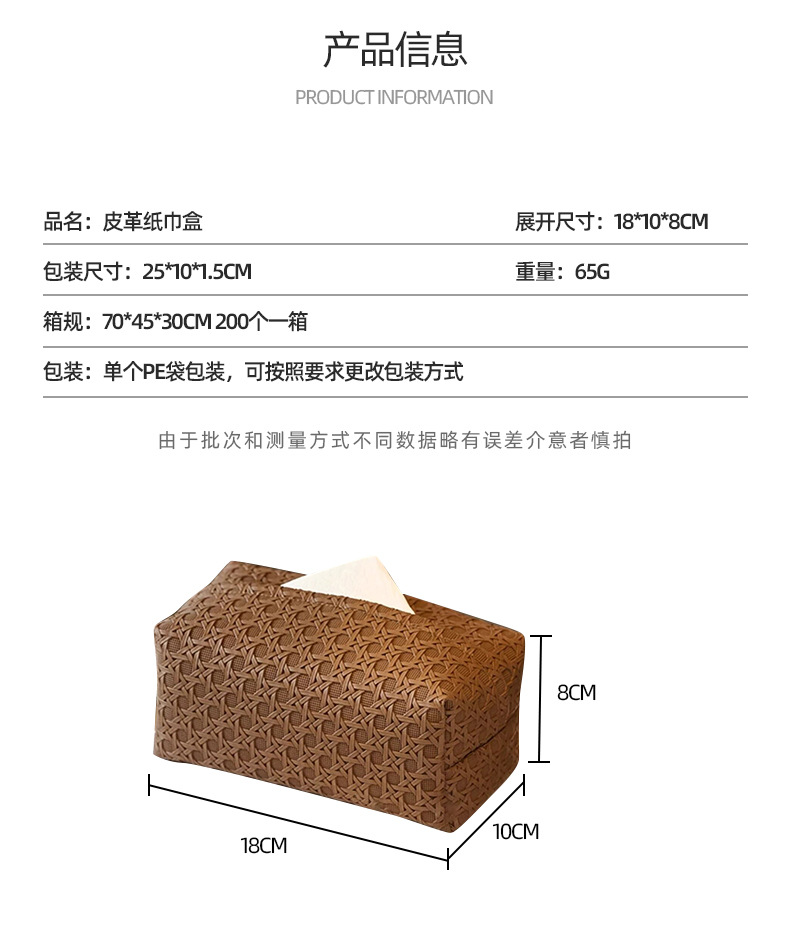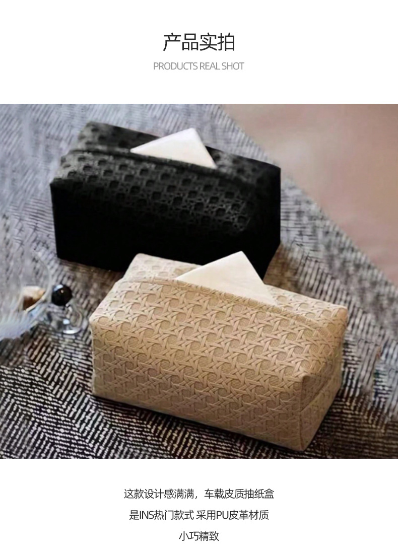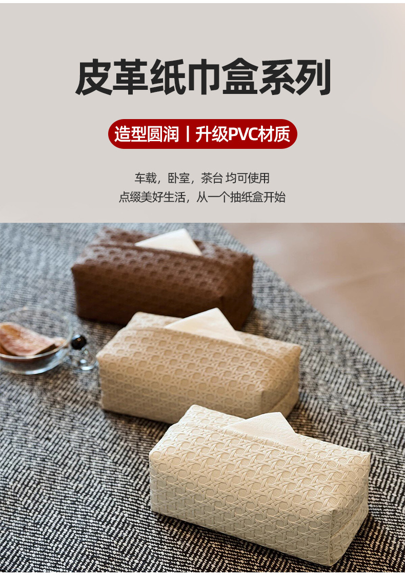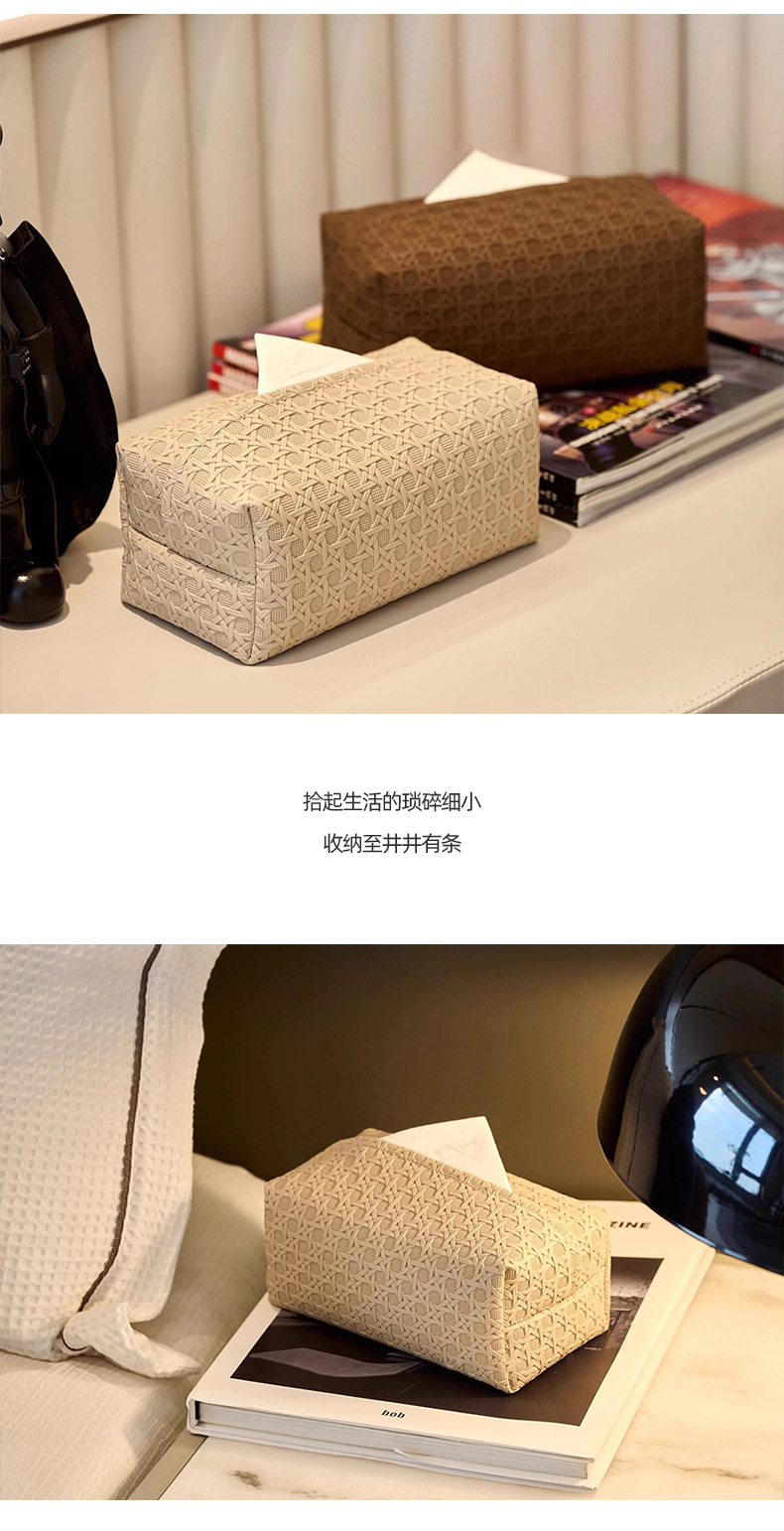 엄선된 새로운 심플한 등나무 무늬 가죽 티슈 박스, 티 테이블, 가벼운 럭셔리 장식, 침실, 거실 장식품, 가죽 티슈스토어 가기
