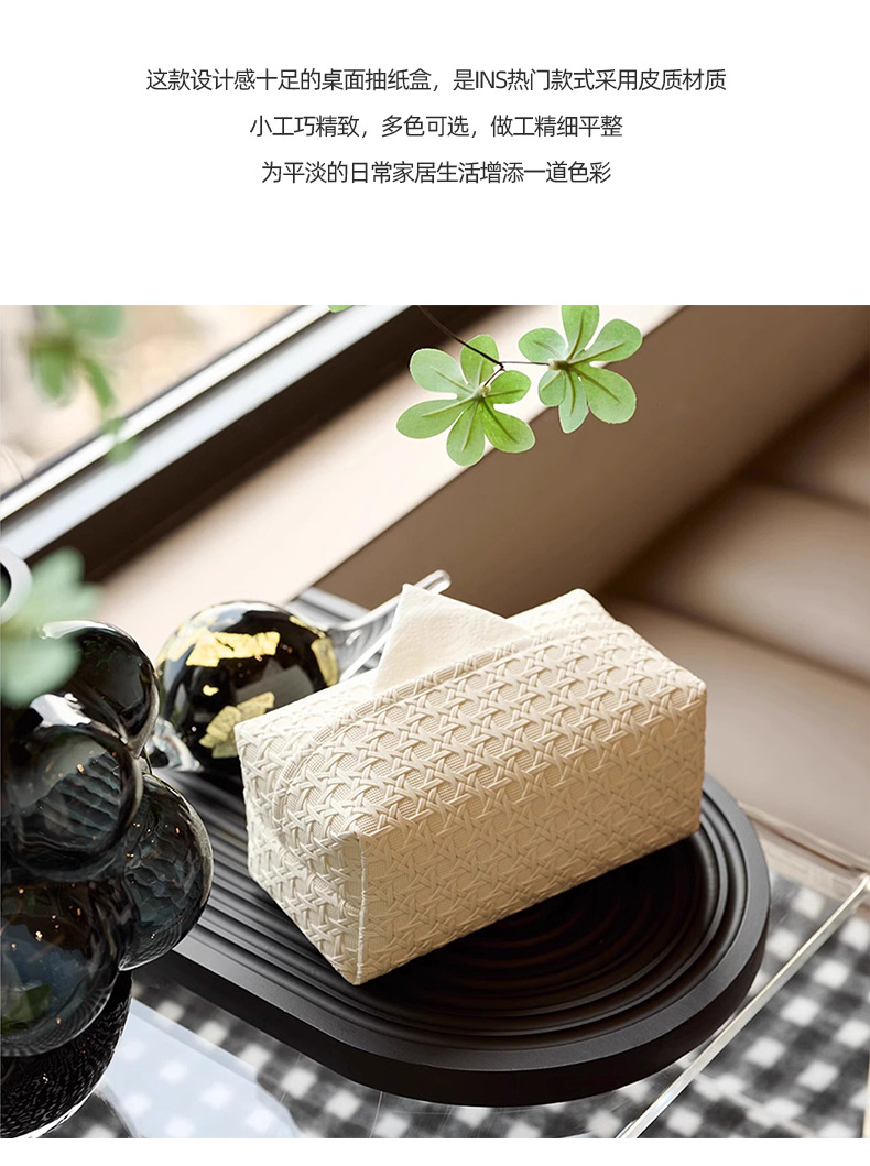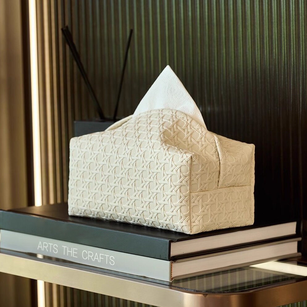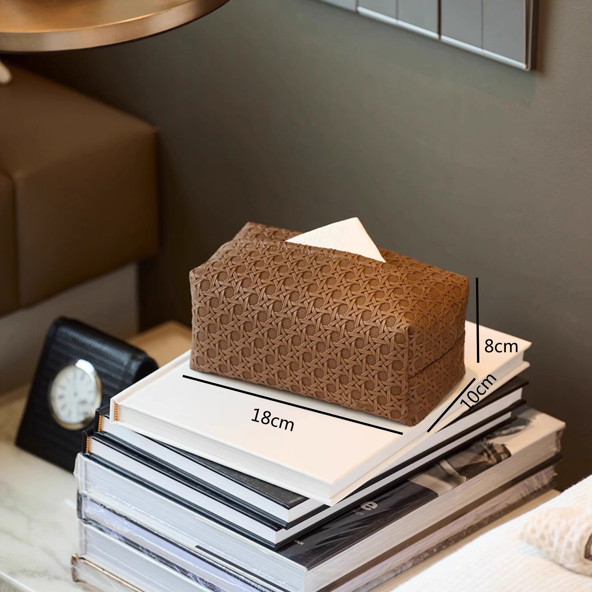엄선된 새로운 심플한 등나무 무늬 가죽 티슈 박스, 티 테이블, 가벼운 럭셔리 장식, 침실, 거실 장식품, 가죽 티슈