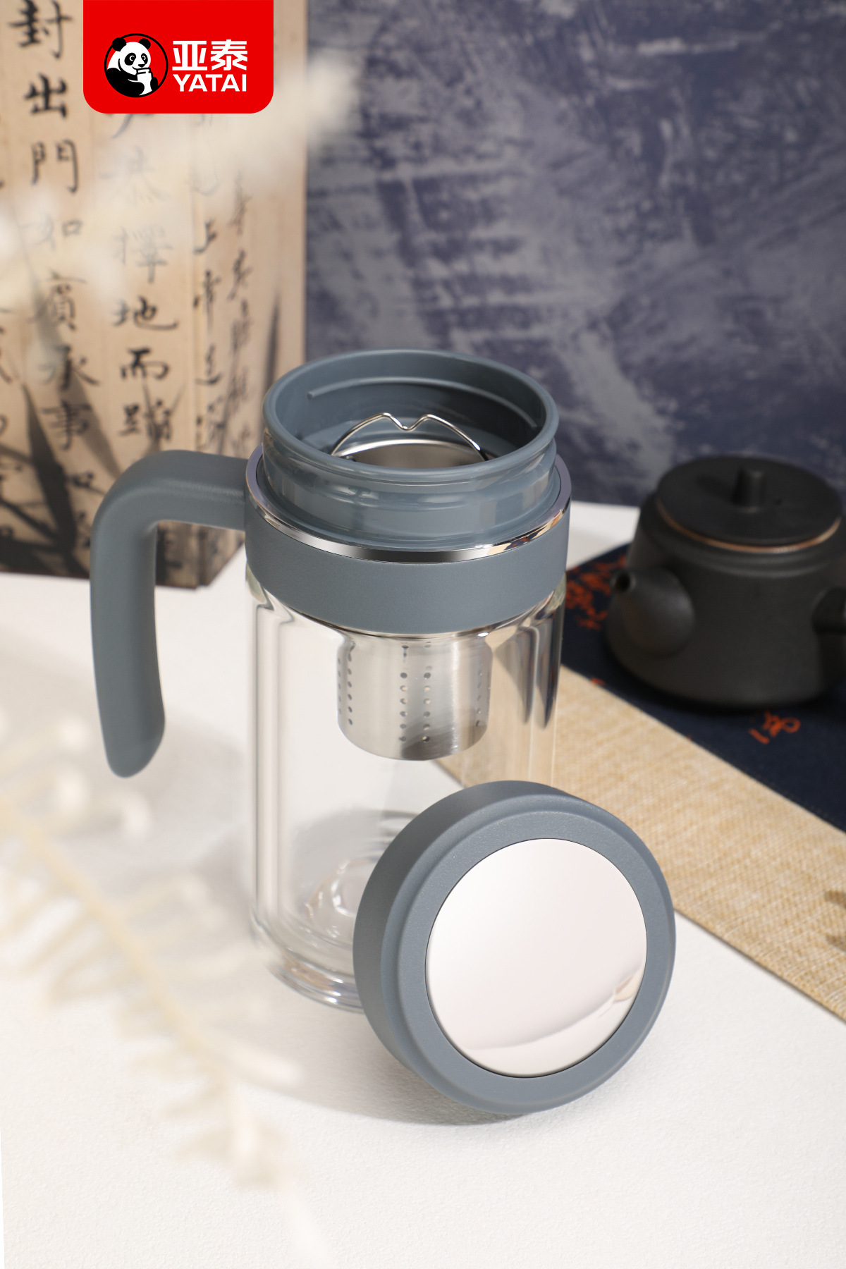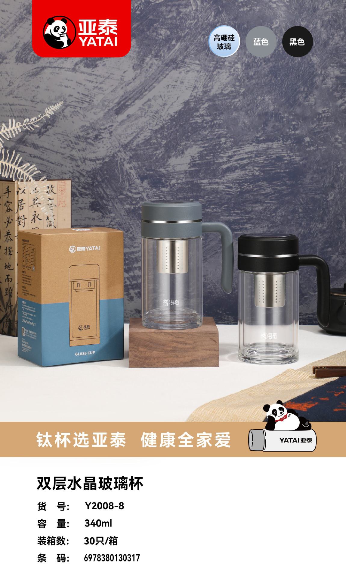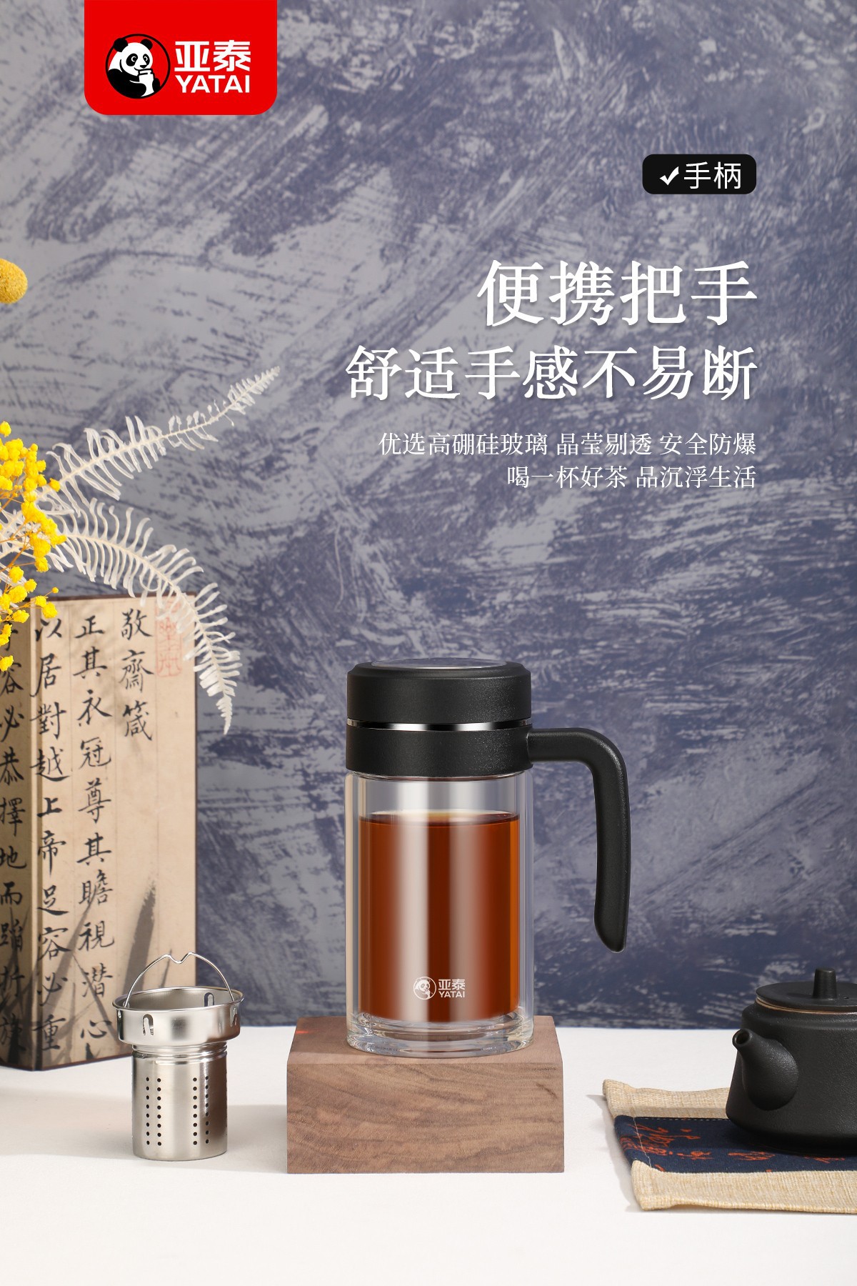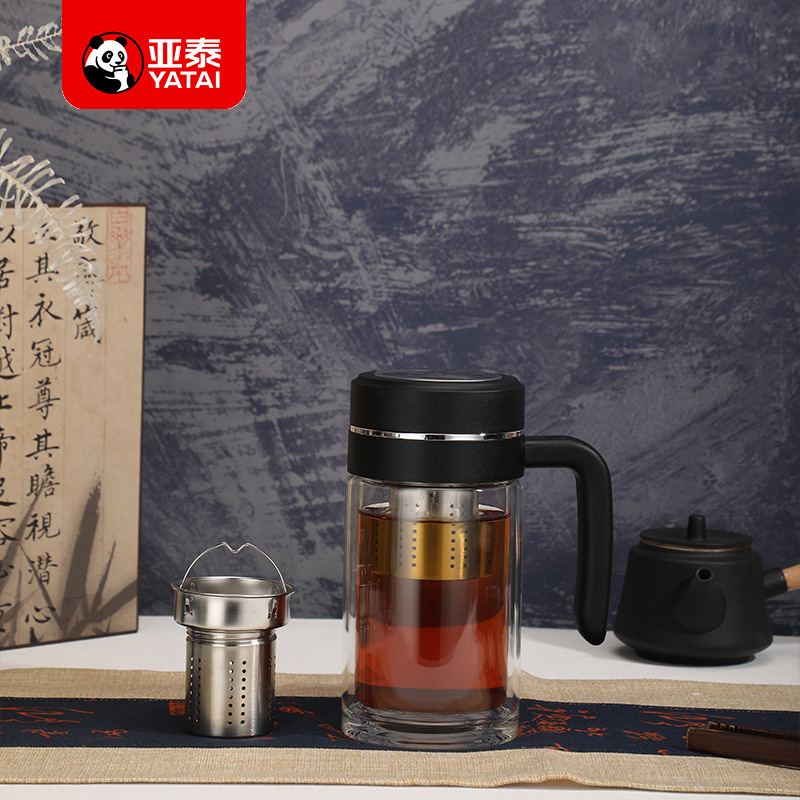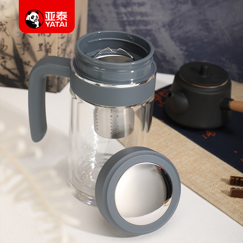 Yatai의 새로운 고붕규산염 이중층 단열재, 필터 및 손잡이가 있는 유리 물컵, 인쇄 가능, 대용량 도매