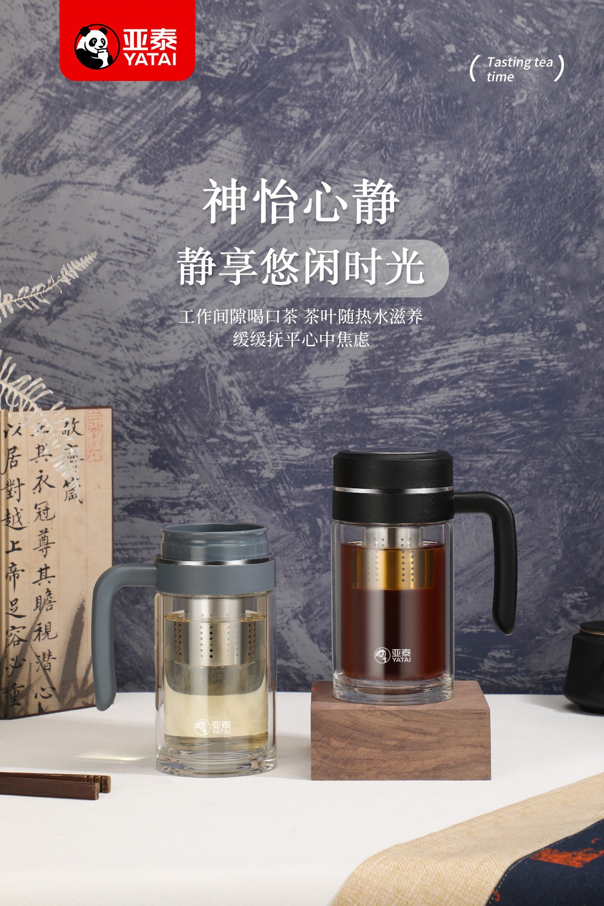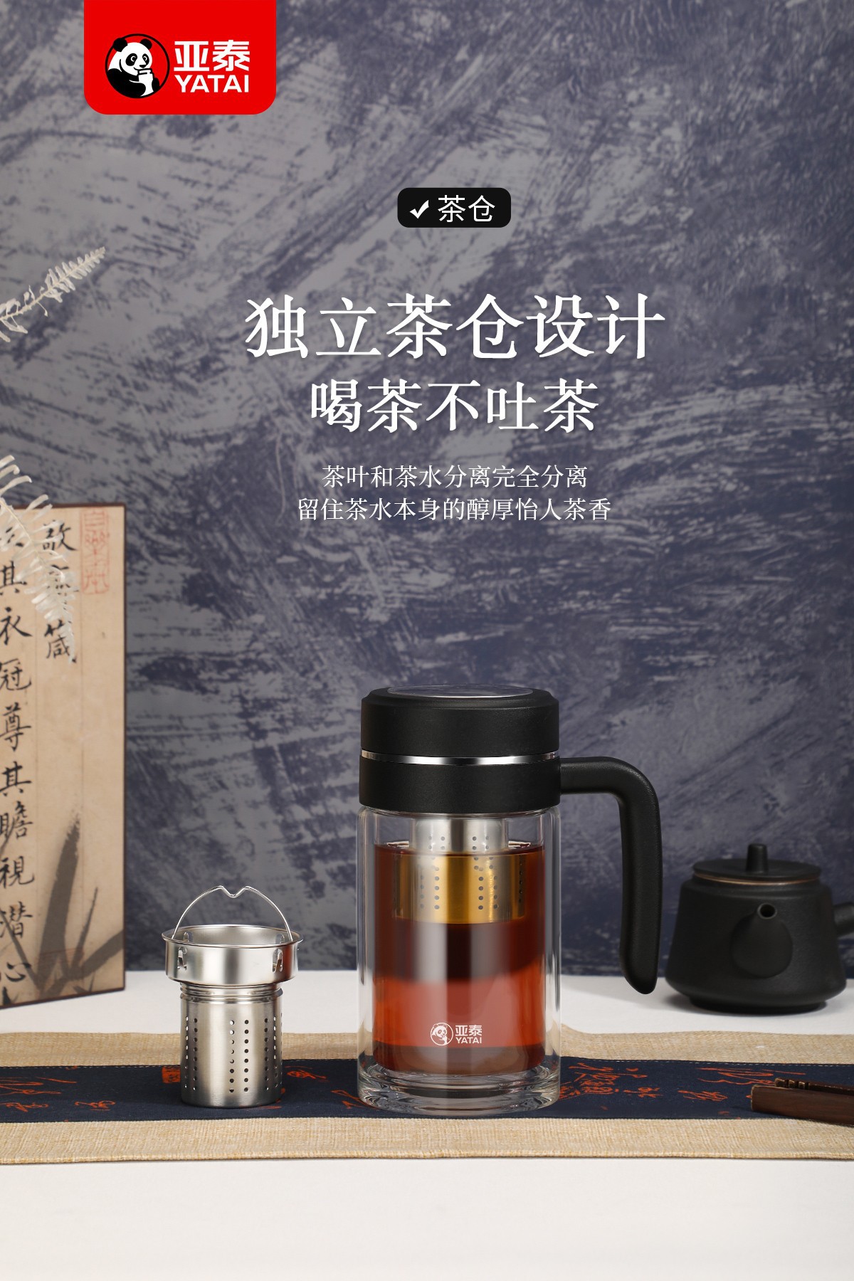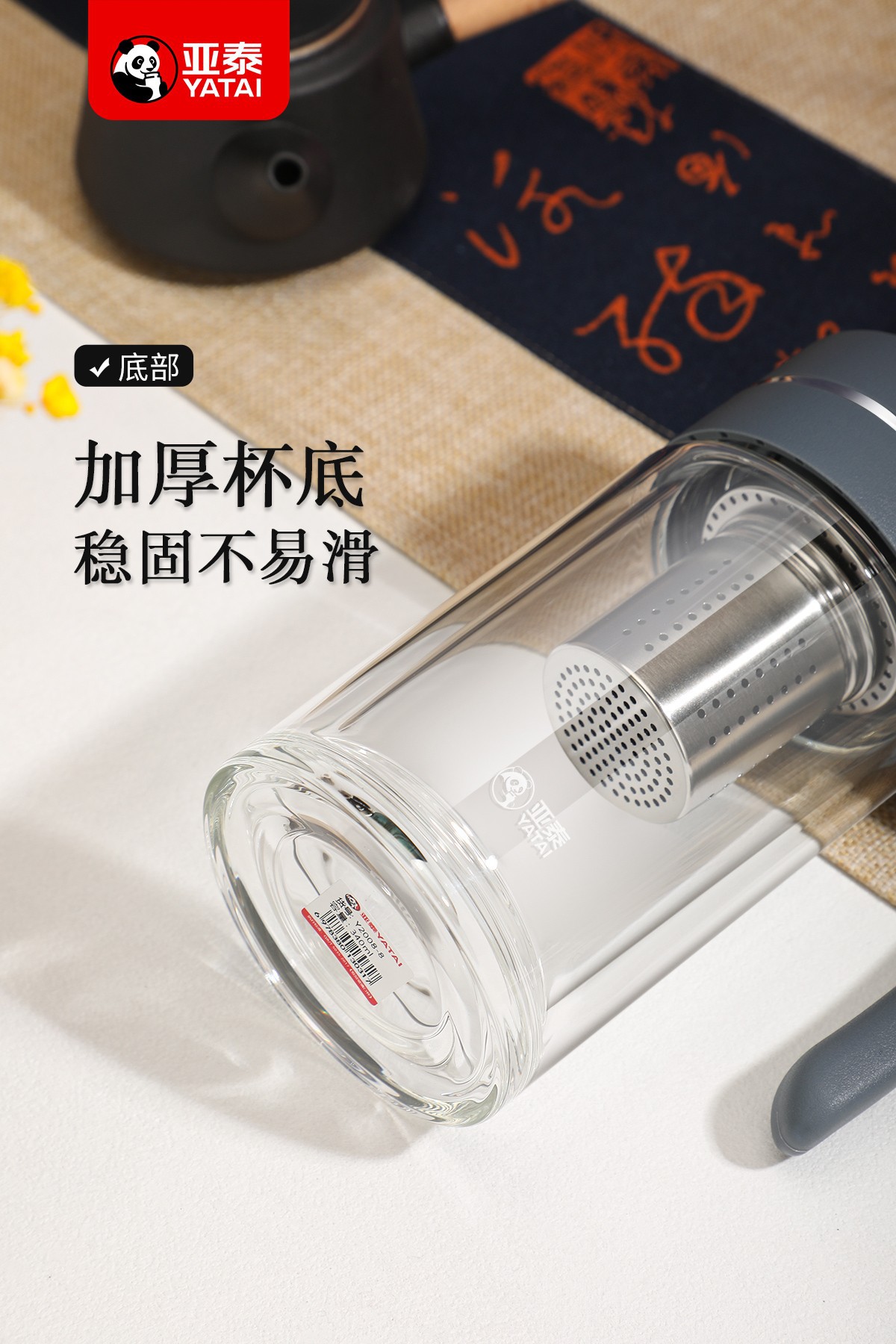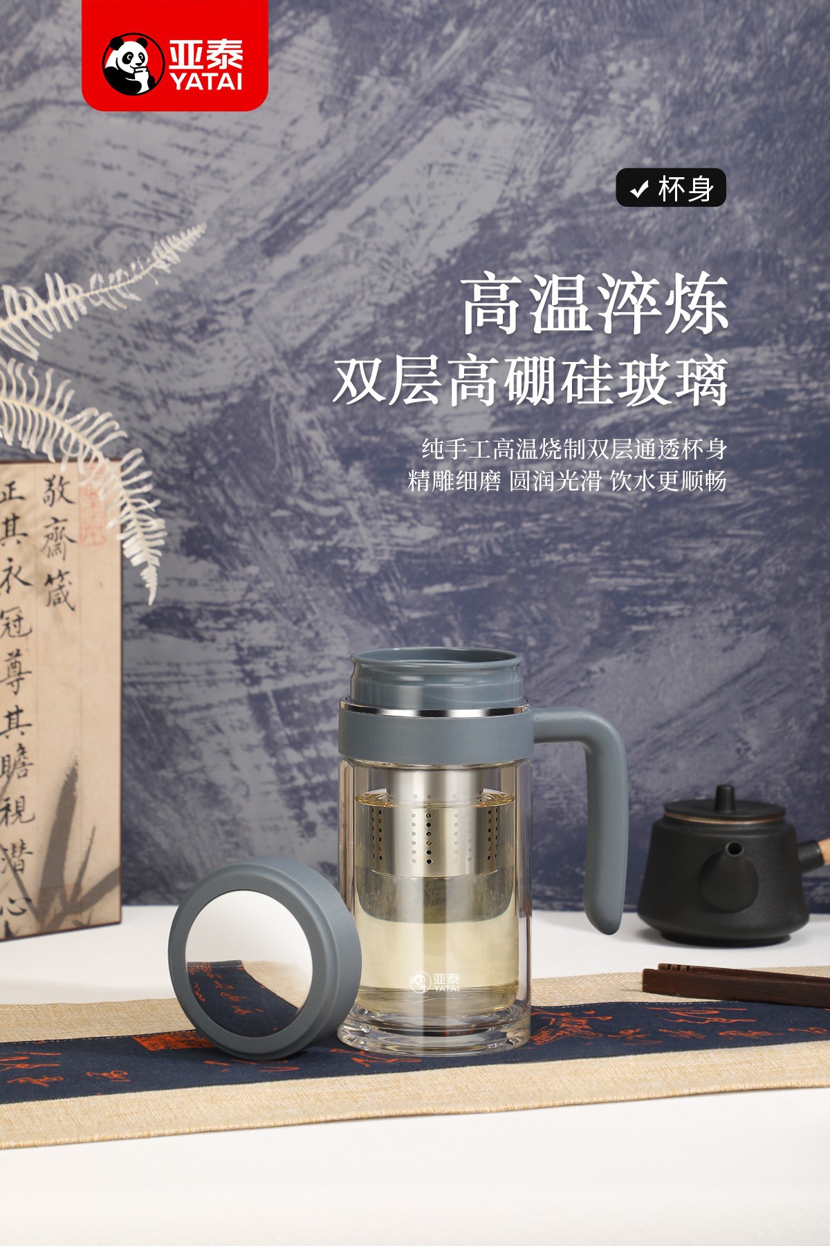 Yatai의 새로운 고붕규산염 이중층 단열재, 필터 및 손잡이가 있는 유리 물컵, 인쇄 가능, 대용량 도매