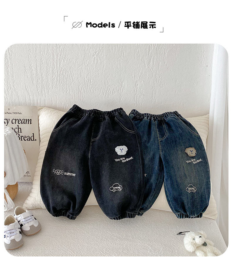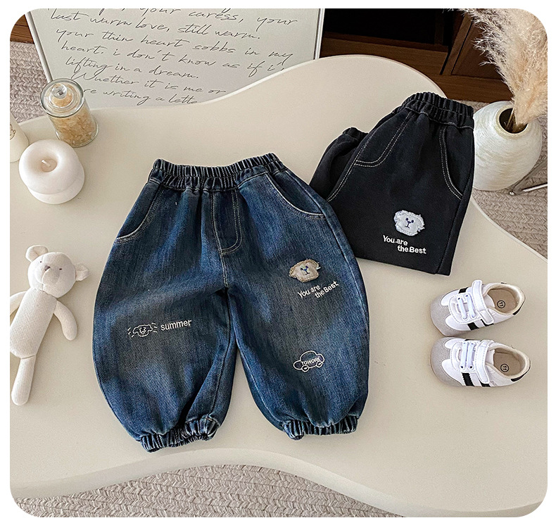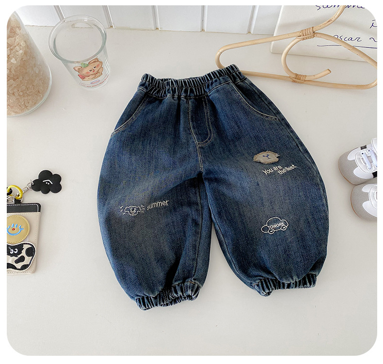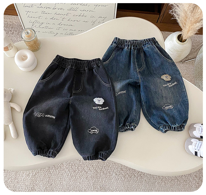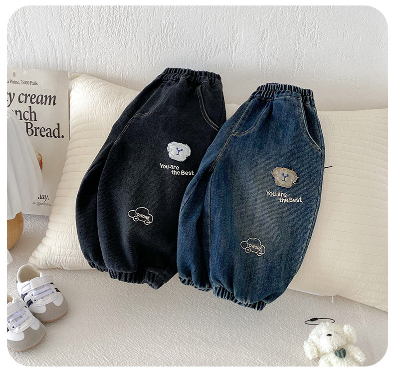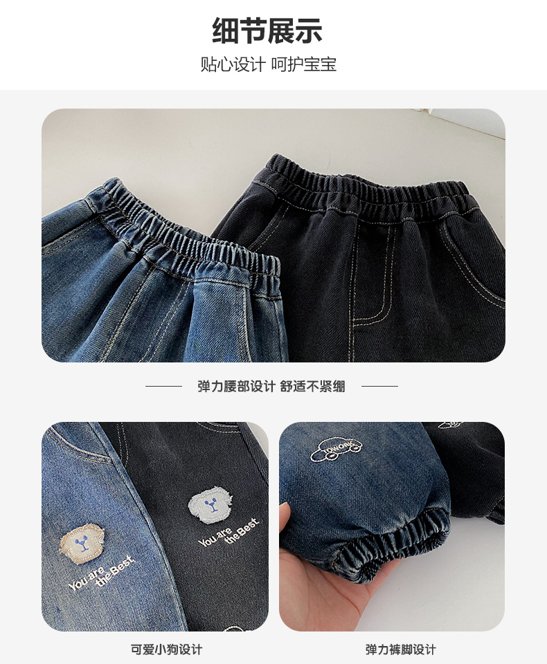 Dianxi 2025 새로운 가을 스타일 유아 강아지 자수 청바지 소년 한국 스타일 외국 스타일 데님 레깅스