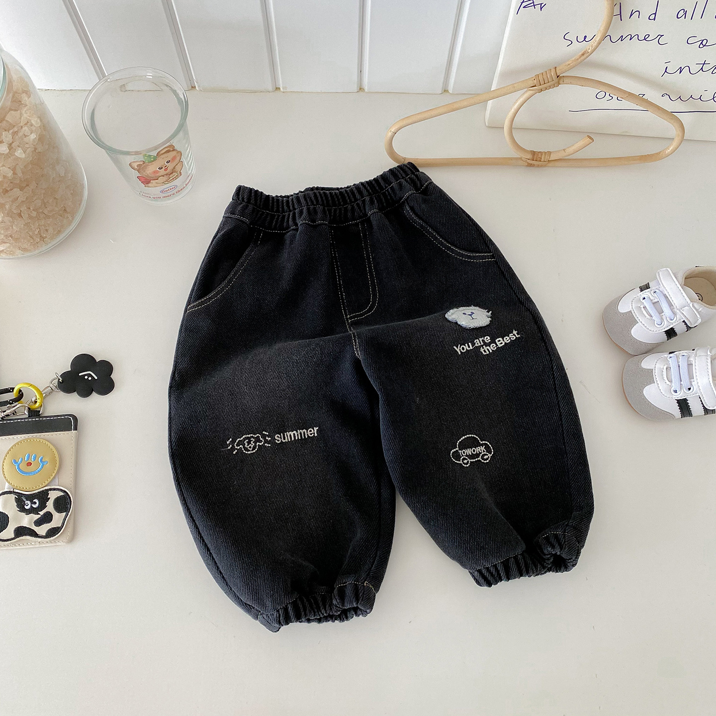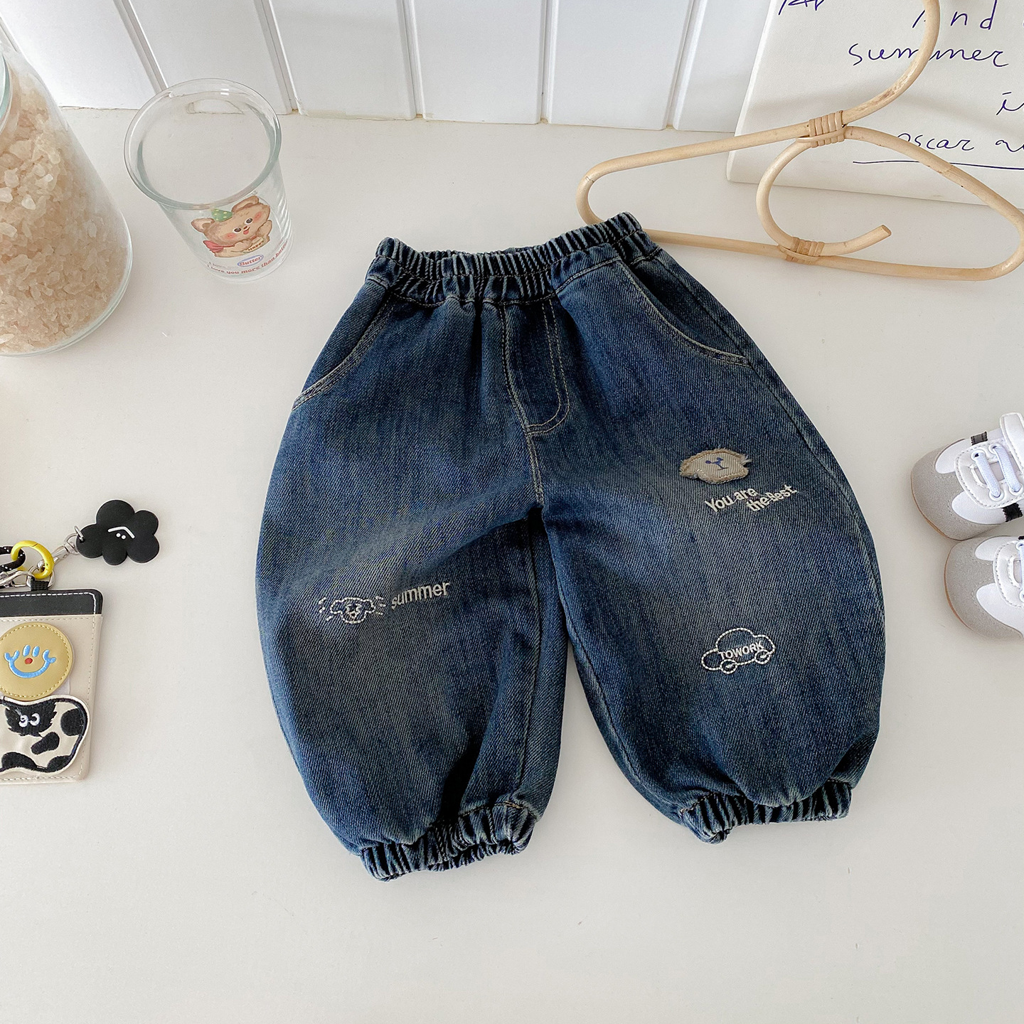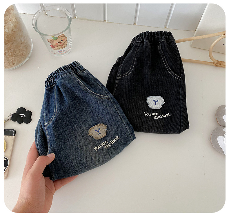 Dianxi 2025 새로운 가을 스타일 유아 강아지 자수 청바지 소년 한국 스타일 외국 스타일 데님 레깅스스토어 가기