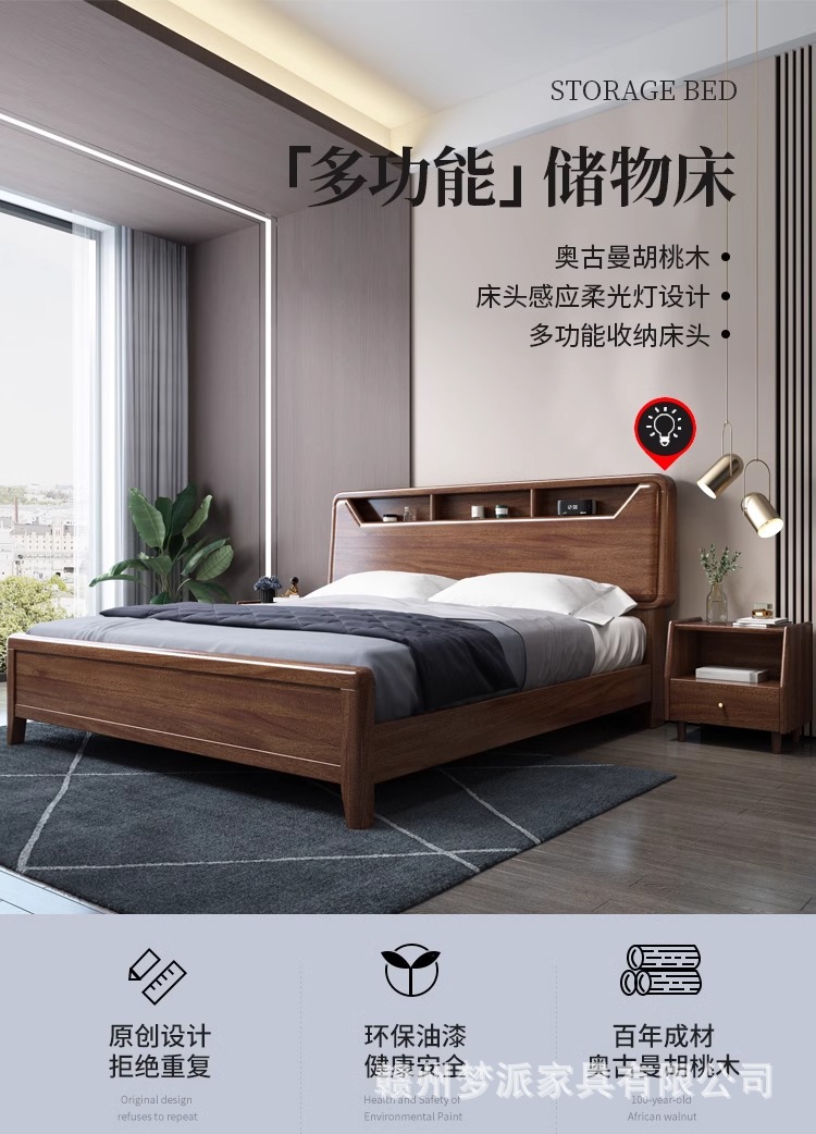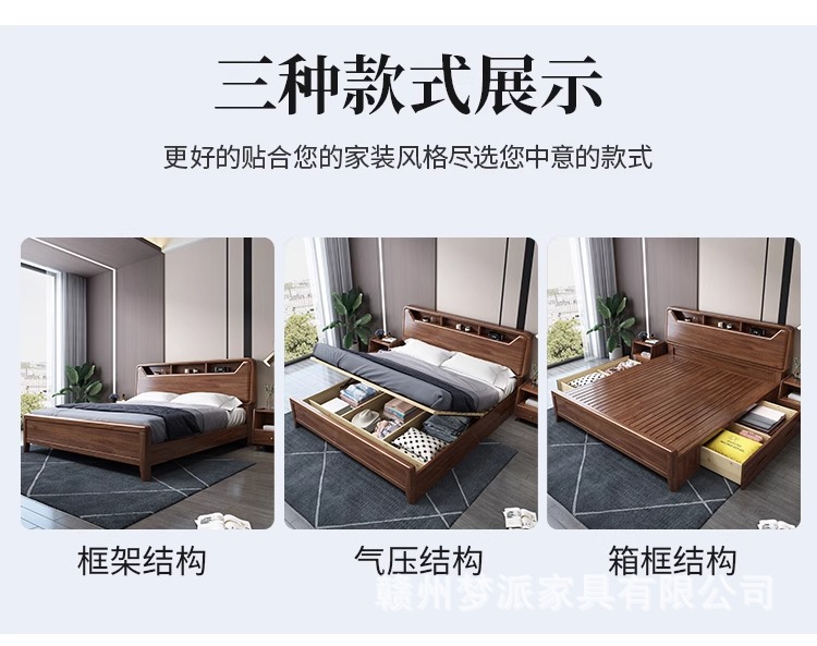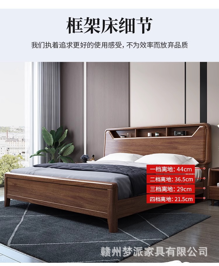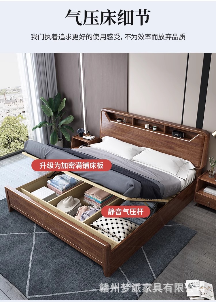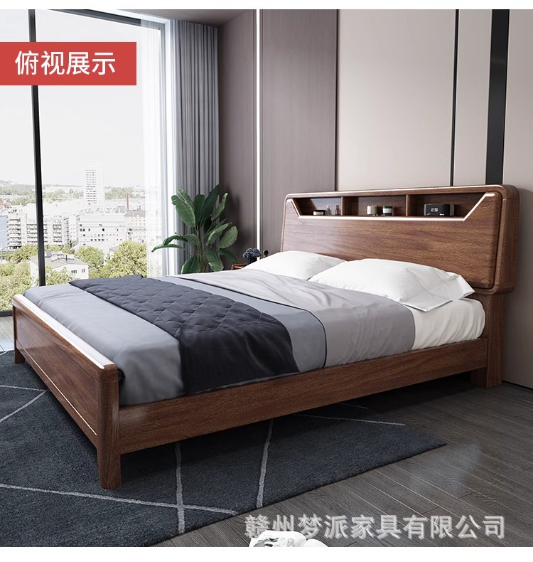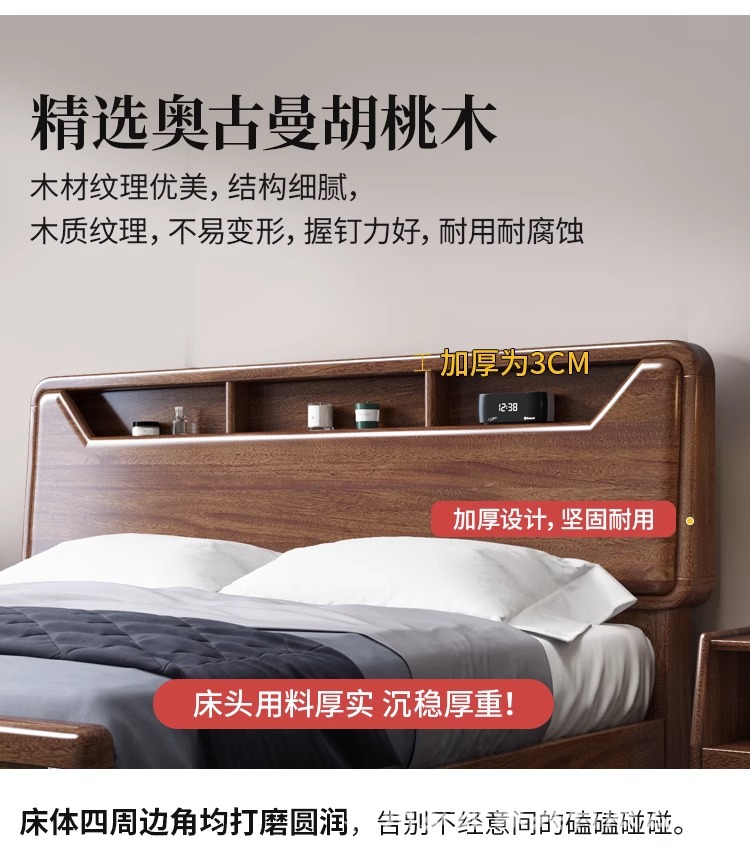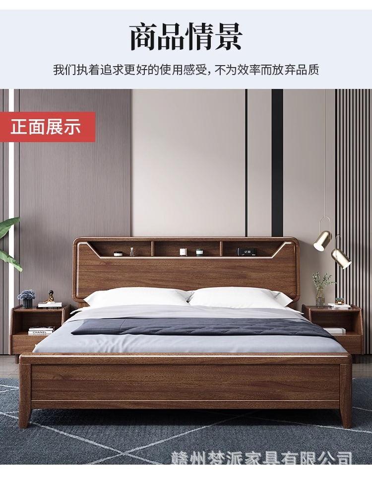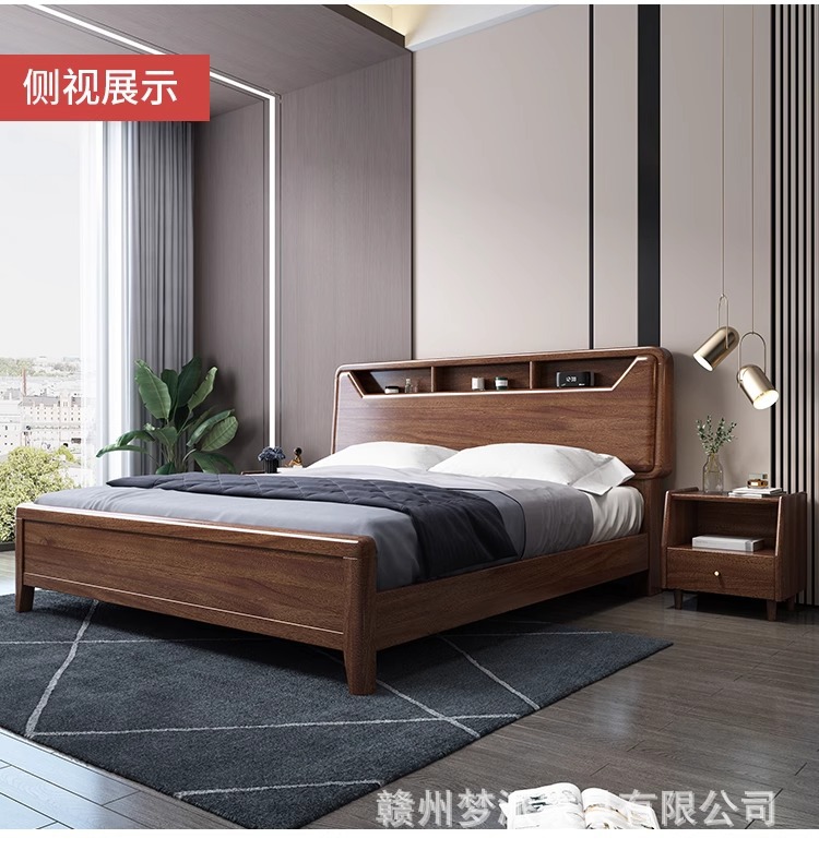 단단한 나무 침대 현대적인 미니멀리스트 호두나무 2m × 2.2m 대형 침대 새로운 중국 스타일 1.8m 마스터 침실 더블 수납 웨딩 침대스토어 가기