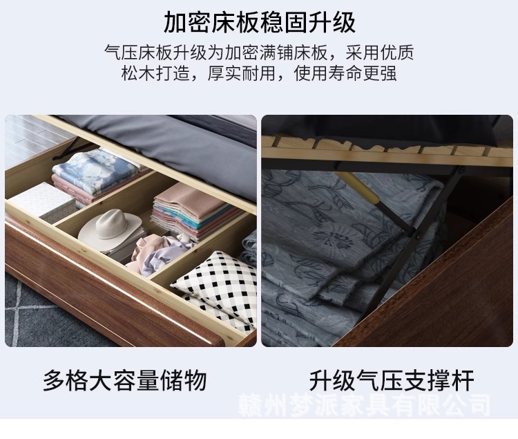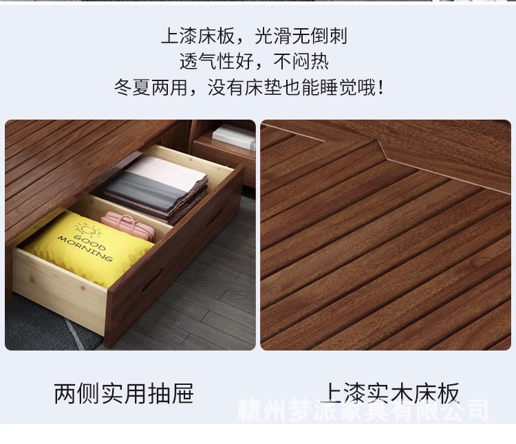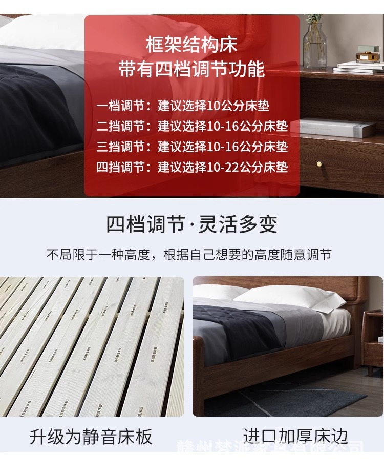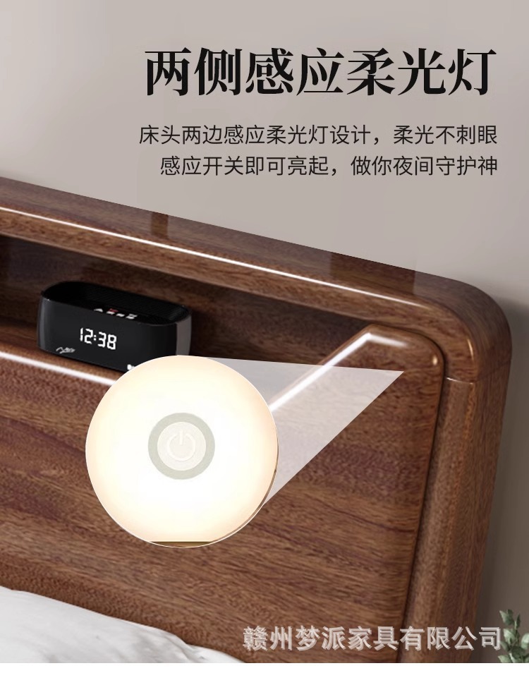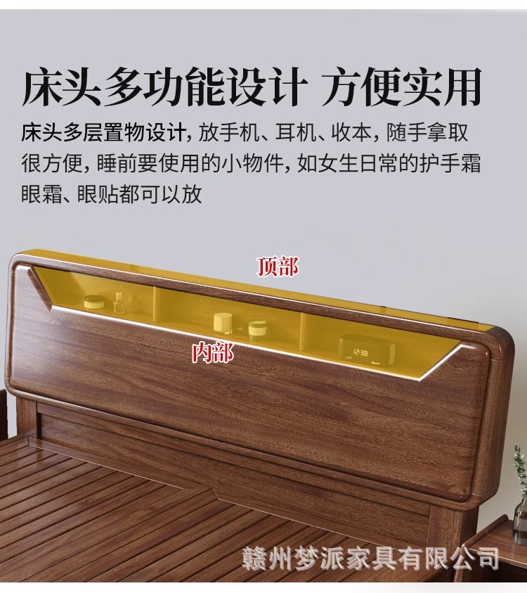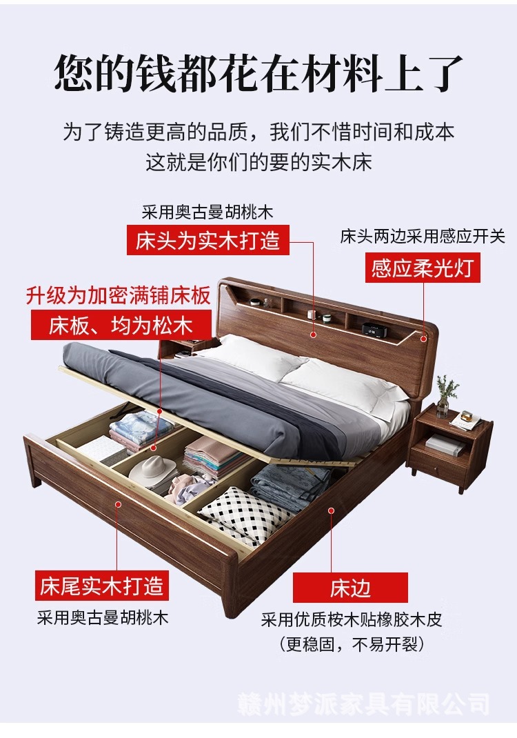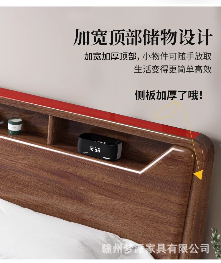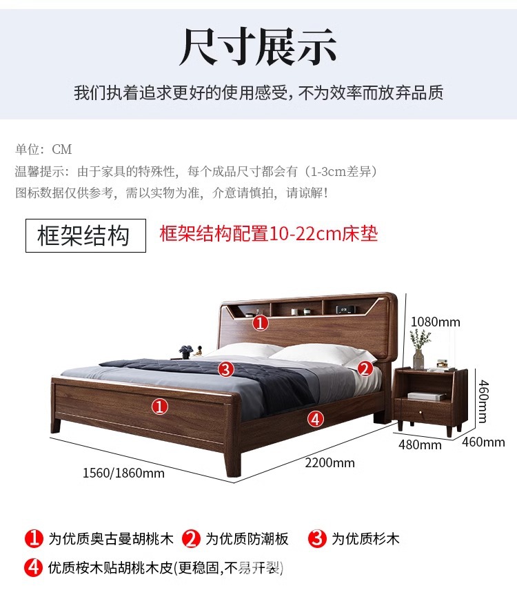 단단한 나무 침대 현대적인 미니멀리스트 호두나무 2m × 2.2m 대형 침대 새로운 중국 스타일 1.8m 마스터 침실 더블 수납 웨딩 침대스토어 가기