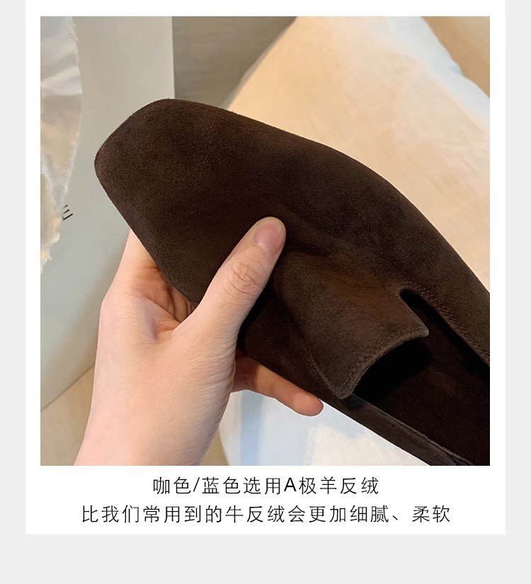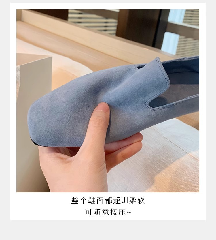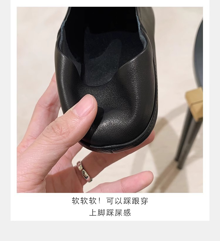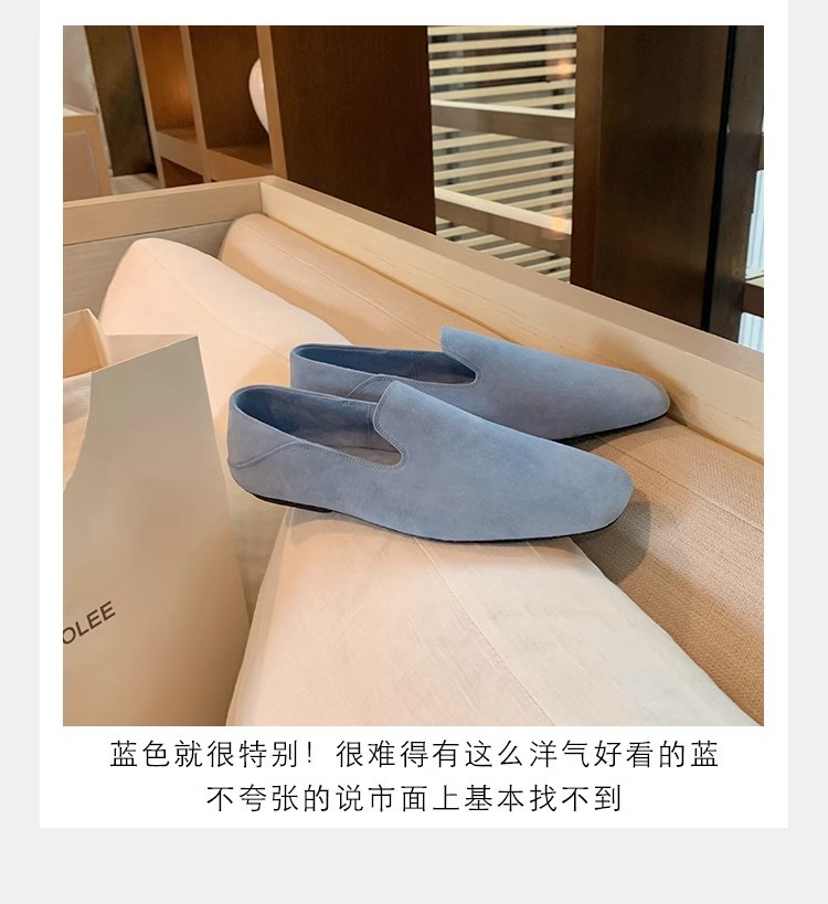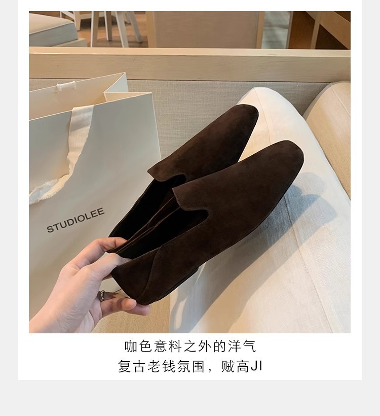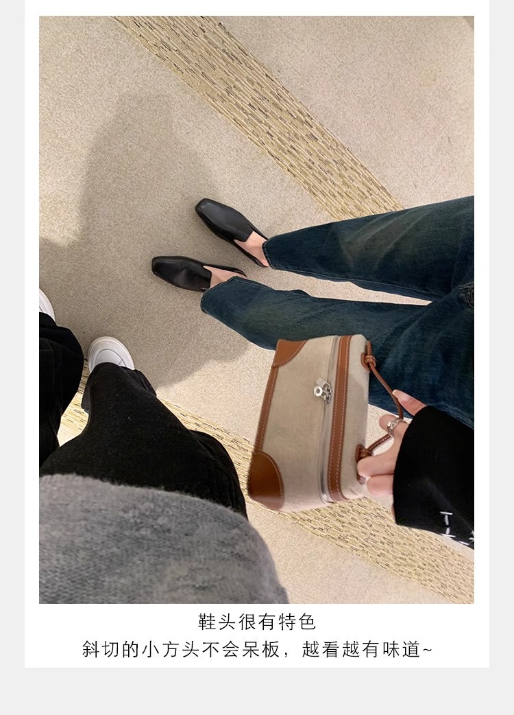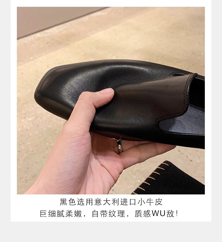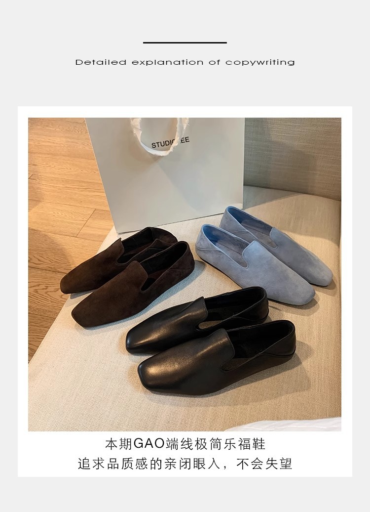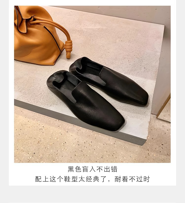 소가죽 버전~레트로 천연가죽 대각선 스퀘어토 로퍼 여성용 다용도 통근 게으른 슬립온 플랫슈즈