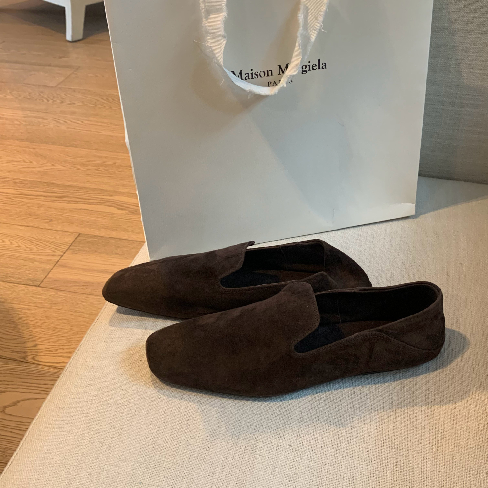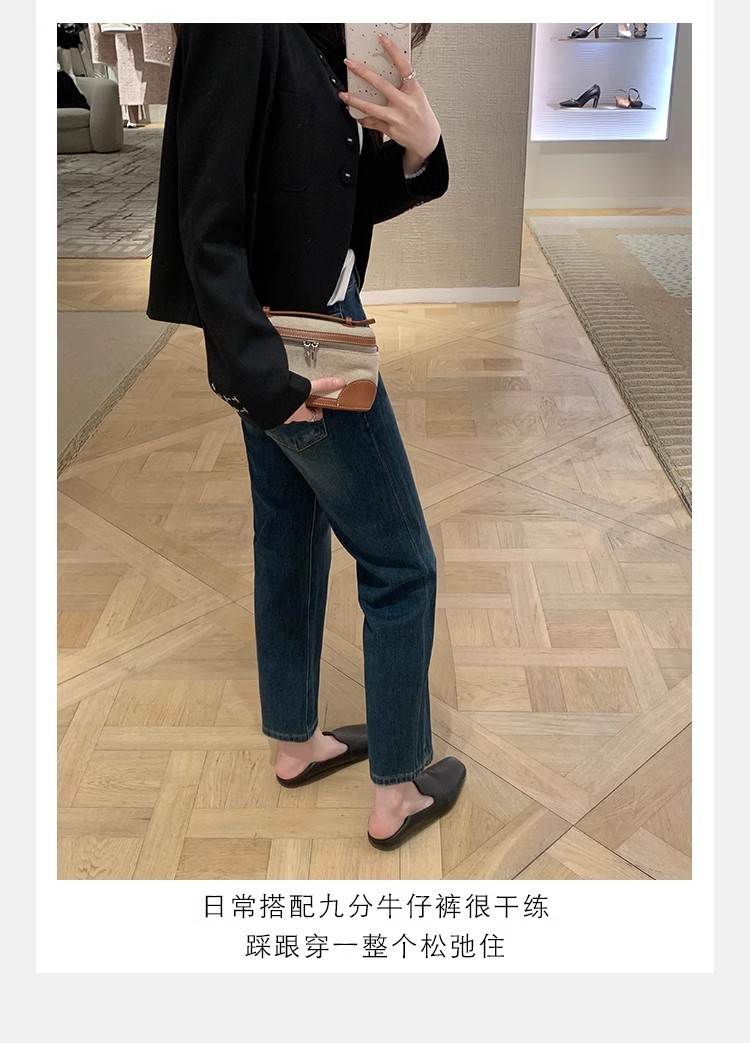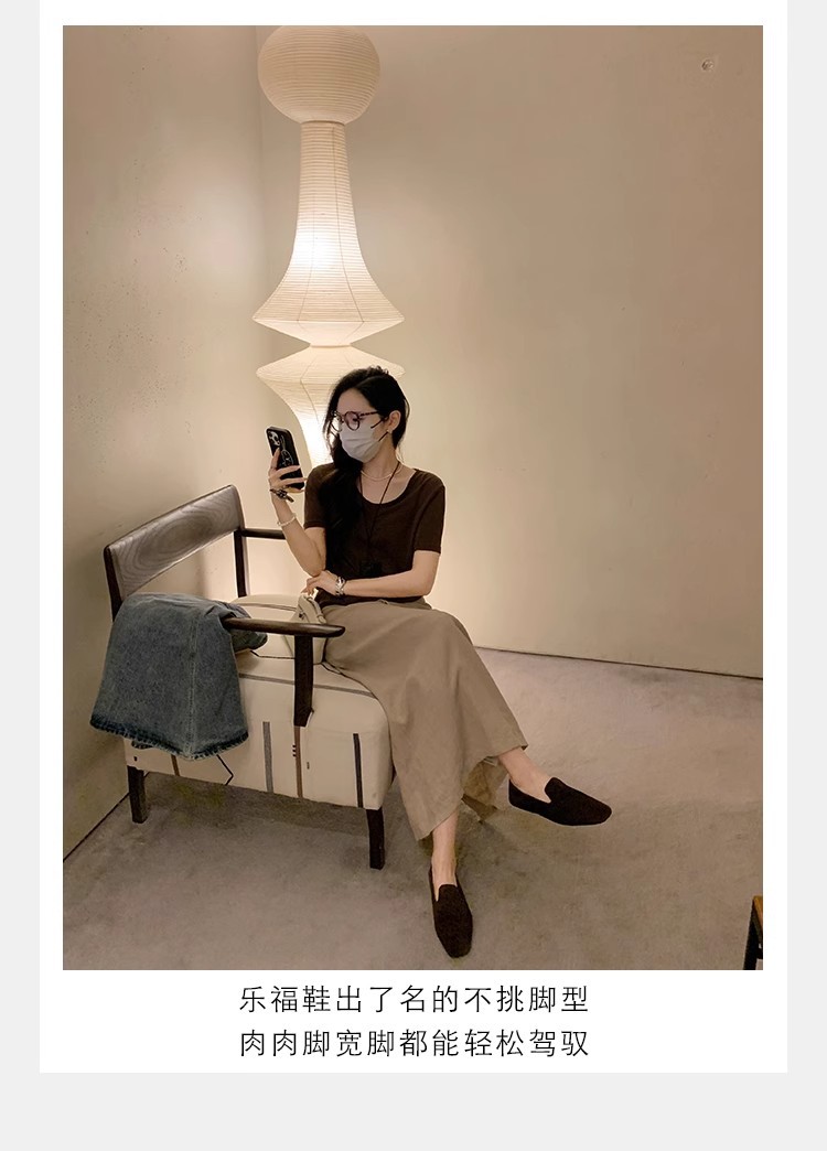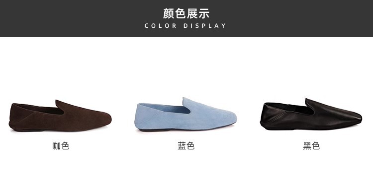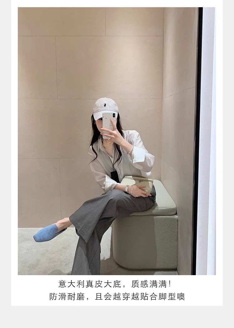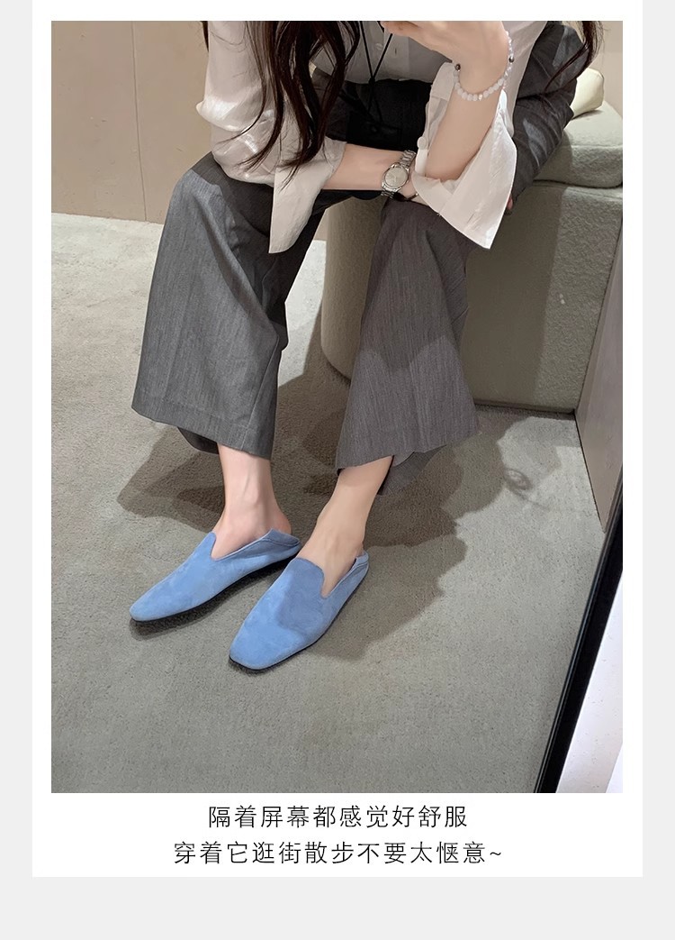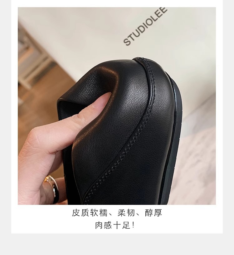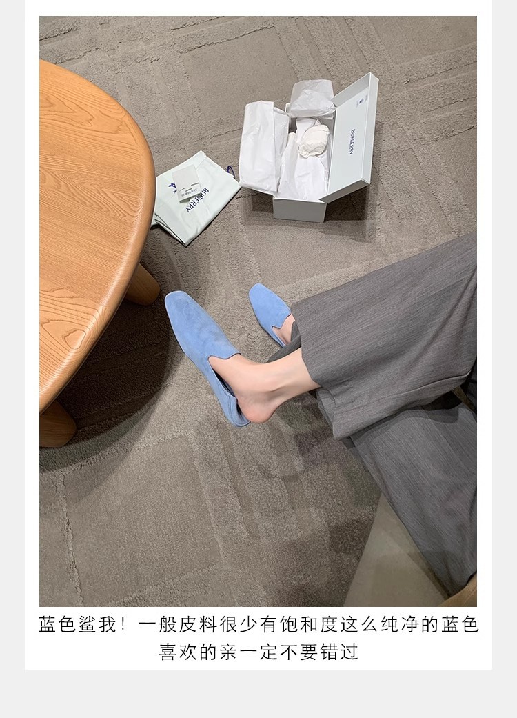 소가죽 버전~레트로 천연가죽 대각선 스퀘어토 로퍼 여성용 다용도 통근 게으른 슬립온 플랫슈즈
