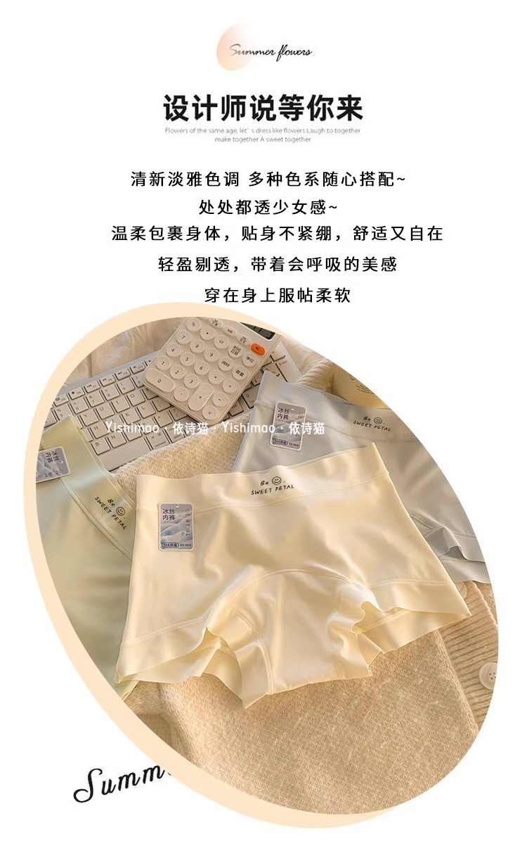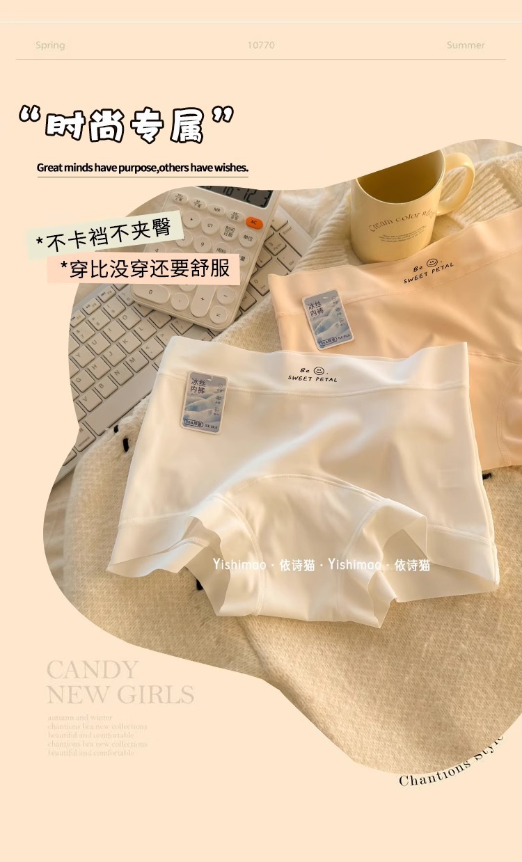 여자를위한 초박형 여성용 얼음 실크 속옷 10A 코튼 가랑이 중간 허리 2025 새로운 통기성 여성용 복서 반바지