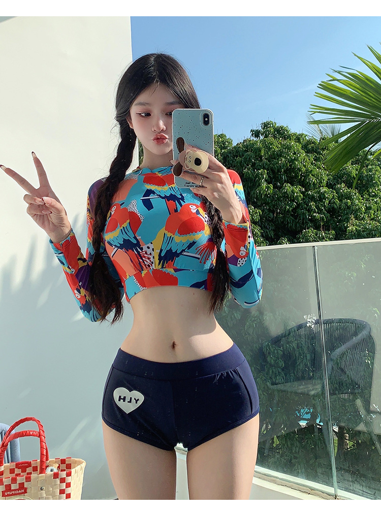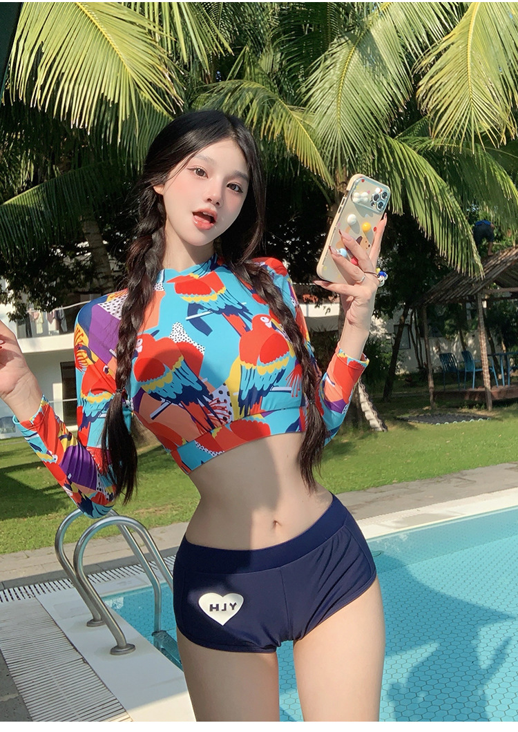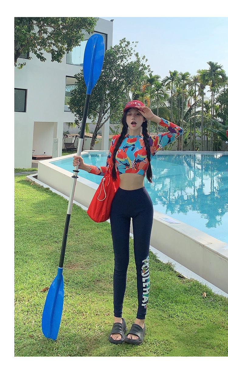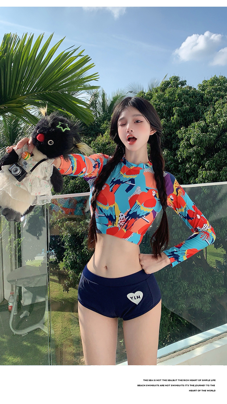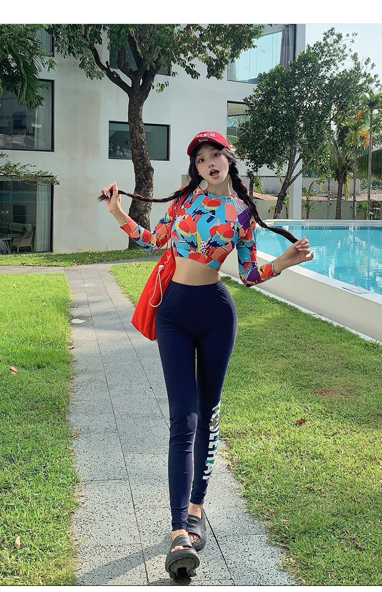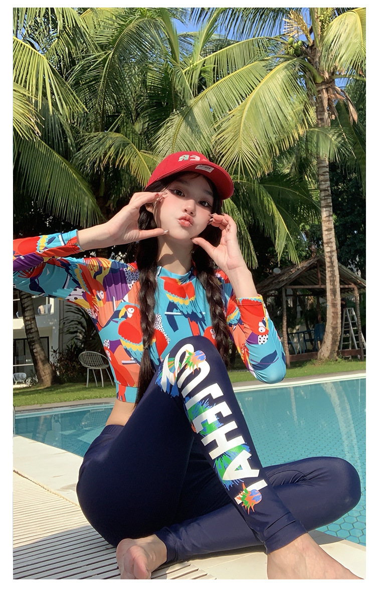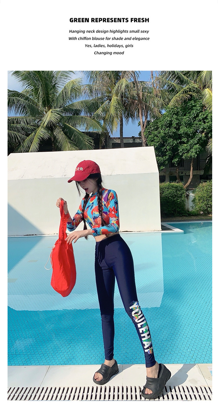 새로운 한국 수영복 여성 프린트 긴팔 수영복 잠수복 해파리 바지 스플릿 서핑 슈트 스노클링 잠수복