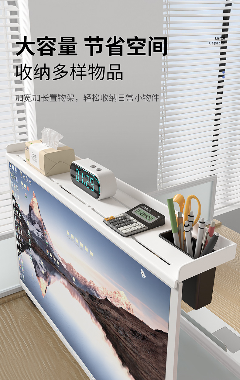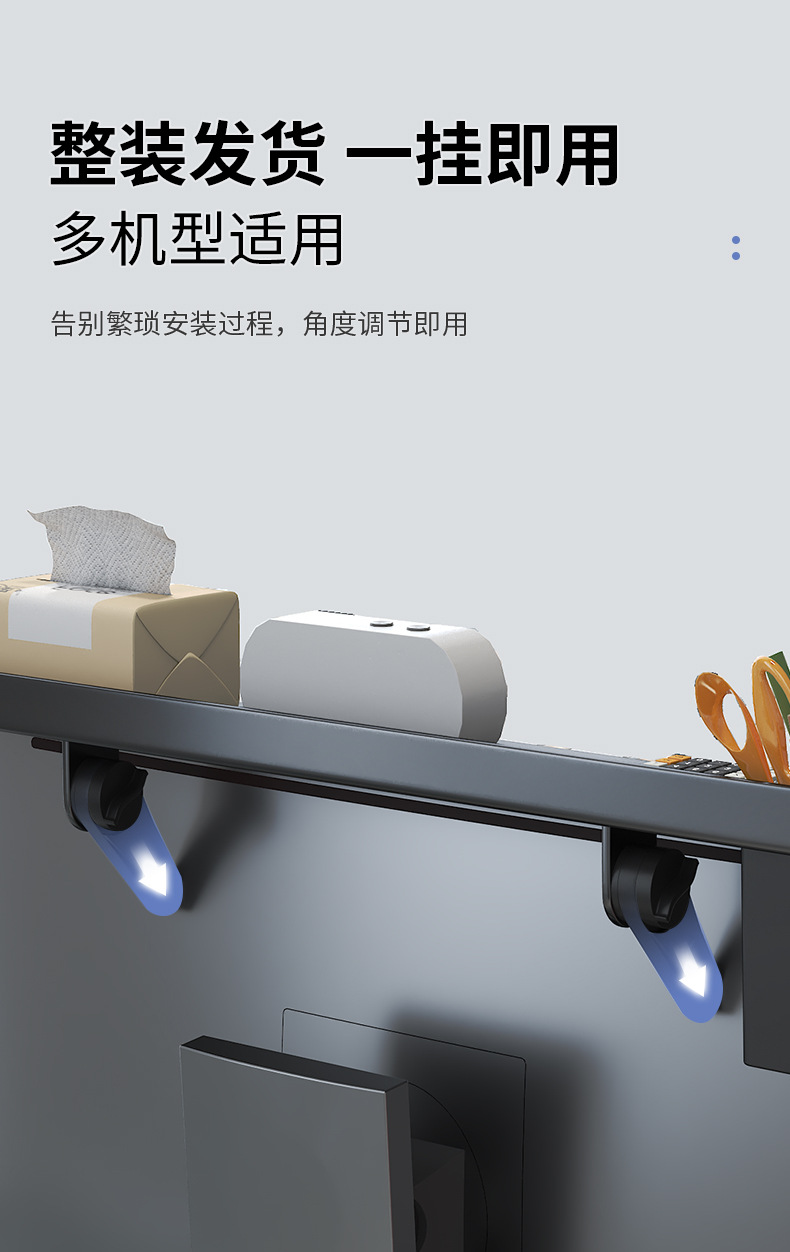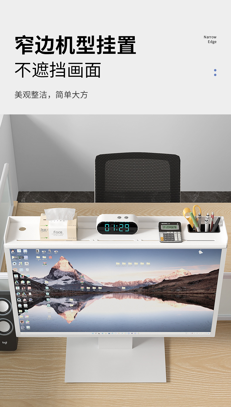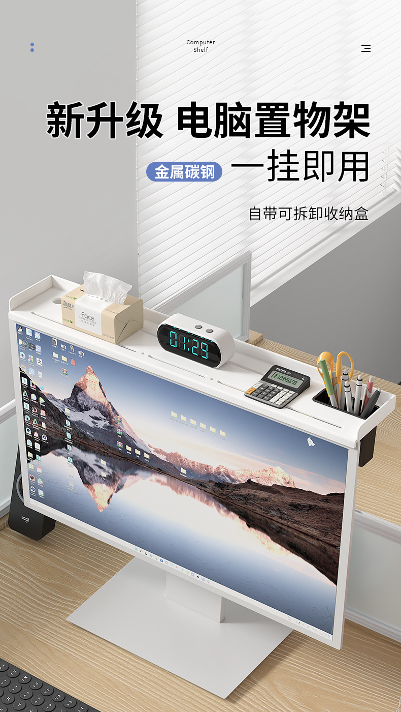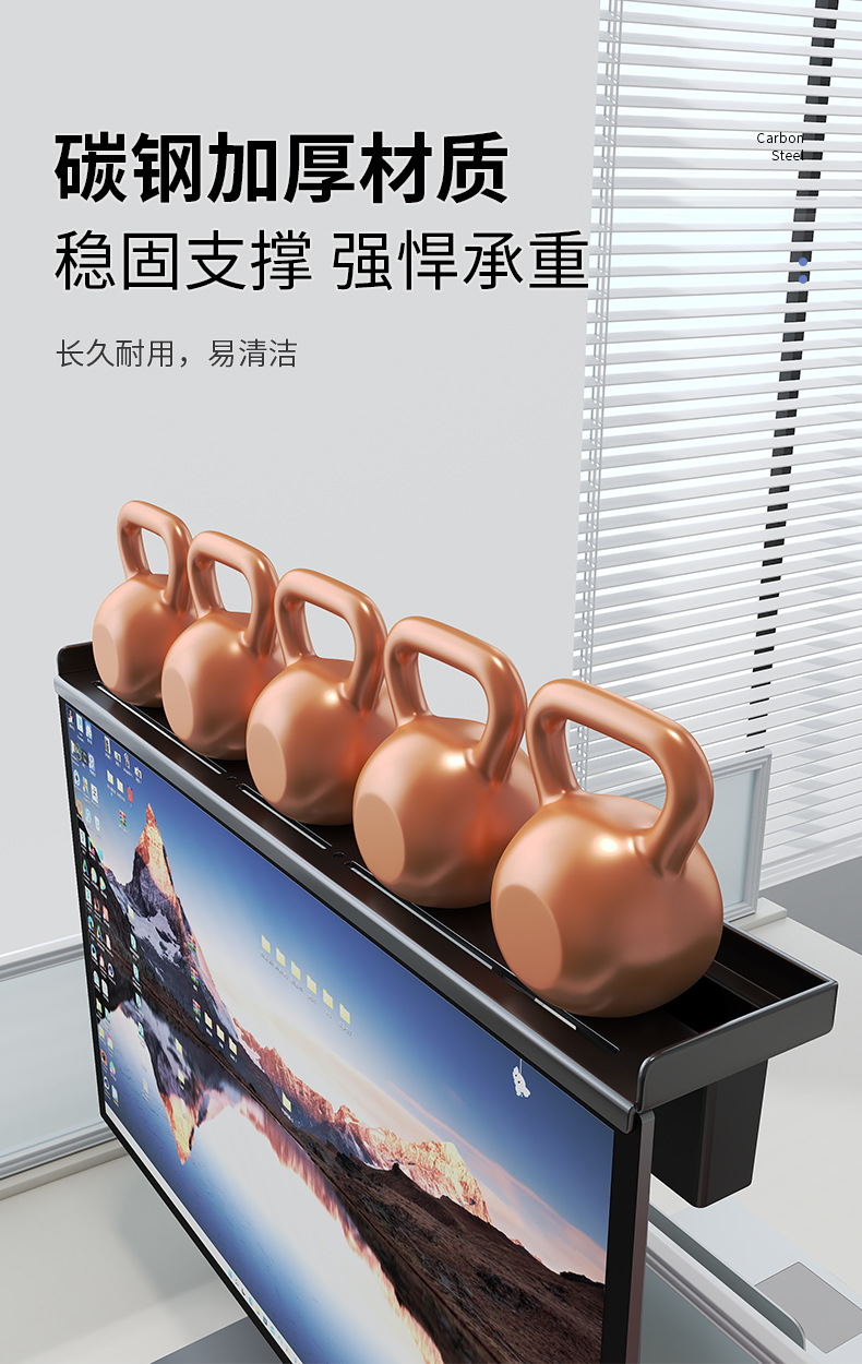 [맞춤형] 컴퓨터 모니터 위에 설치 가능한 선반, 구멍을 뚫을 필요 없음, 각도 조절 가능, 분해 및 조립 가능, 즉시 사용 가능