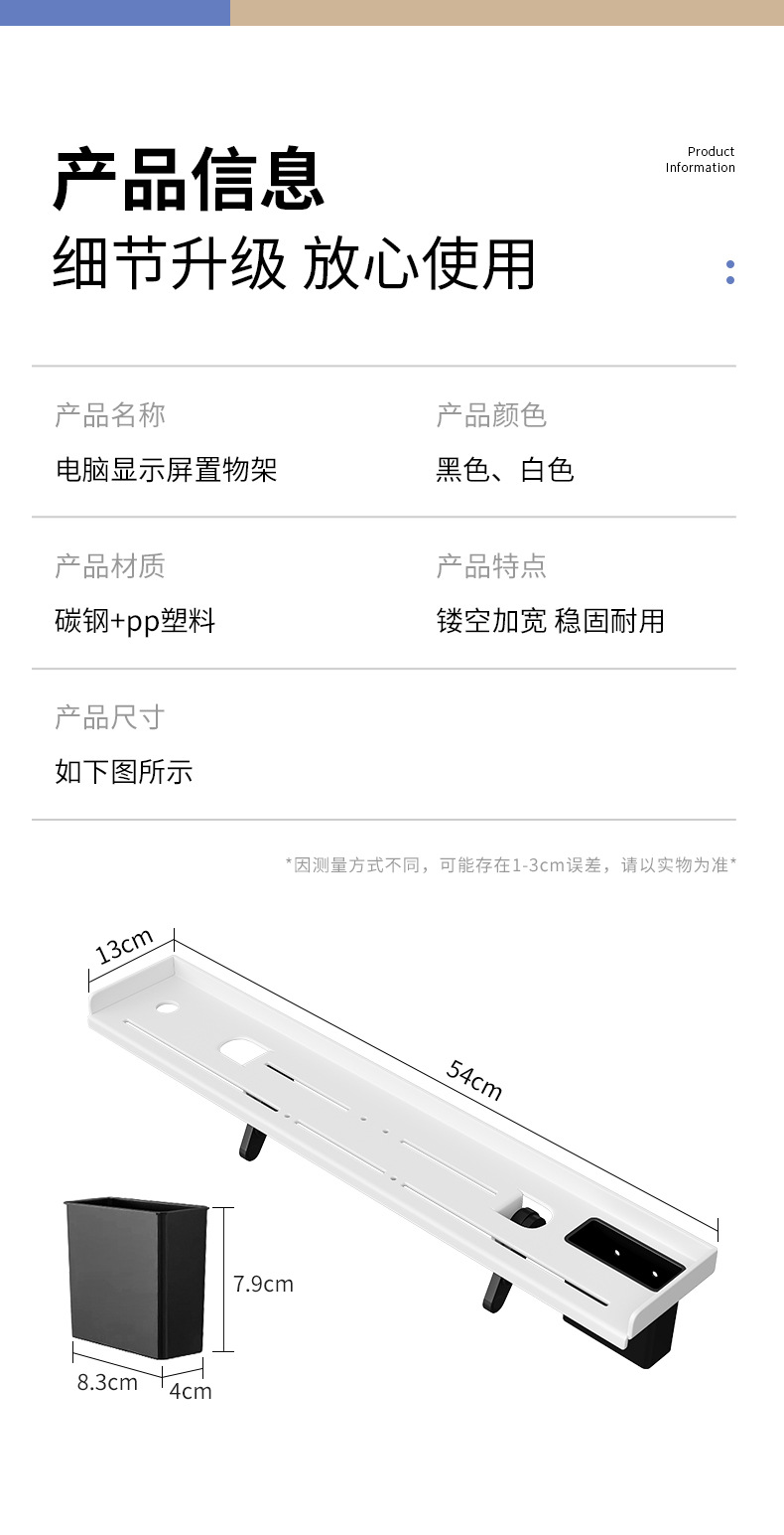 [맞춤형] 컴퓨터 모니터 위에 설치 가능한 선반, 구멍을 뚫을 필요 없음, 각도 조절 가능, 분해 및 조립 가능, 즉시 사용 가능스토어 가기