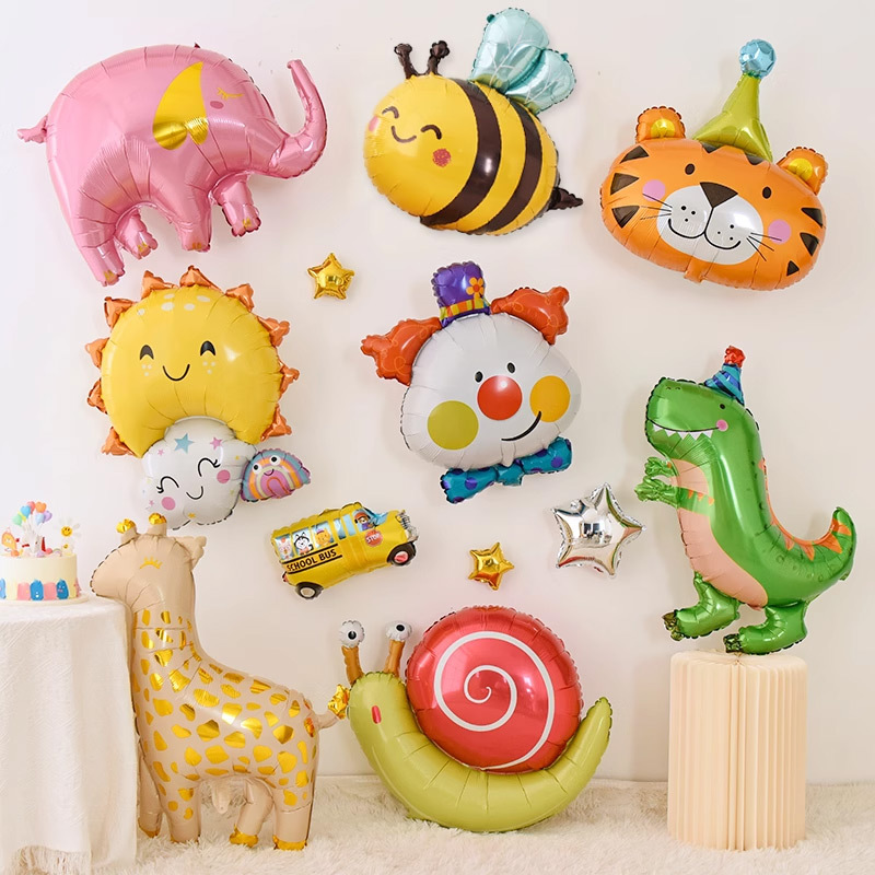 서커스 테마 알루미늄 필름 풍선 어린이 아기 첫 번째 생일 동물 유치원 학교 파티 장식
