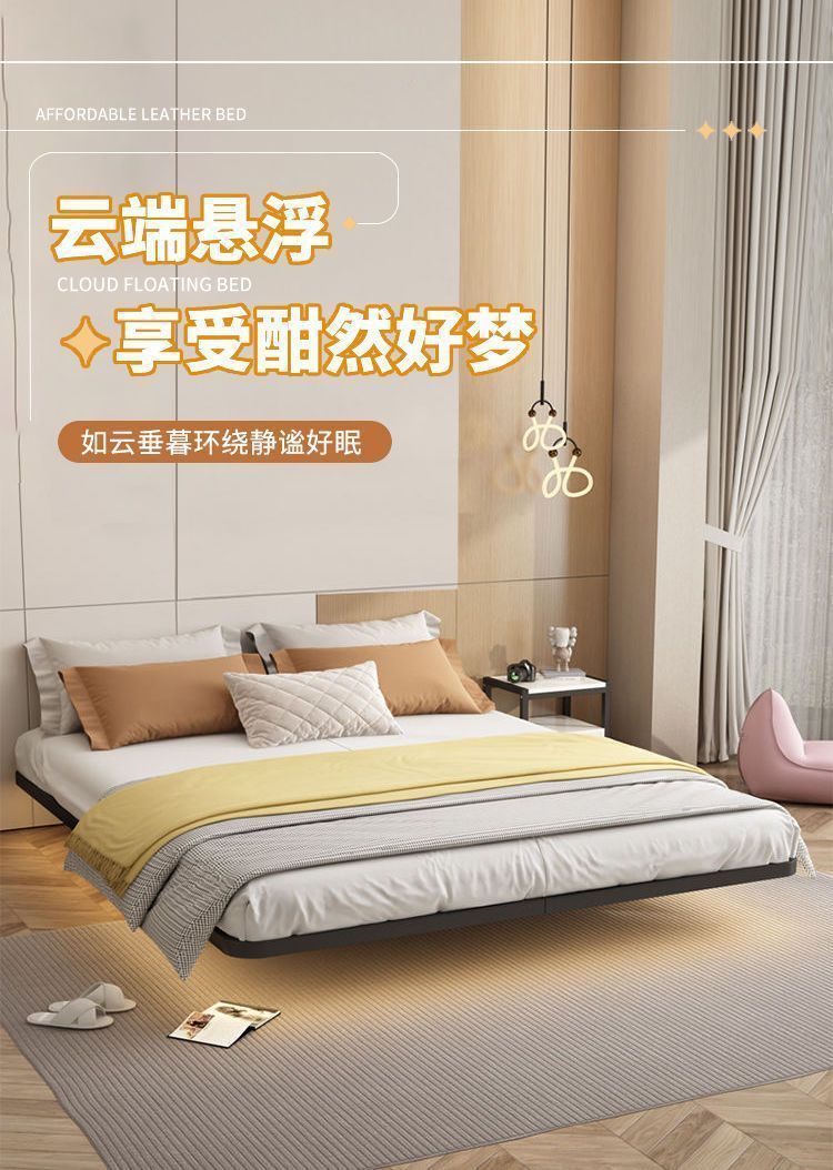 철제 침대 인터넷 연예인 간단한 서스펜션 침대 1.68m 이탈리아 스타일 라이트 럭셔리 침대 헤드보드 없음 더블 아파트 암호화 무음스토어 가기