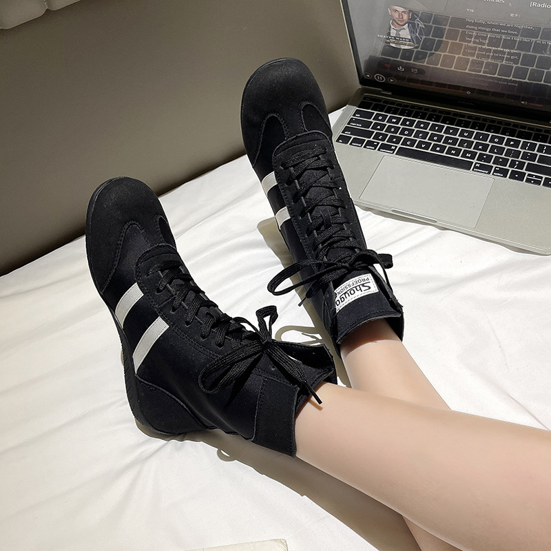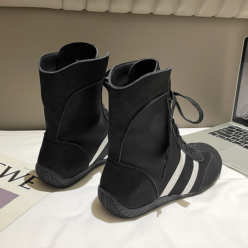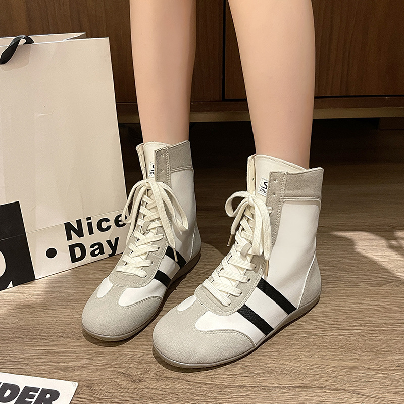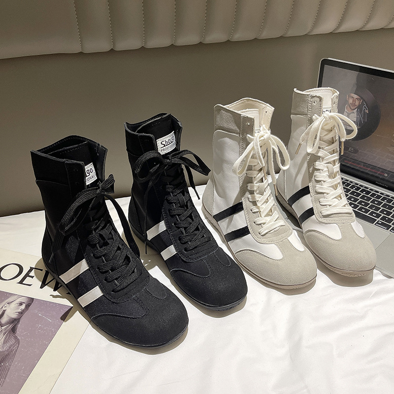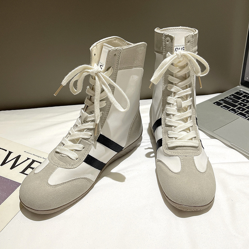 여성을위한 내부 강화 도덕 훈련 신발 2025 여름 새로운 메쉬 통기성 마틴 부츠 캐주얼 하이 탑 짧은 부츠 스포츠 신발스토어 가기