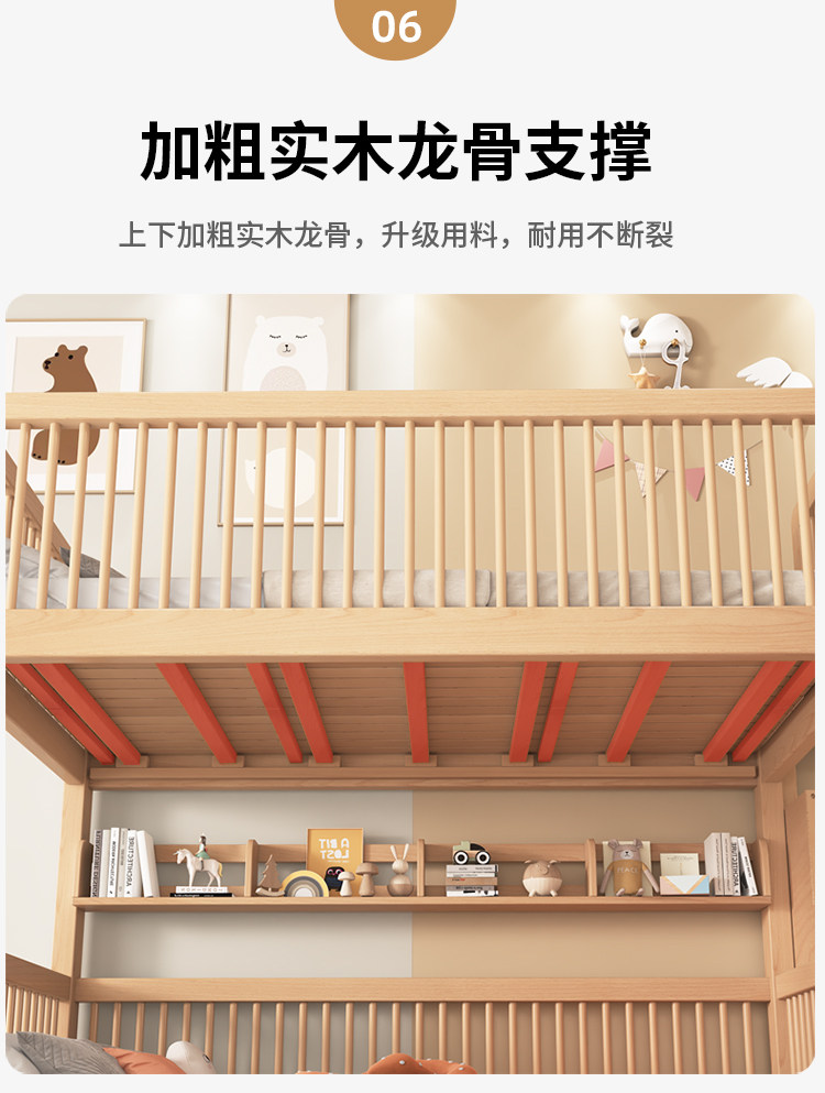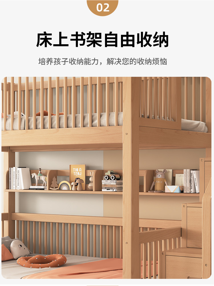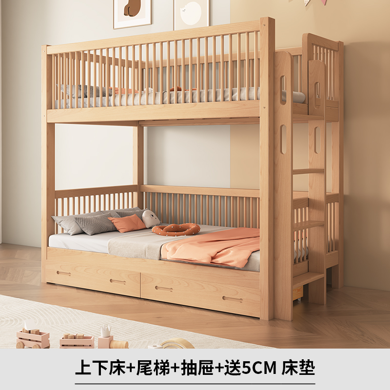 너도밤나무 이층침대, 원목, 두껍고 두꺼워, 자매와 형제가 서로 방해받지 않음, 작은 아파트, 높낮이가 다른 어린이 침대스토어 가기