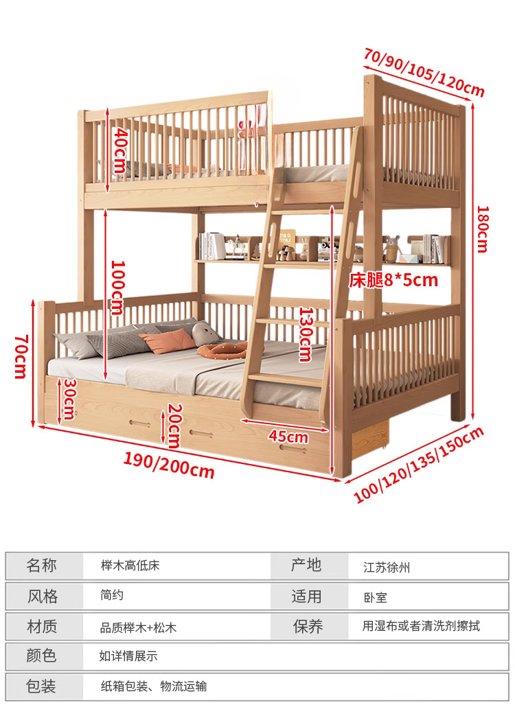 너도밤나무 이층침대, 원목, 두껍고 두꺼워, 자매와 형제가 서로 방해받지 않음, 작은 아파트, 높낮이가 다른 어린이 침대