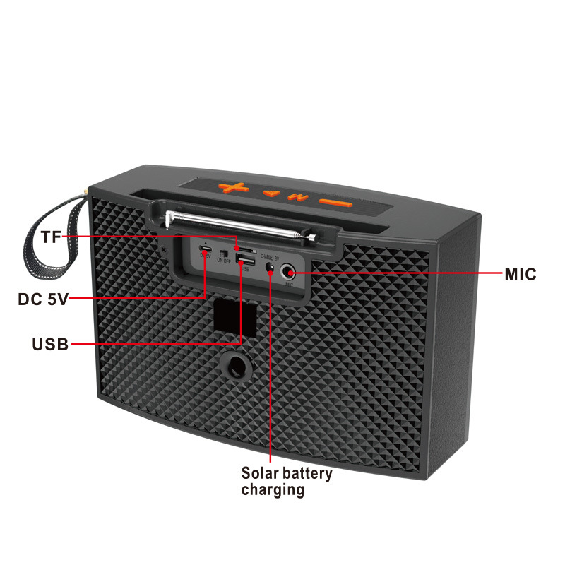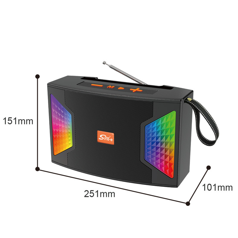 Function: Bluetooth FM、USB、TF、MIC、 Mobile phone holder, RGB color light