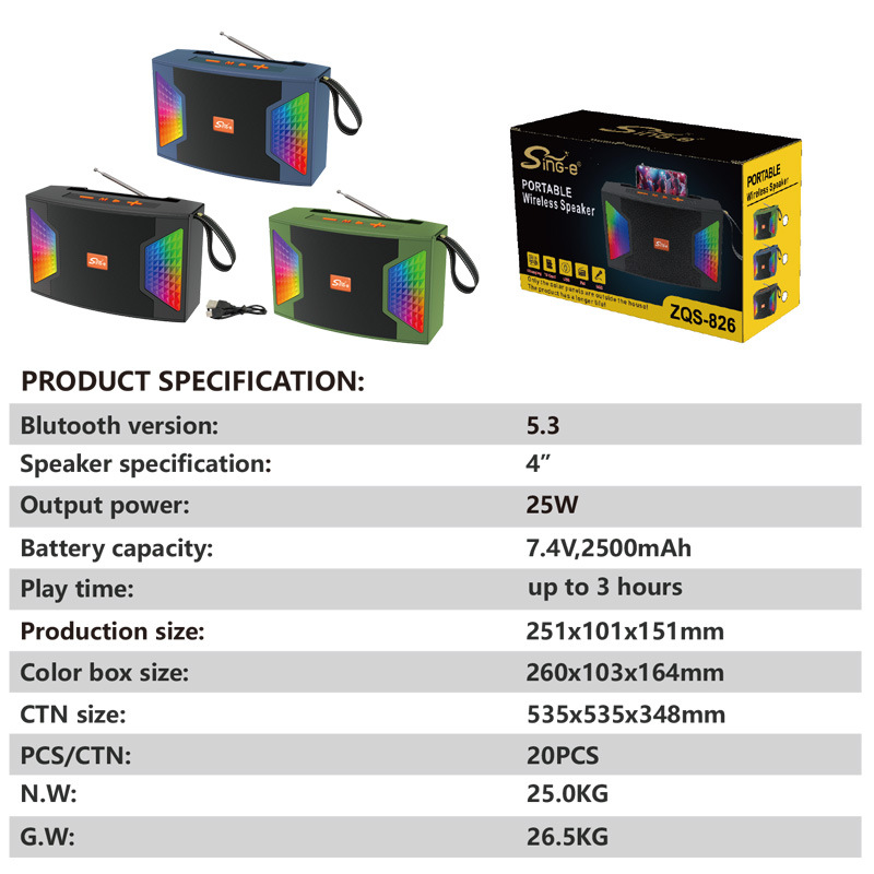 ZQS-826 portable Bluetooth speaker for outdoor home audio, grass wireless lighting, color changing portable subwoofer