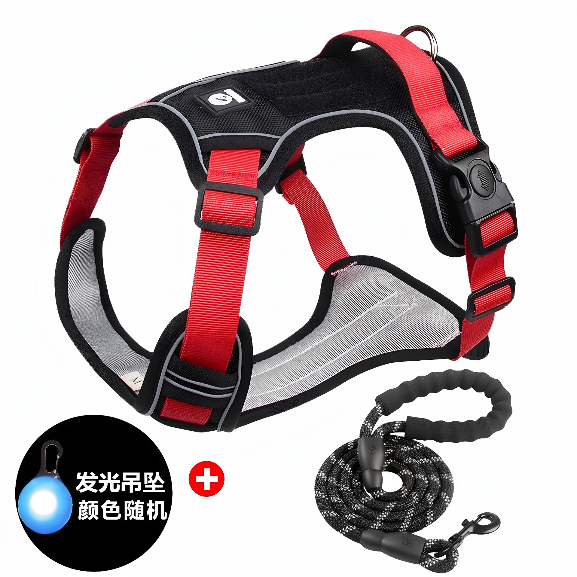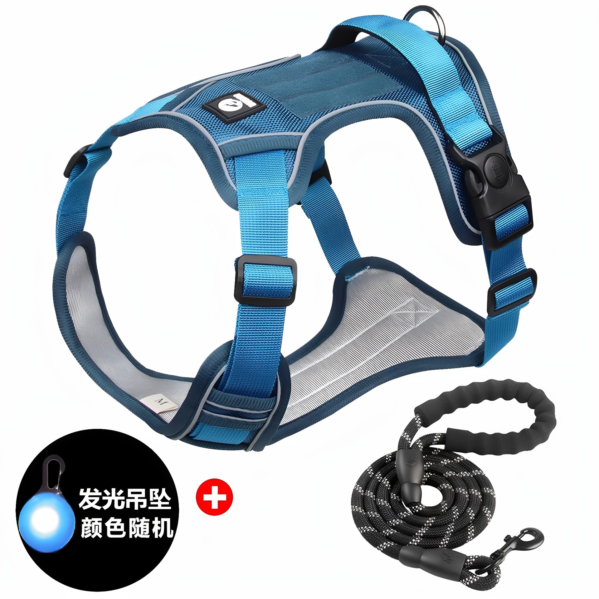 • 레이크 블루 가슴과 등 + 1.5m 반사 원형 로프 + LED 조명