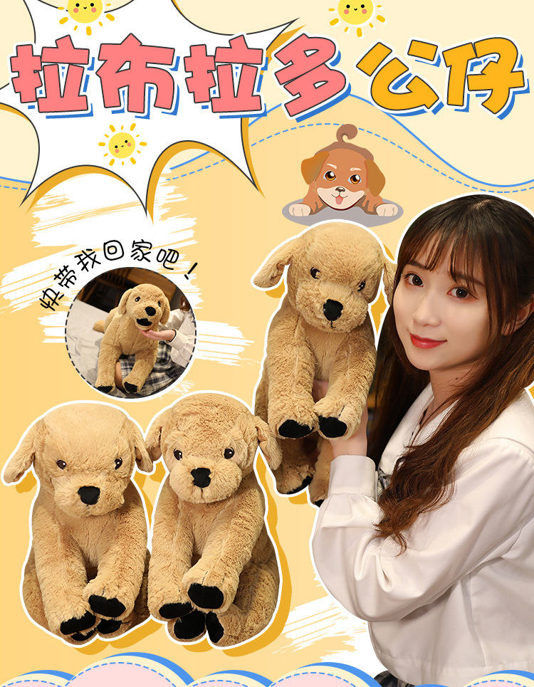 시뮬레이션 래브라도 개 인형 귀여운 골든 리트리버 큰 노란색 개 플러시 장난감 어린이 애완 동물 인형 도매스토어 가기