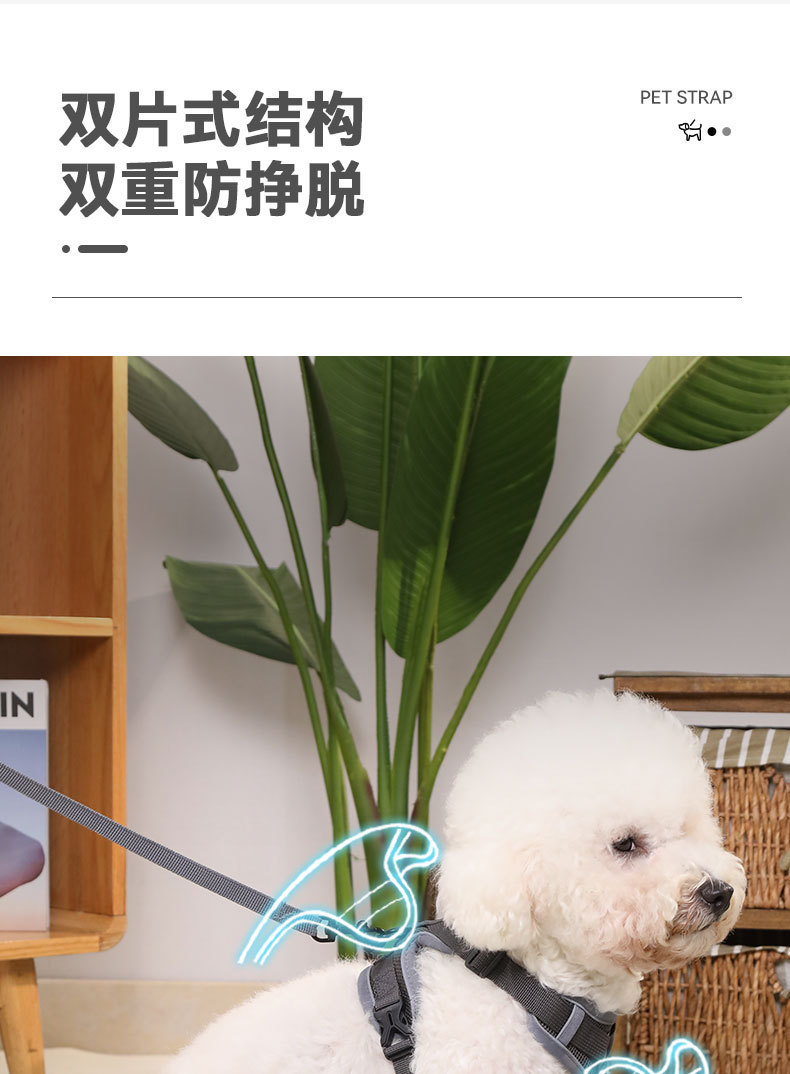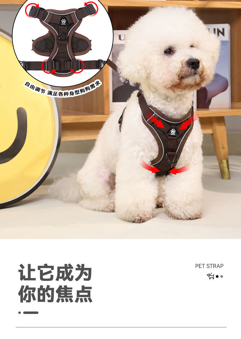 강아지 가죽끈 조끼형 하네스 고양이와 강아지를 위한 만능 소형견 산책용 가죽끈 이탈 방지 애완동물 가죽끈스토어 가기