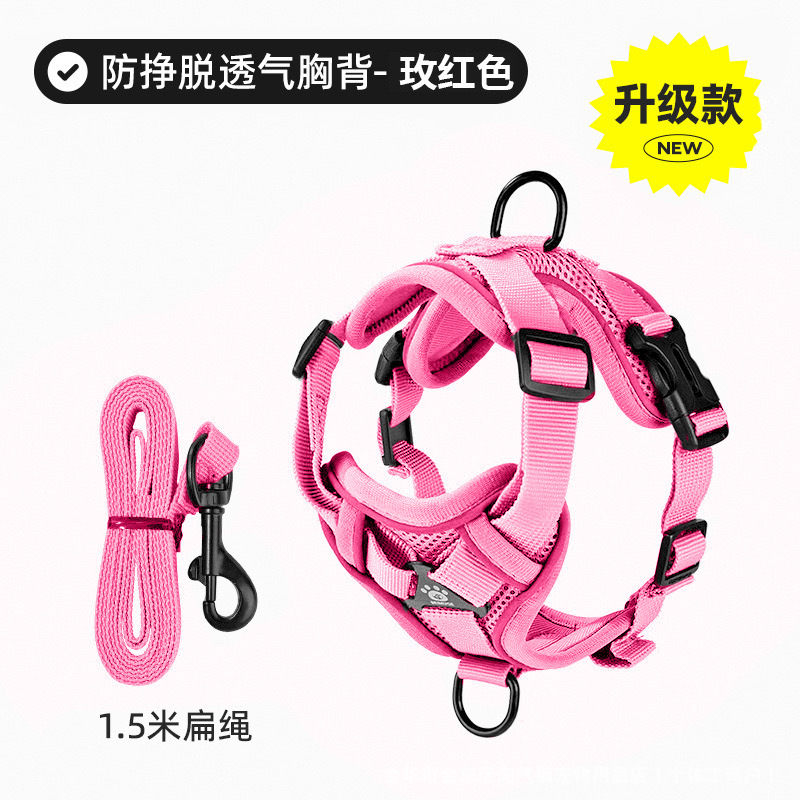 강아지 가죽끈 조끼형 하네스 고양이와 강아지를 위한 만능 소형견 산책용 가죽끈 이탈 방지 애완동물 가죽끈