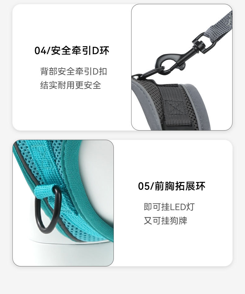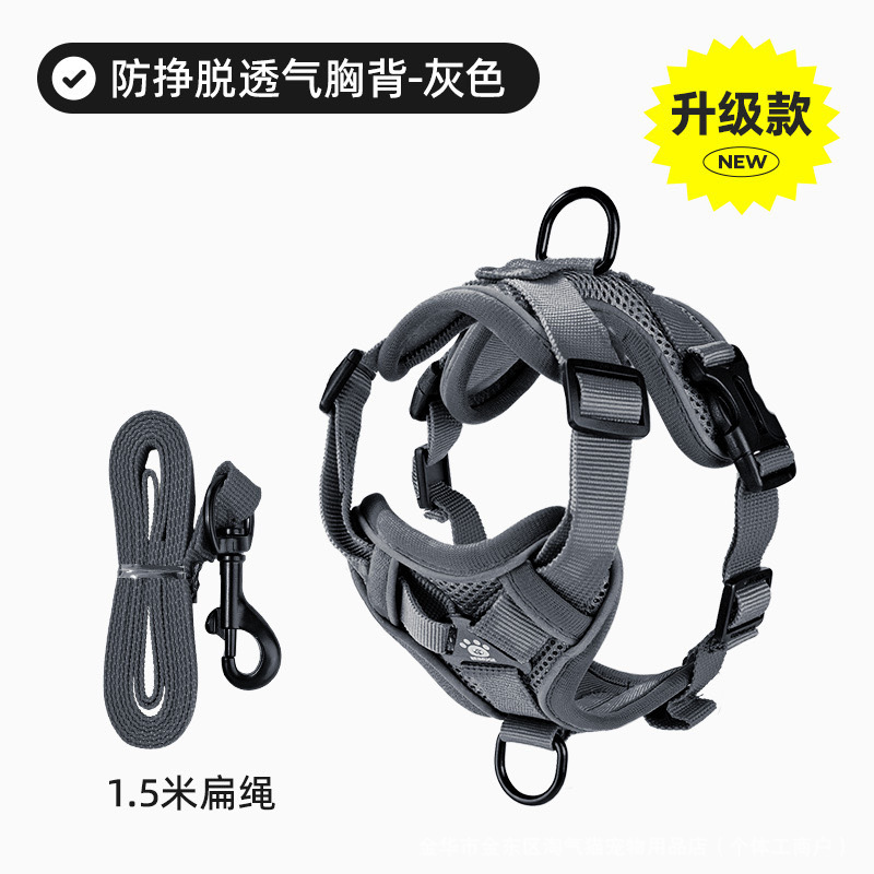 • 회색 가슴 하네스 + 1.5m 리드줄